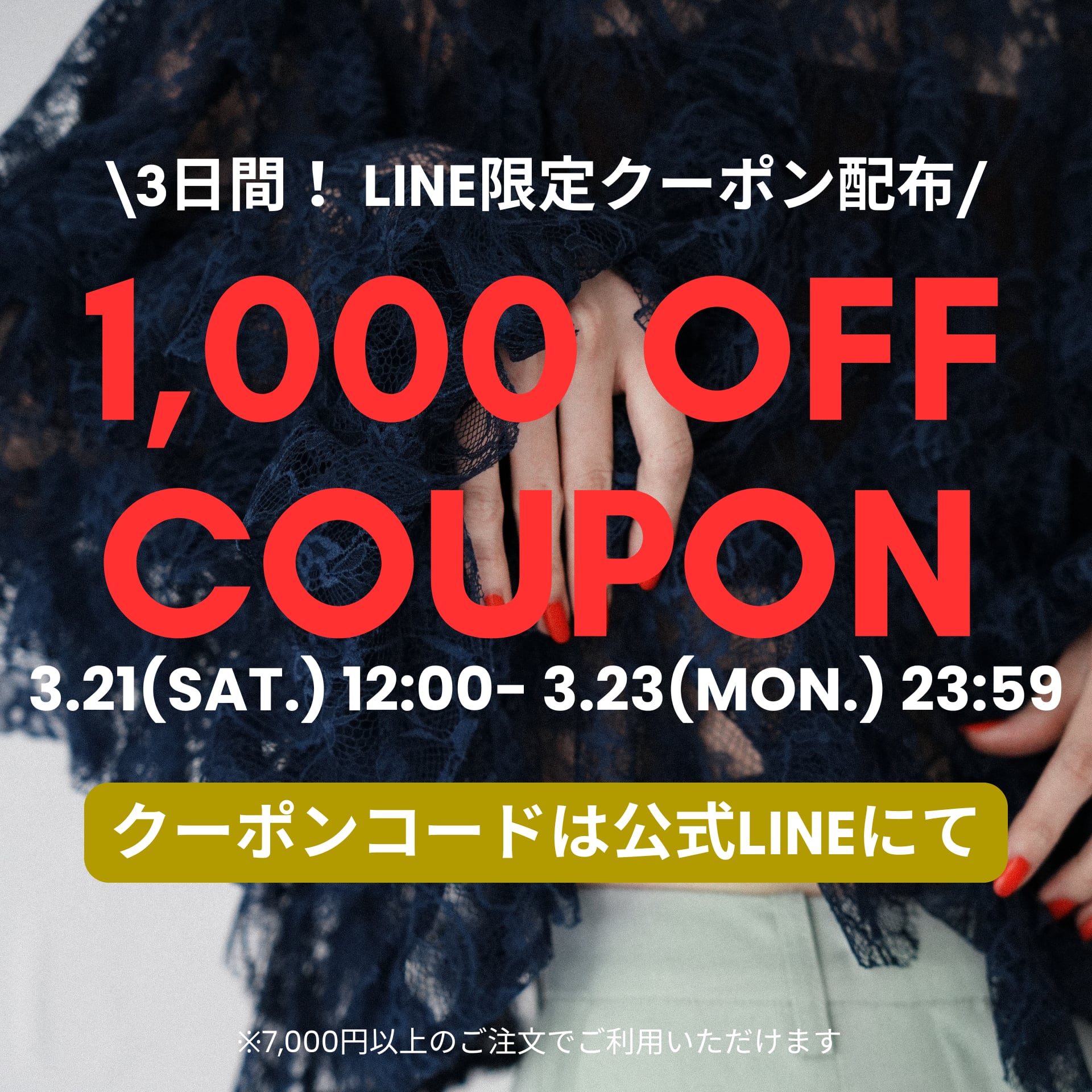 【3日間限定】LINEともだち1,000円OFFクーポン配布中