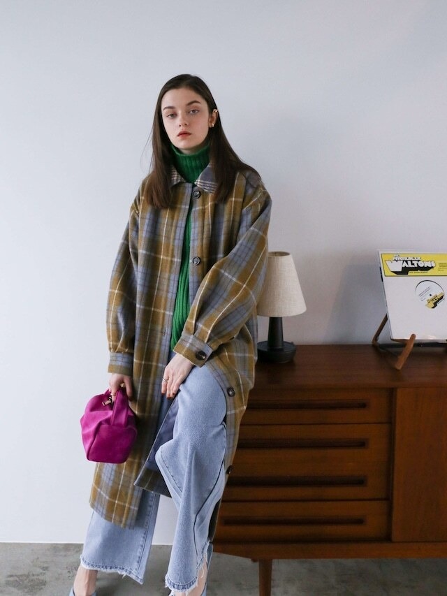 【発送について】 ・通常商品は、ご注文完了から1週間以内に発送しております。 ・予約商品と一緒にご注文の場合、予約商品の納期に合わせて発送いたします。 通常商品を先に発送する等の対応ができかねますのでご了承ください。 ステンカラーコートを大人っぽく作り上げた一着 ストンと落ちるロング丈でIラインを作ってくれます サイドに深めに入れたスリットから覗くボトムスやワンピースとの色合わせも楽しみたい ロングコートに抜け感と軽やかさをもたらします 絶妙なゆるさでたるむよう計算されたベルトでバックスタイルまで抜かりなく ベルトの中で泳ぐたっぷりの生地も美しい どれも魅力的な三色展開 一つ一つ使用しているチェックが異なるだけでなく、チェックと無地の配置まで変えているのでそれぞれ全く別のコートに見えるほど印象が異なります ・navy check × green: 柄が立ちすぎていない控えめな色味のチェックながらも大き目のチェックにすることで使いやすさとおしゃれ感を両立 深いグリーンの襟が程よいアクセントに 圧倒的な使いやすさがありながら、単なるネイビーのコートでは終わらない 柄物として身構えず、自由な発想で総柄のワンピースなどとも合わせていただきたい一着 ・ivory × brown check: 一番ベーシックに合わせやすく、かつこのコートのチャームポイントである襟が最も引き立っているのもこのカラー 真っ白ではなく少しクリームみのあるアイボリーで高級感があり、とても合わせやすいのも嬉しい 間違いなく可愛いとわかっていながらも少し気恥ずかしかったアイボリーのコートもこのデザインなら、なんなくクリア◎ ・check × check: 襟とボディに異なるチェック生地を使用した、一番Katrin TOKYOらしく他には無いデザイン 実は色味を合わせたチェックを選んでいるので意外とどんな着こなしに羽織ってもしっくり◎ カラーものと合わせてPOPにまとめた時と、スラックスなどでメンズライクにまとめた時とではガラリと表情を変える一着 マスタードよりの秋冬らしい色味にくすみブルーの配色がたまらない可愛さです 柄の可愛さにばかり目がいきがちです、実はボリューム袖になっているのもチャームポイント シンプルなスタイリングに合わせてもちゃんとお洒落な印象に 裏地付きのロング丈で足元まで暖かいコートですが、見た目の何倍も軽いのが優秀なところ ステンカラーの襟のデザインが際立つよう、ポケットはスラッシュポケットにし、すっきりとした印象に デイリーに使えるのにお洒落、という点と 襟や着丈がしっかりあることであたたかいという点をマストでデザインしたコートなので ついつい朝手に取ってしまう使い勝手の良さが魅力 なんとなくで選んだ日もしっかりお洒落なスタイリングを完成させてくれます 【素材】 ・navy check × green 本体:ウール 59%、ポリエステル 35%、アクリル 2%、ナイロン 1%、ポリウレタン 1%、レーヨン 1%、コットン 1% 衿部分:ポリエステル 96%、レーヨン 4% 裏地:ポリエステル 100% ・ivory × brown check 本体:ポリエステル 96%、レーヨン 4% 衿部分:ウール 59%、ポリエステル 35%、アクリル 2%、ナイロン 1%、ポリウレタン 1%、レーヨン 1%、コットン 1% 裏地:ポリエステル 100% ・check × check 本体:ポリエステル 54%、ウール 31%、アクリル 11%、ナイロン 2%、レーヨン 1%、コットン 1% 衿部分:ポリエステル 59%、コットン 19%、レーヨン 8%、アクリル 7%、ウール 4%、ナイロン 2%、ポリウレタン 1% 裏地:ポリエステル 100% 生地の厚さ:★★★★☆ 軽さ:★★★★☆ 【サイズ】 ・Caraサイズ(154cm以下の小柄さん向けサイズ) 着丈:110cm 身巾:50cm 肩幅:54.5cm ※ドロップショルダー 袖丈:50cm ※ドロップショルダー アームホール:46cm 袖幅:21.5cm スリット丈:34cm ・FREEサイズ(S-Mサイズ相当) 着丈:120cm 身巾:54cm 肩幅:57cm ※ドロップショルダー 袖丈:54cm ※ドロップショルダー アームホール:48cm 袖幅:22.5cm スリット丈:37cm 【お洗濯について】 家庭洗濯:不可 ドライクリーニング:可 ※詳細は商品にございます洗濯表示に従ってお取り扱いください。 ーーーーーーーーーーーーーーー 【発送等について】 ・商品不備を除いて返品・返金をお受け出来かねますのであらかじめご了承ください。詳しくは特定商取引法に基づく表記のページをご一読いただいた上でご注文をお願いいたします。 ・お使いのスマートフォンやPCによって、また、撮影時の光の加減で色の見え方にばらつきが生じることがございますがご了承下さい。