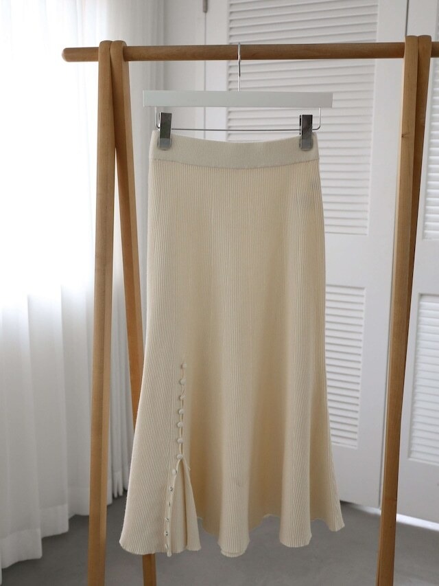 【発送について】 ・通常商品は、ご注文完了から7営業日以内に発送しております。 ・予約商品と一緒にご注文の場合、予約商品の納期に合わせて発送いたします。 通常商品を先に発送する等の対応ができかねますのでご了承ください。 ドレープの揺れ感が可愛く歩くのが楽しくなるようなニットスカート 包まれたくなるような柔らかな肌触りも嬉しい一着です 暖かい着心地とデザインの可愛さを両方楽しめるニットスカート ニット特有のほっこり感を抑えたデザインで、真冬のお洒落を存分にお楽しみいただけます 膝のあたりから一気に広がるフレアなシルエット ウエストやヒップ周りは落ち感があり膝下から広がるから、ボリュームが気になるパーツを細見えさせます お洒落な雰囲気をプラスする右斜め前のスリットは、包みボタンで開閉が可能 閉めて着てもデザインのワンポイントとして、縦に並んだ包みボタンがチャーミング 開けて着るときはロングブーツを覗かせて、ほんの少し肌見せを楽しむのも素敵です フレアなシルエットでフェミニンなイメージを保ちつつも、 リブニットのリラクシーな雰囲気や、包みボタンのスリットがカジュアルな装いにもフィット ブーツやヒールで品良く合わせてもよし、スニーカーやスウェットを合わせてカジュアルな雰囲気で着るのも可愛いから、その日の気分で印象をがらりと変えられるのが楽しい 総ゴム仕様のウエストはどんな体型の方にもフィットし、お腹周りをすっきり見せます ハリ感のある肉厚なニット素材は暖かさもしっかり確保しつつ、下着の透けも防止 リブの高低差がはっきりとしたニットだから、体のラインも拾いすぎません 所々で深く入ったリブの谷が、切り替えのようなデザインを作るのでのっぺりしないのもポイント◎ 暖かい服しか手が伸びない寒い真冬も、このニットスカートがあればお洒落のテンションがぐっと高まりそう 歩くと揺れる可愛さと着心地のよさに包まれて、この冬の寒さも乗り越えて ・ivory:冬×ニット×ivoryは間違いのない組み合わせ。普段からivoryをよく選ぶという方にも、他にないデザインが新鮮さをもたらし、何と合わせてもお洒落さを上げてくれるニットスカートはいち押し。手持ちのアイテムとのコーディネートを考えるのがますます楽しくなりそう ・brown:こっくりとしたbrownが装いに冬らしい深みをプラス。ほっこりしないニュートラルなbrownなので、どんなスタイルにもさりげなく溶け込みます。大人っぽくもフェミニンにも、どんなイメージにも転ばせられるのが魅力的 ・magenta pink:寒い日も気持ちを上げてくれるヴィヴィッドなmagenta pink。ニット素材だからこそ、この鮮やかさも柔らかい雰囲気で着られます。白やオレンジの糸が織り込まれた杢素材で大人っぽい表情を演出。暗色のコートの中に差し色しても抜群に可愛く、春先はデニムジャケットと合わせたい 【素材】 ナイロン 42%、レーヨン 35%、ポリエステル 23% 透け感:☆☆☆☆☆ なし ※しっかりと厚みのあるリブニットですが、ivoryには濃い色の下着を避けていただくのがおすすめです 厚み:★★★★☆ 伸縮性:★★★★☆ 【サイズ】 ・Caraサイズ(154cm以下の小柄さん向けサイズ) 総丈:75cm ウエスト:59cm ※ゴム仕様のため最大50cm伸びます。 ヒップ:86cm ・FREEサイズ 総丈:81cm ウエスト:62cm ※後ろゴム仕様のため最大50cm伸びます。 ヒップ:88cm 【お洗濯について】 家庭洗濯:可 ドライクリーニング:可 ※詳細は商品にございます洗濯表示に従ってお取り扱いください。 ーーーーーーーーーーーーーーー 【発送等について】 ・商品不備を除いて返品・返金をお受け出来かねますのであらかじめご了承ください。詳しくは特定商取引法に基づく表記のページをご一読いただいた上でご注文をお願いいたします。 ・お使いのスマートフォンやPCによって、また、撮影時の光の加減で色の見え方にばらつきが生じることがございますがご了承下さい。