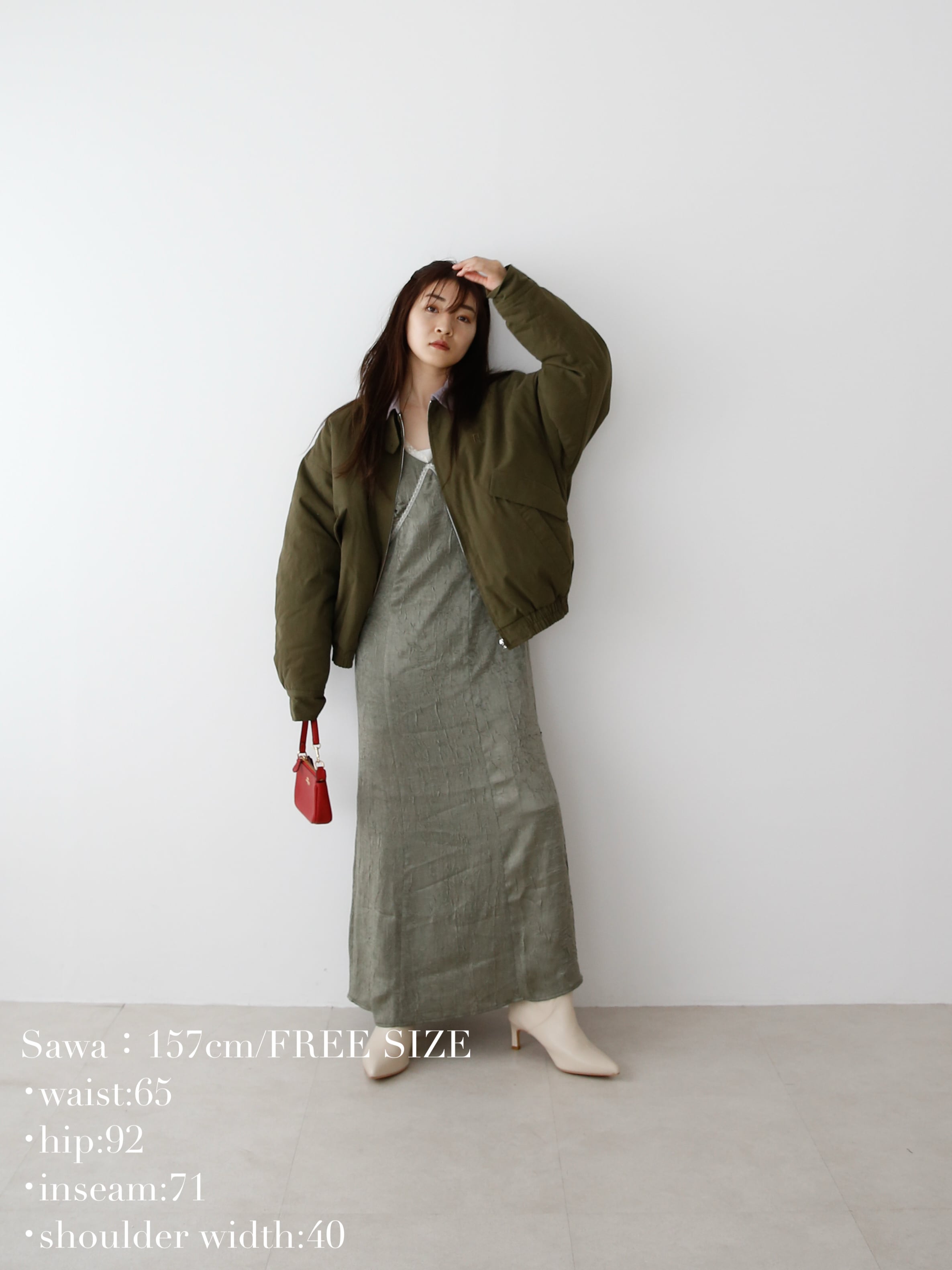・olive:定番のオリーブも、くすんだモーヴの襟で一気に大人っぽく。ハンサムなのに女性らしさが香る、媚びない甘さが魅力の一着。レースやワンピースと合わせる甘辛MIXもおすすめです◎