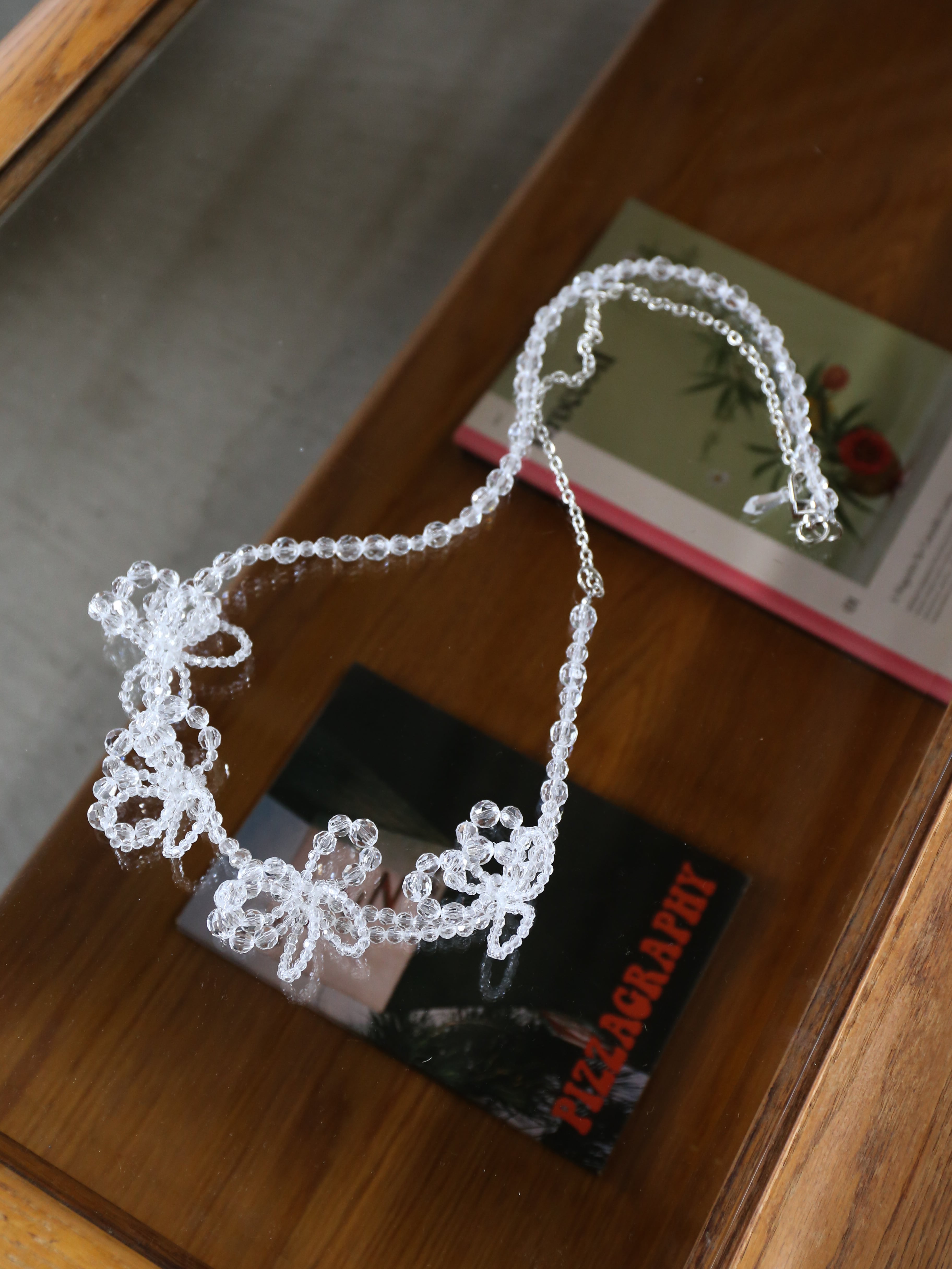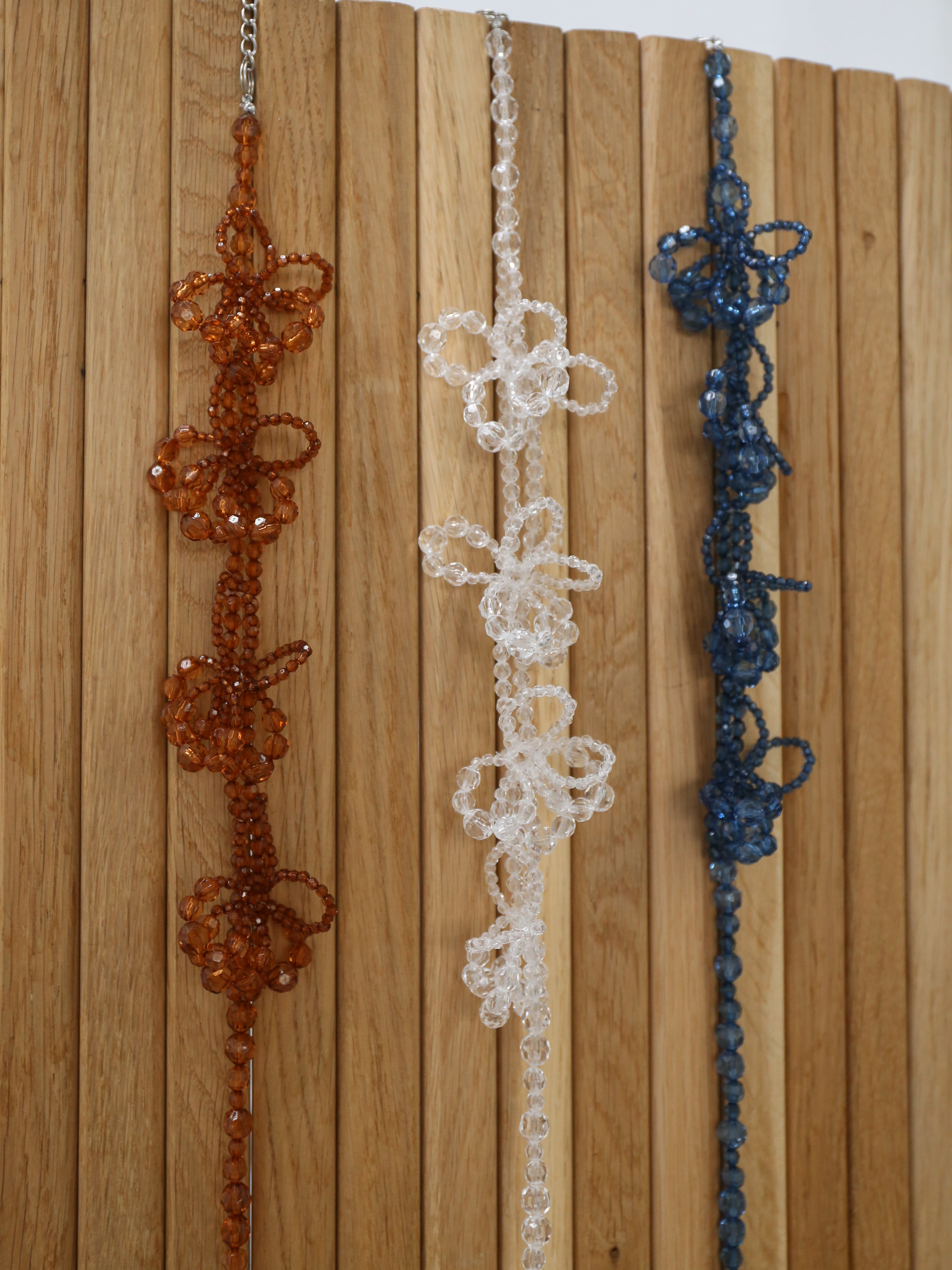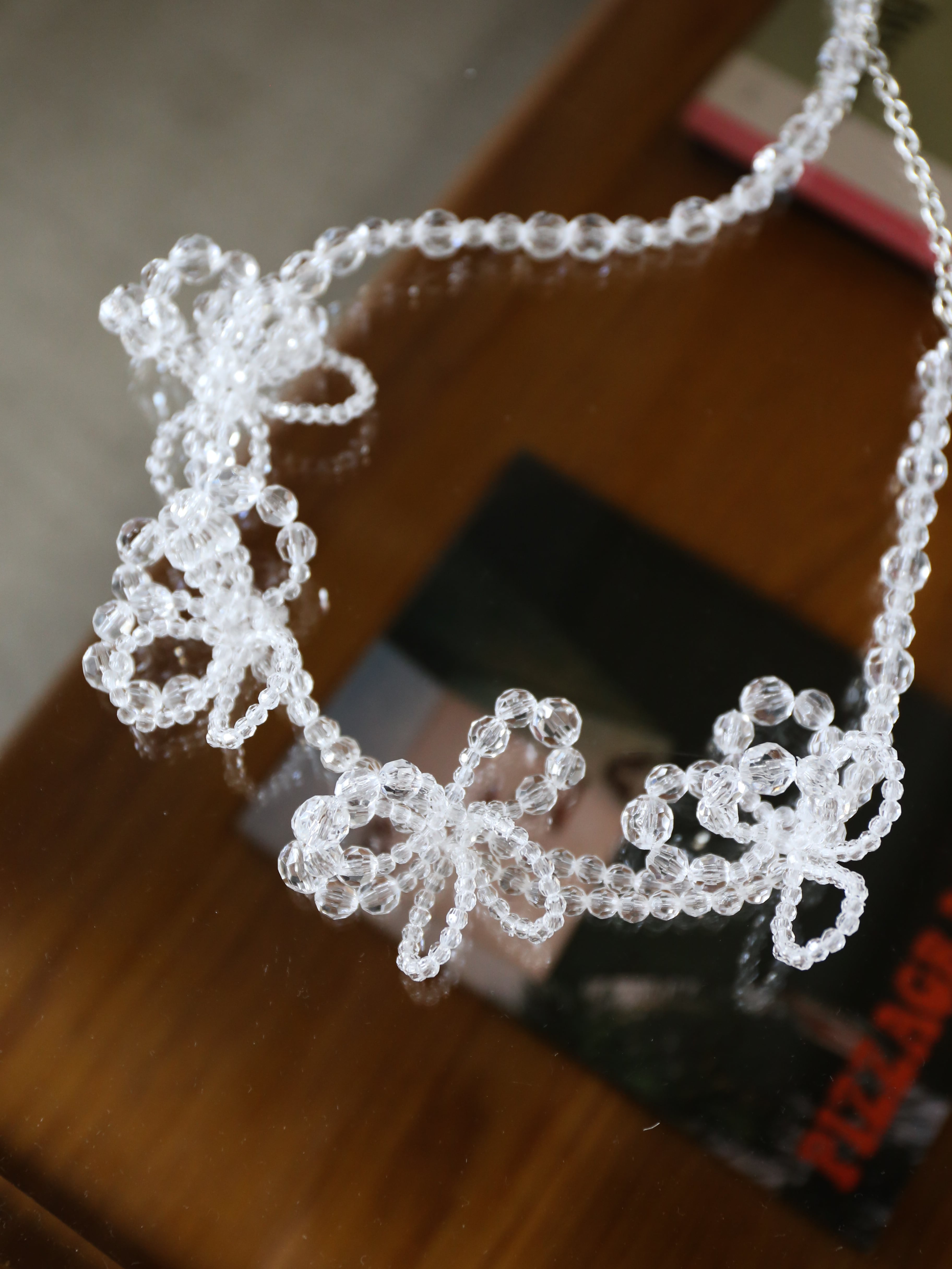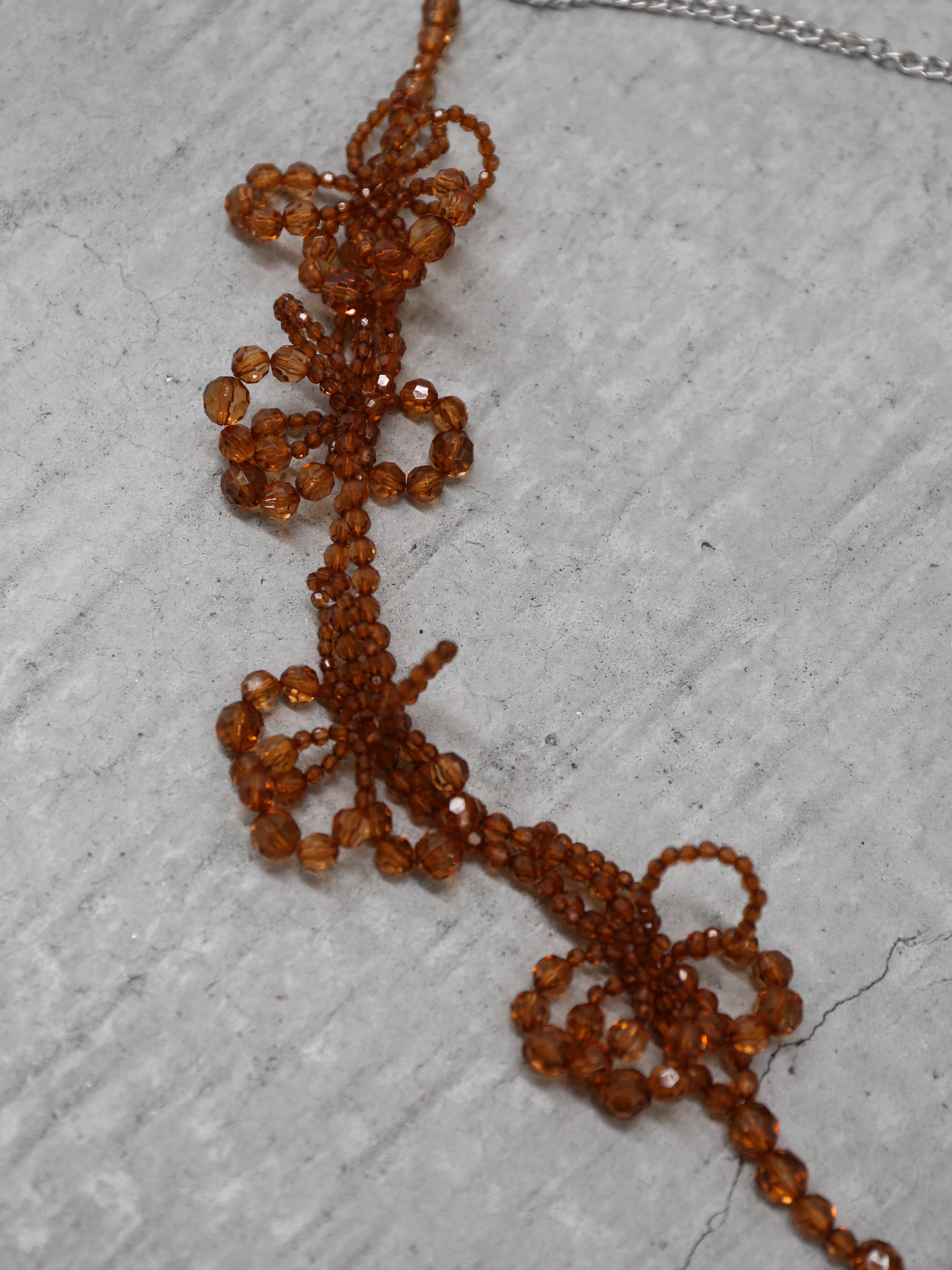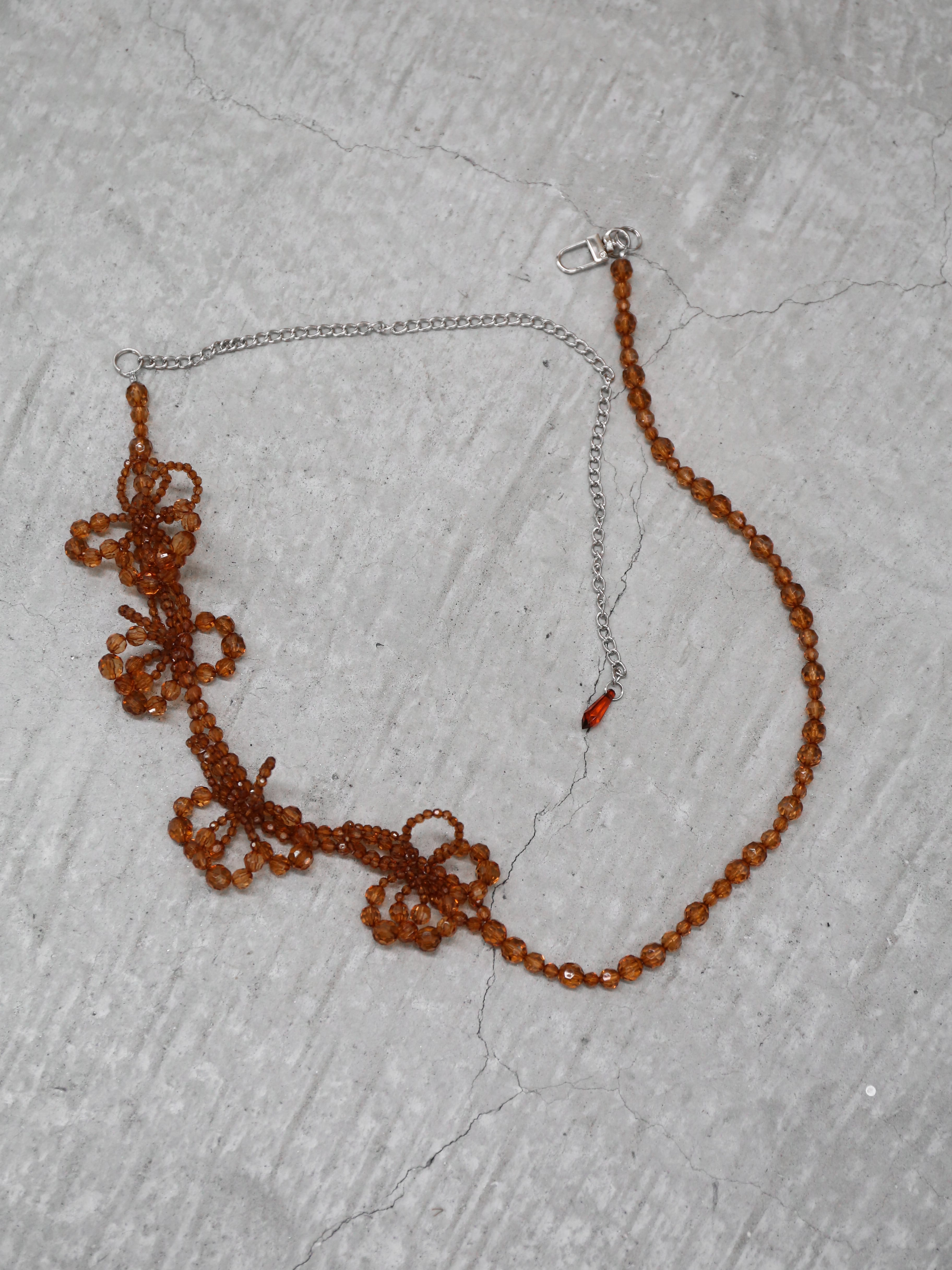 透明感のあるビーズで仕立てたフラワーモチーフは