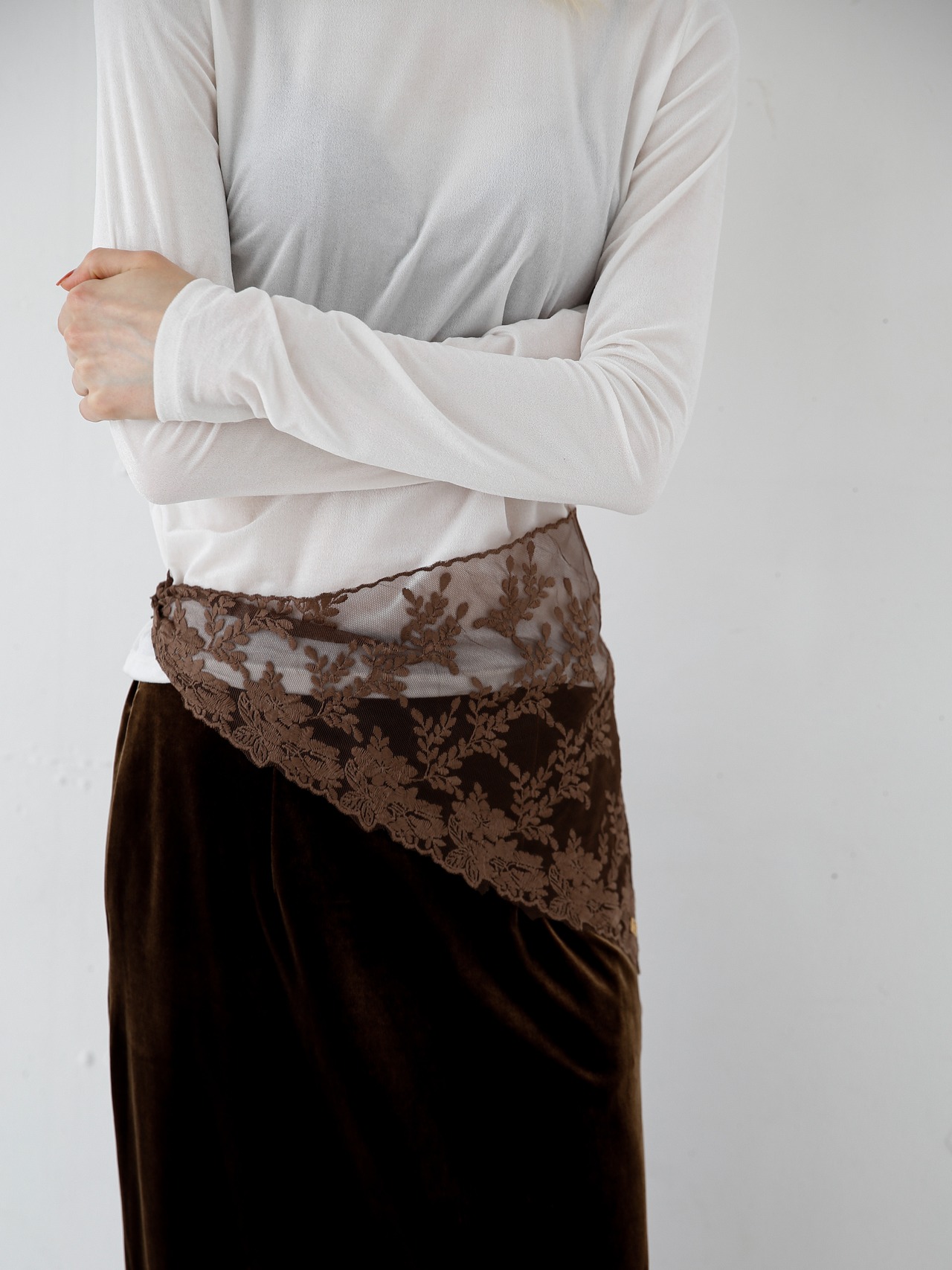 ほんのりとした透け感と、ベロアならではの艶感を掛け合わせた、贅沢な質感の一枚