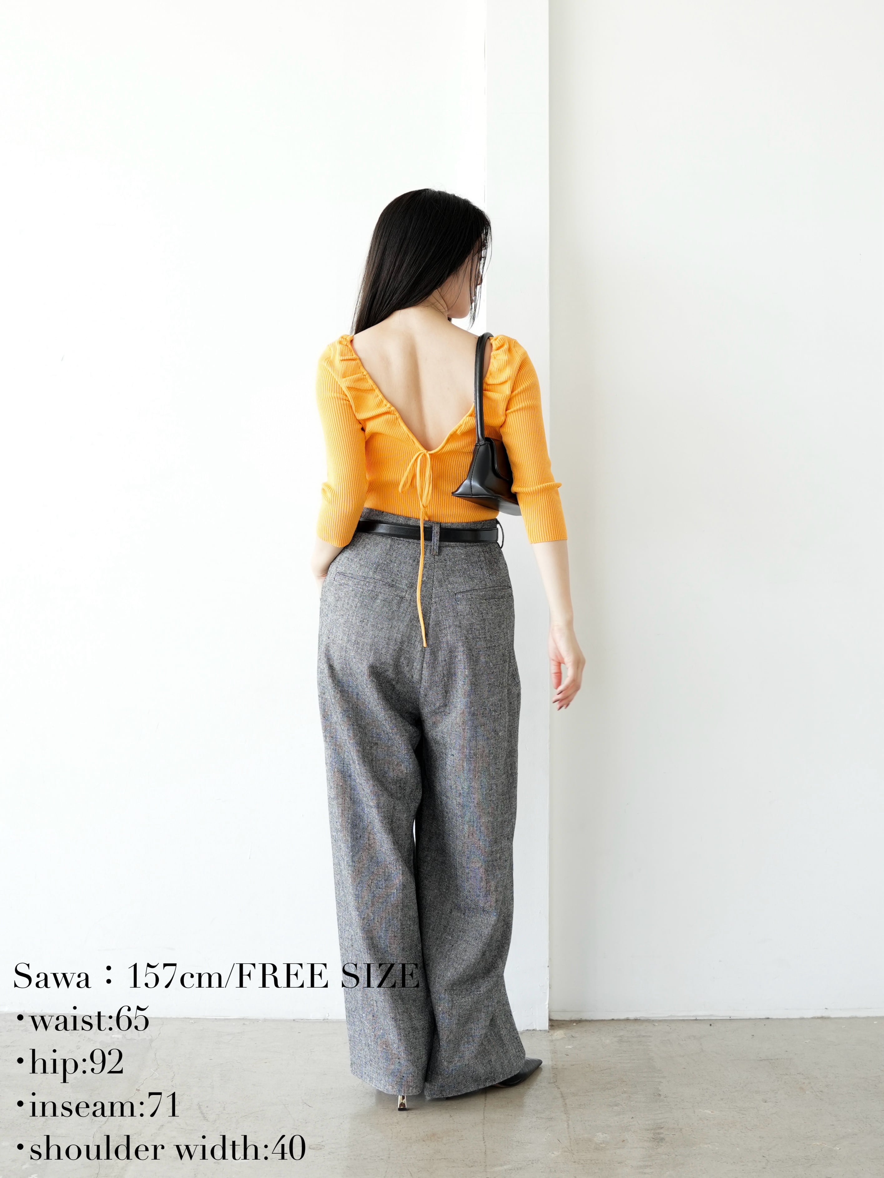 リボンの絞り具合で肌見せの分量を調整できる仕様になっており