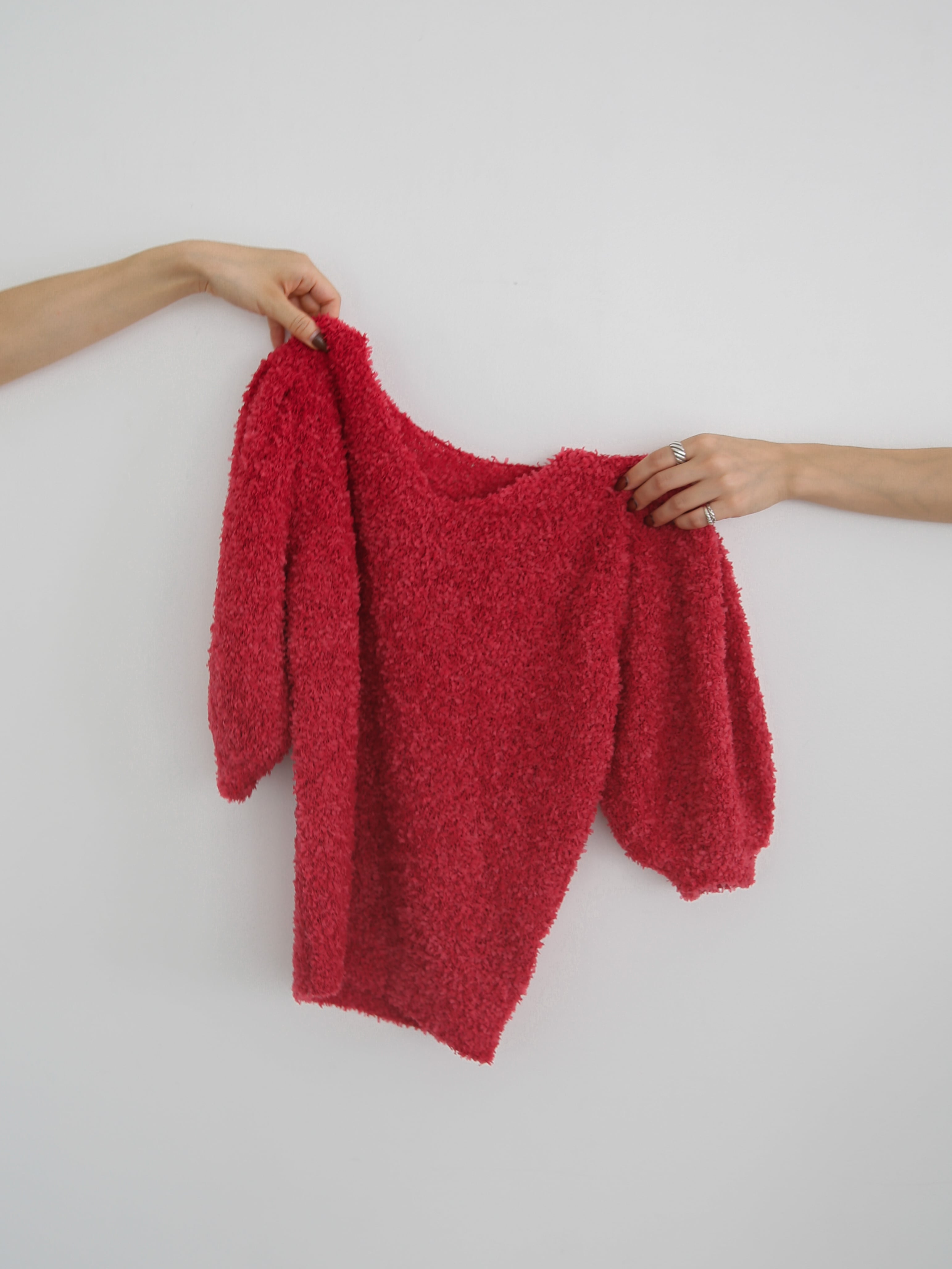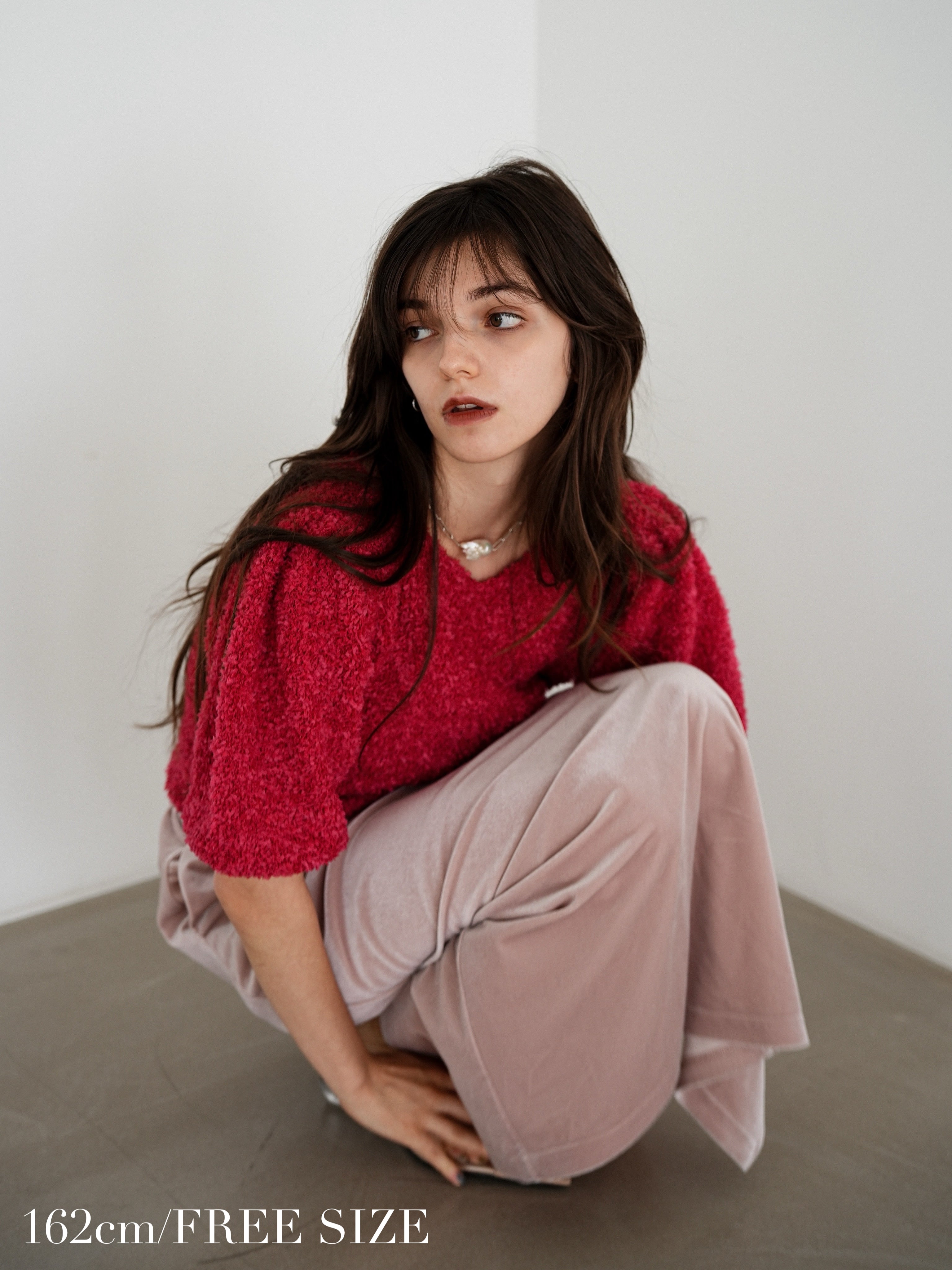 ・red:ほんのりベリーを感じさせる、大人な赤。鮮やかすぎない深みのあるトーンが魅力で、甘すぎず、媚びない女性らしさを演出してくれるカラー。デニムでカジュアルに着崩しても、スラックスと合わせてキレイめに仕上げても、どこか芯のある印象に。秋冬の差し色にも、主役トップスにもぴったりの一枚。