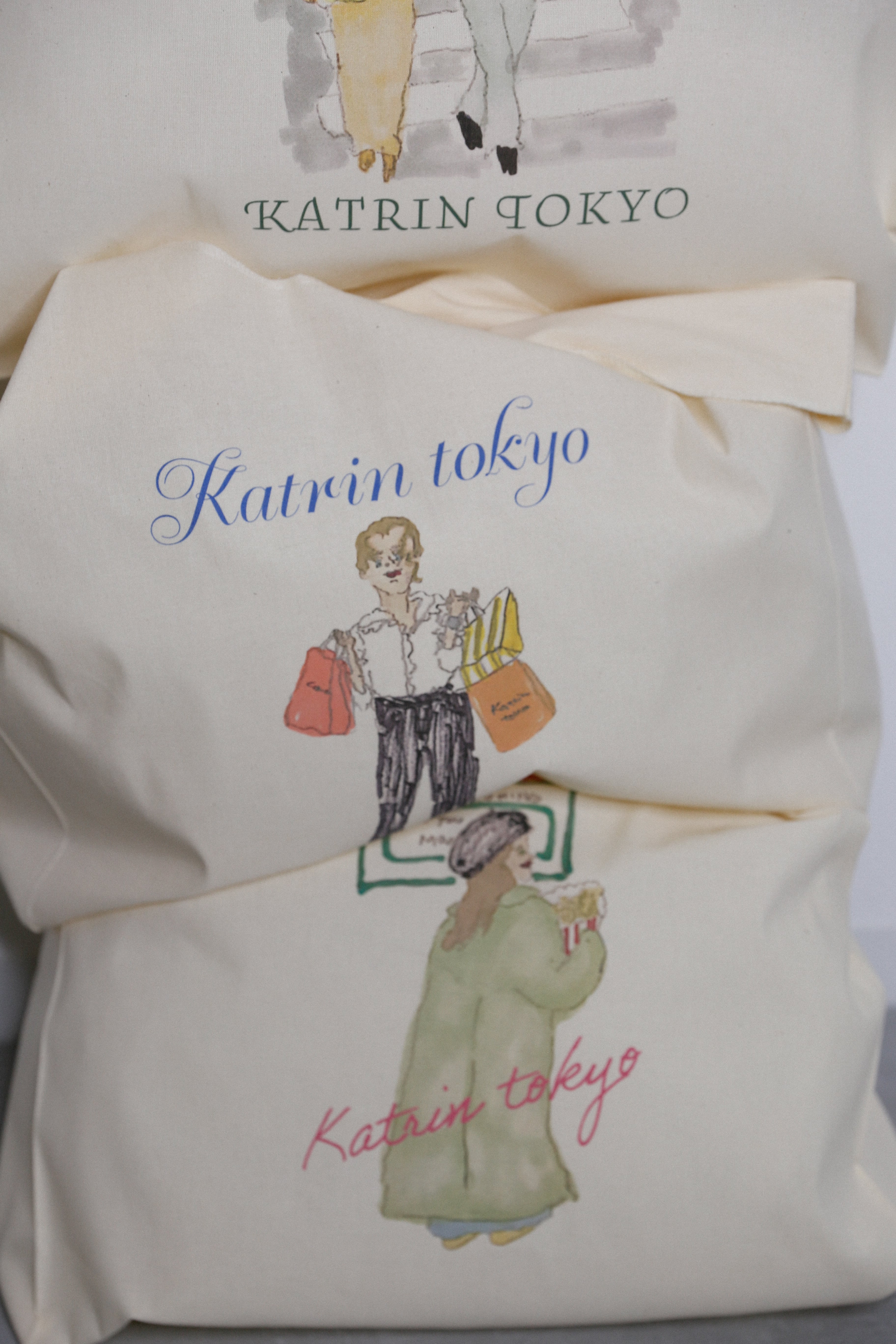 ・shopping girl:紙袋いっぱいのしあわせを抱えて帰る、あの高揚感を。両手にKatrinのショッピングバッグを持った女性が主役。「今日は何を買ったのかな?」と想像したくなる、ちょっぴりごきげんな雰囲気が魅力です。