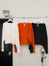 ・black:ざっくりと編まれたニットが演出する表情感が、ブラックなのに重くなりにくい。かっこよさと女性らしさのバランスが絶妙で、シルバーのジップが1番引き立つのもこのカラー。