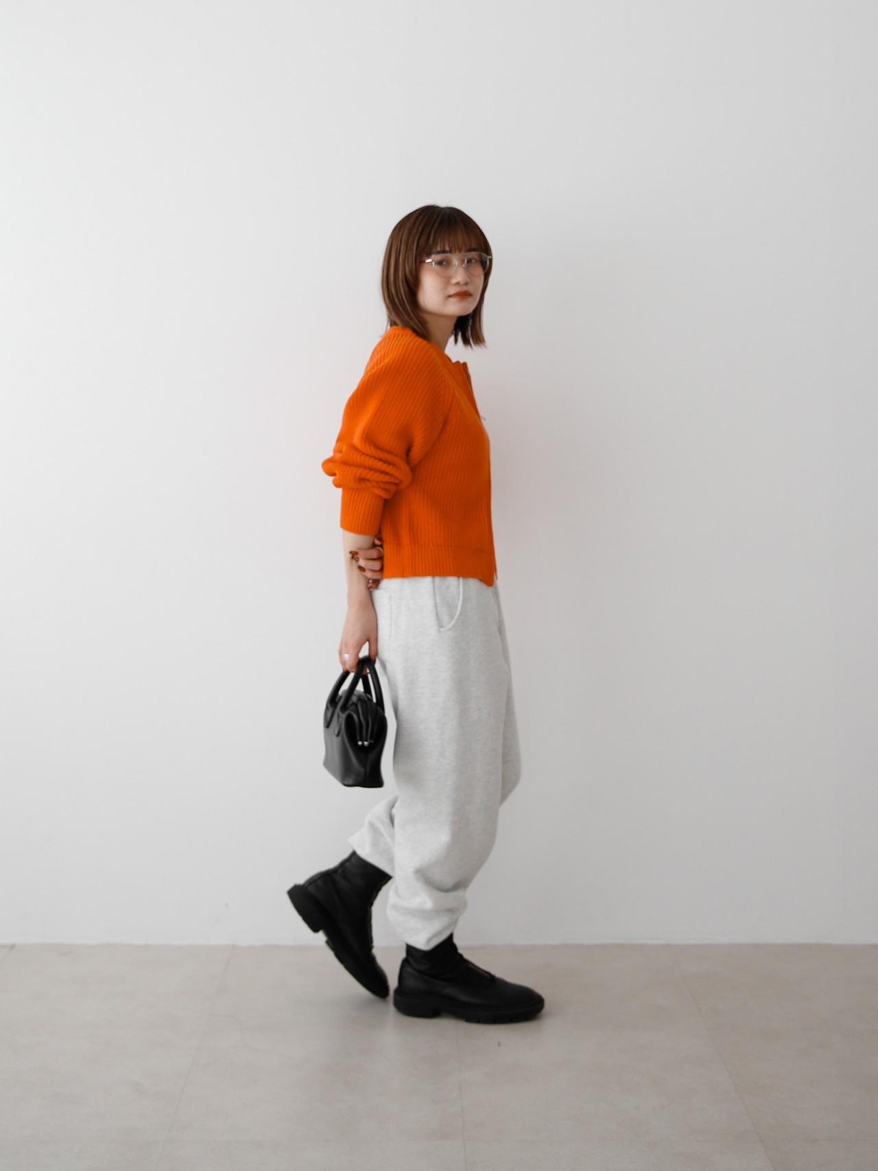着丈も短めに設定しているので、ワイドパンツやボリュームスカートともバランスよく着られます