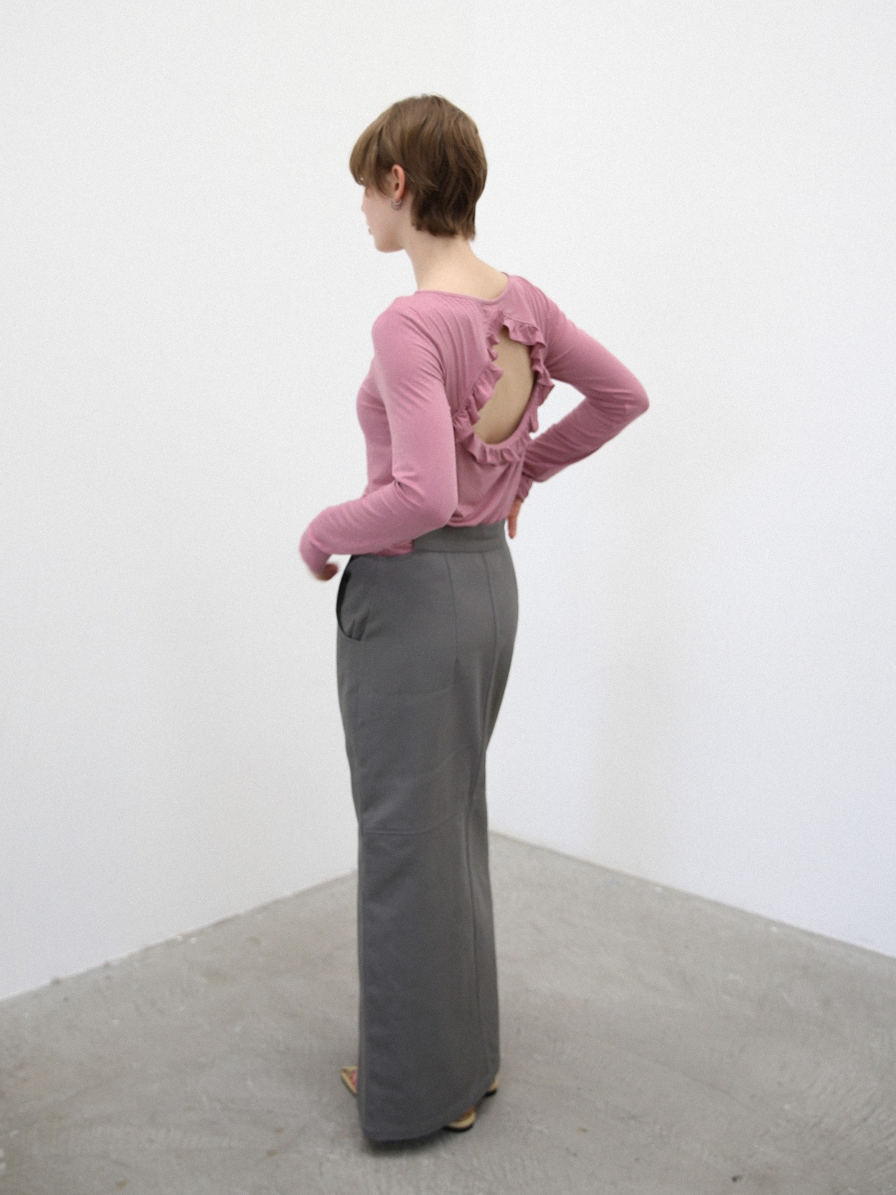 後ろ姿までしっかり可愛く、自信を持って着こなせるトップスです