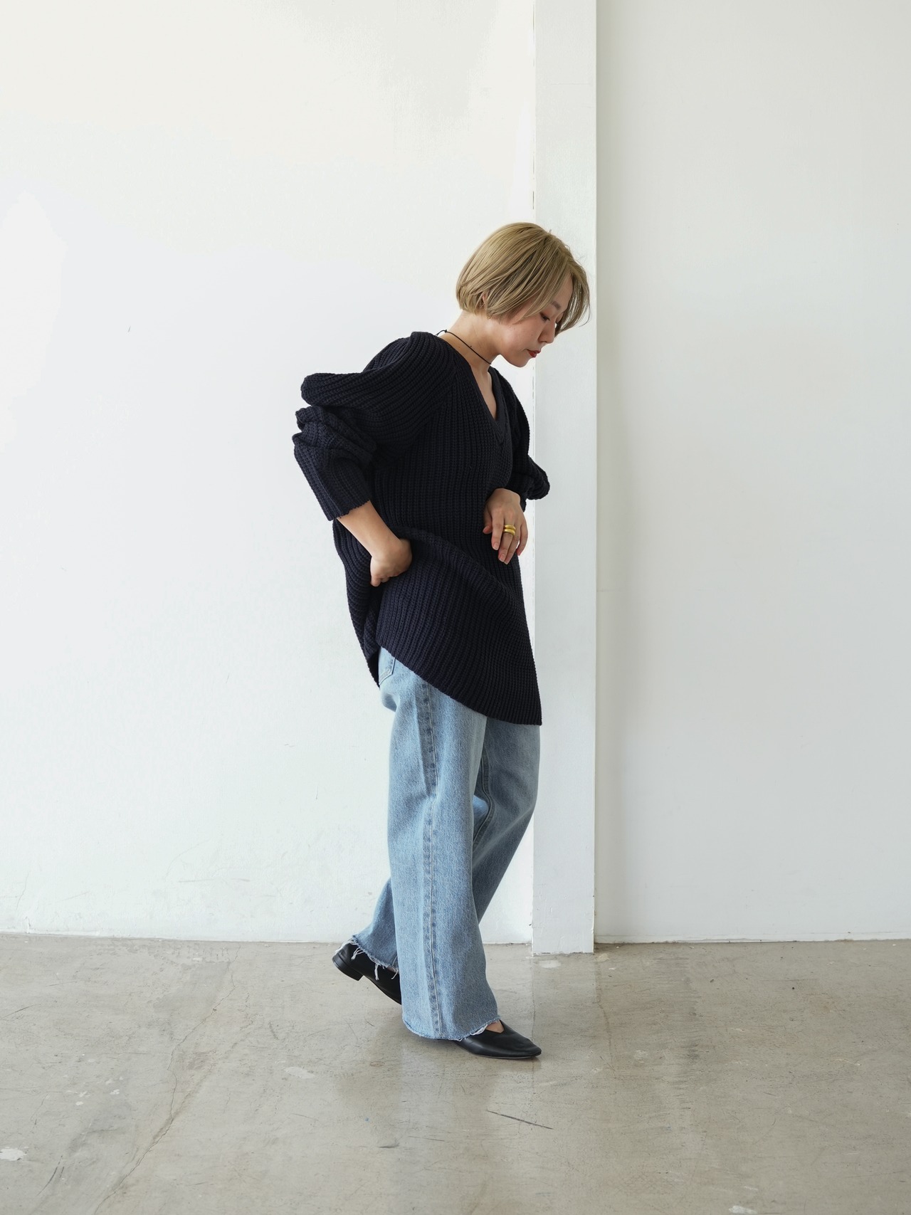 ニット素材だからこその優しい落ち感と