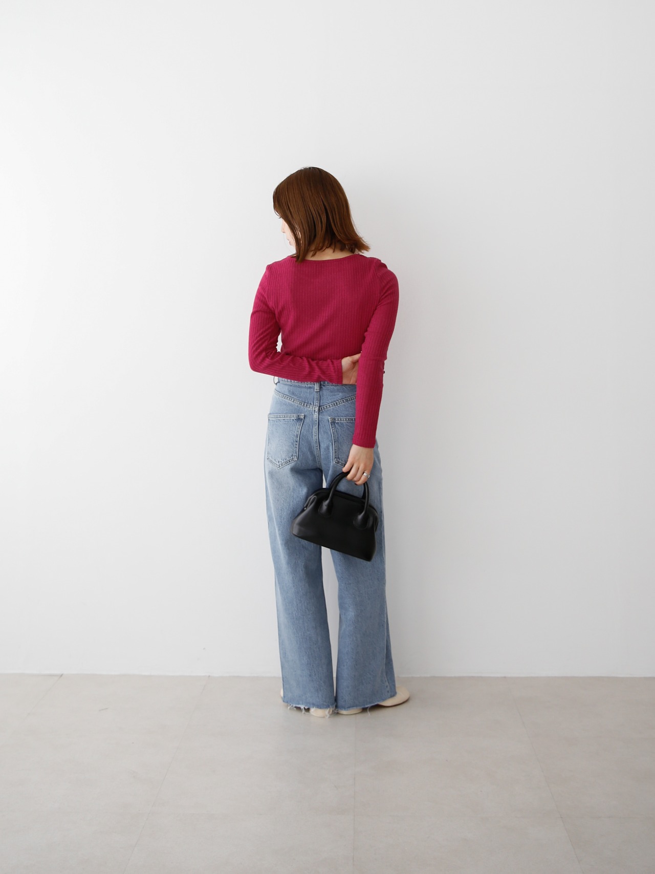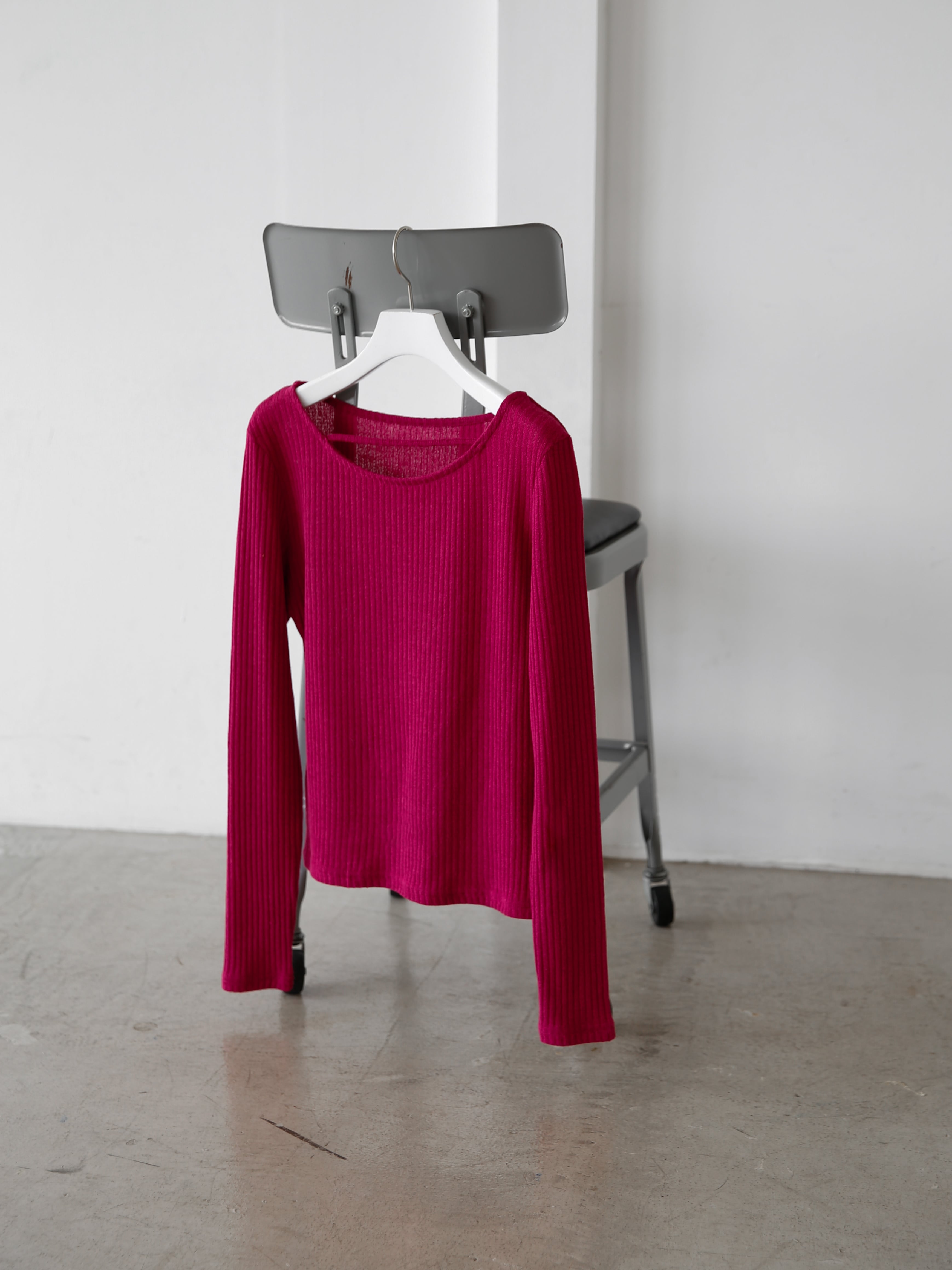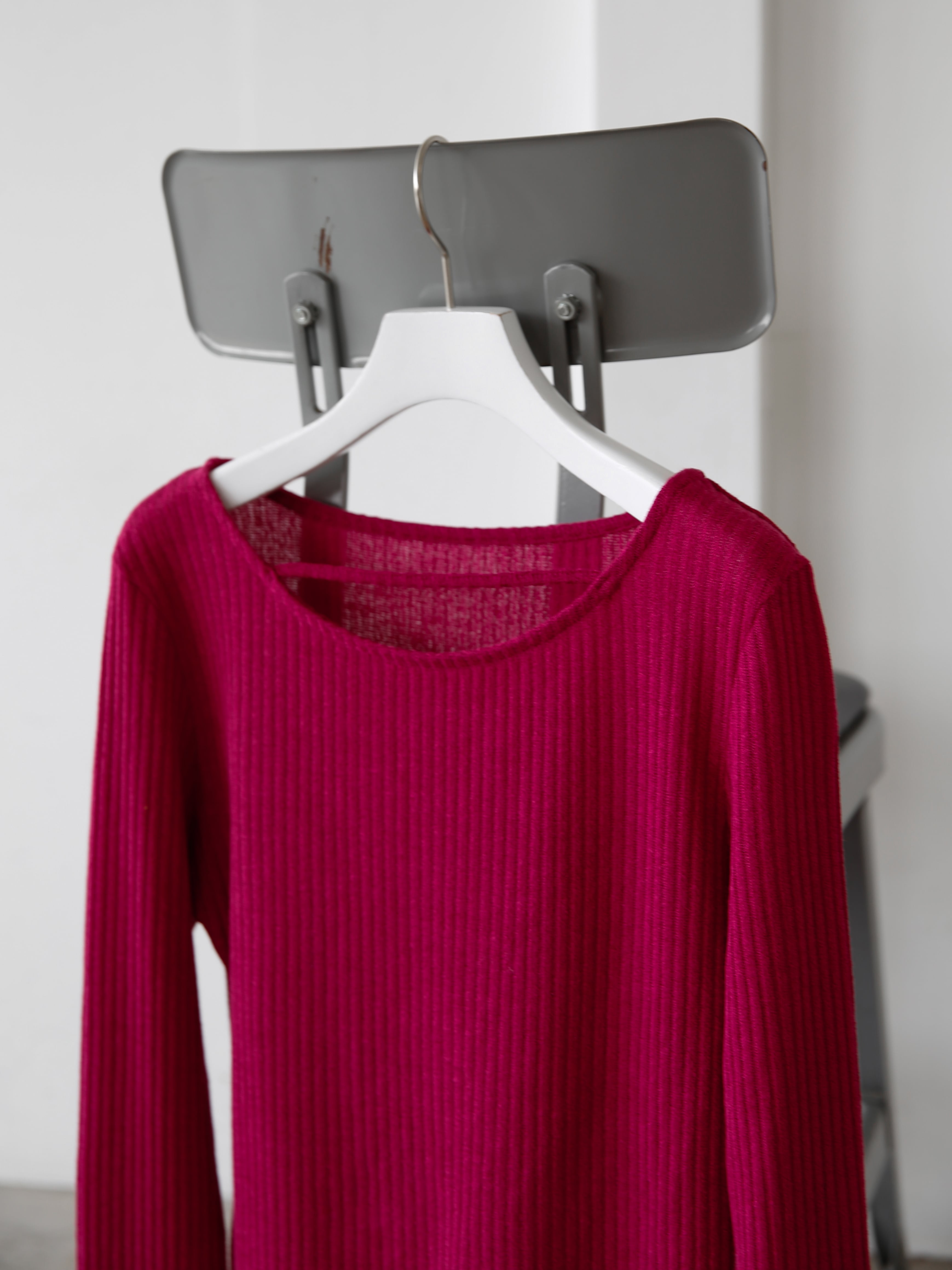 •deep pink:ほのかに杢感のある、奥行きたっぷりの大人ピンク。青みと赤みのバランスが絶妙で、甘くなりすぎず、落ち着いた印象に。ベーシックなデニムやスラックスに合わせるだけで、コーデ全体がぐっと洒落た雰囲気に仕上がります。