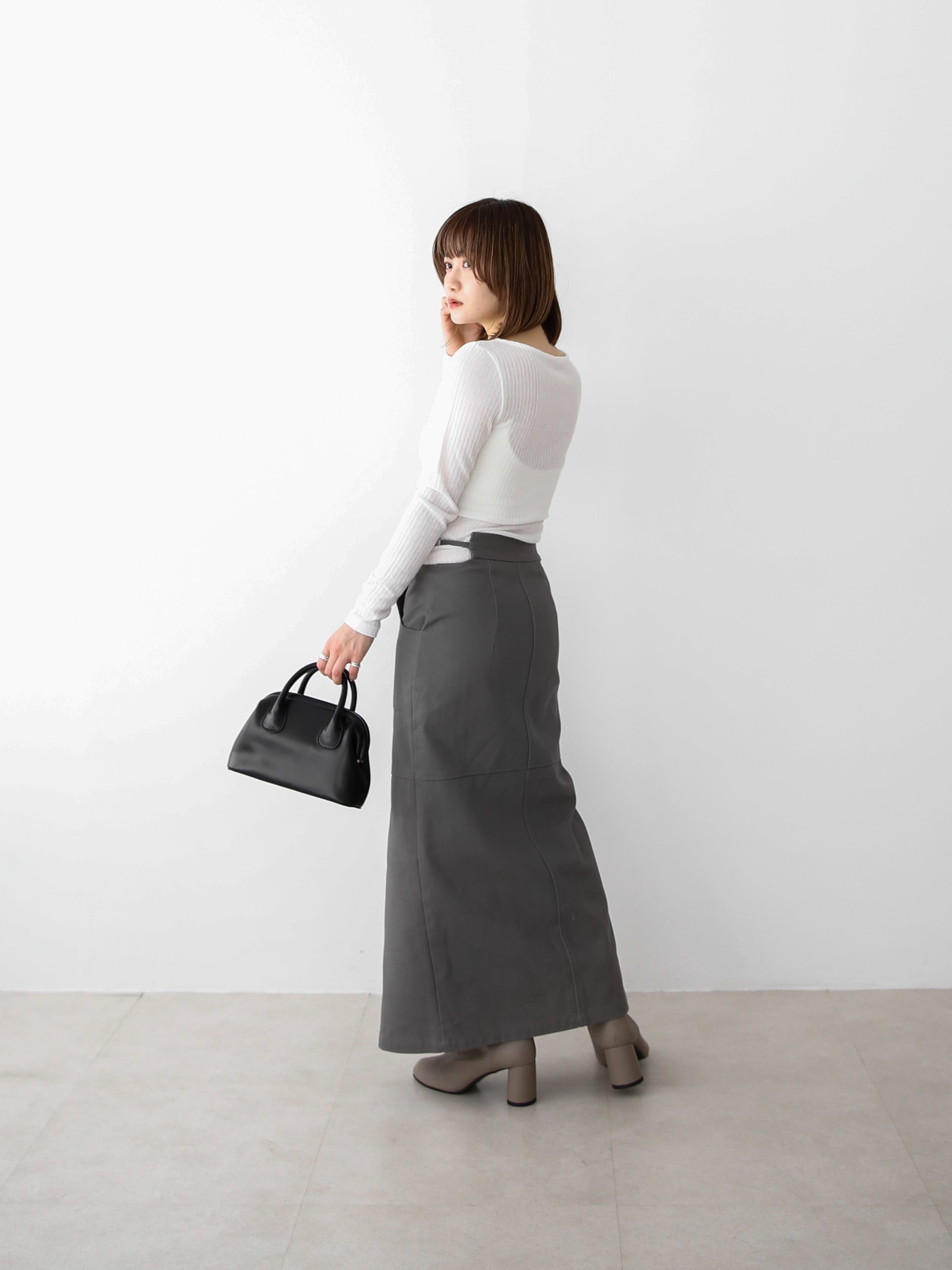 •white:スタイリングの幅を広げてくれる万能カラー。馴染みの良い柔らかな白は、インナーとしても主役としても活躍。軽やかな透け感が程よく抜け感を出してくれるので、春先や秋口に羽織のインナーとして仕込めば、着こなしが一気に垢抜けます。また顔色を明るく見せてくれるのも嬉しいポイント。