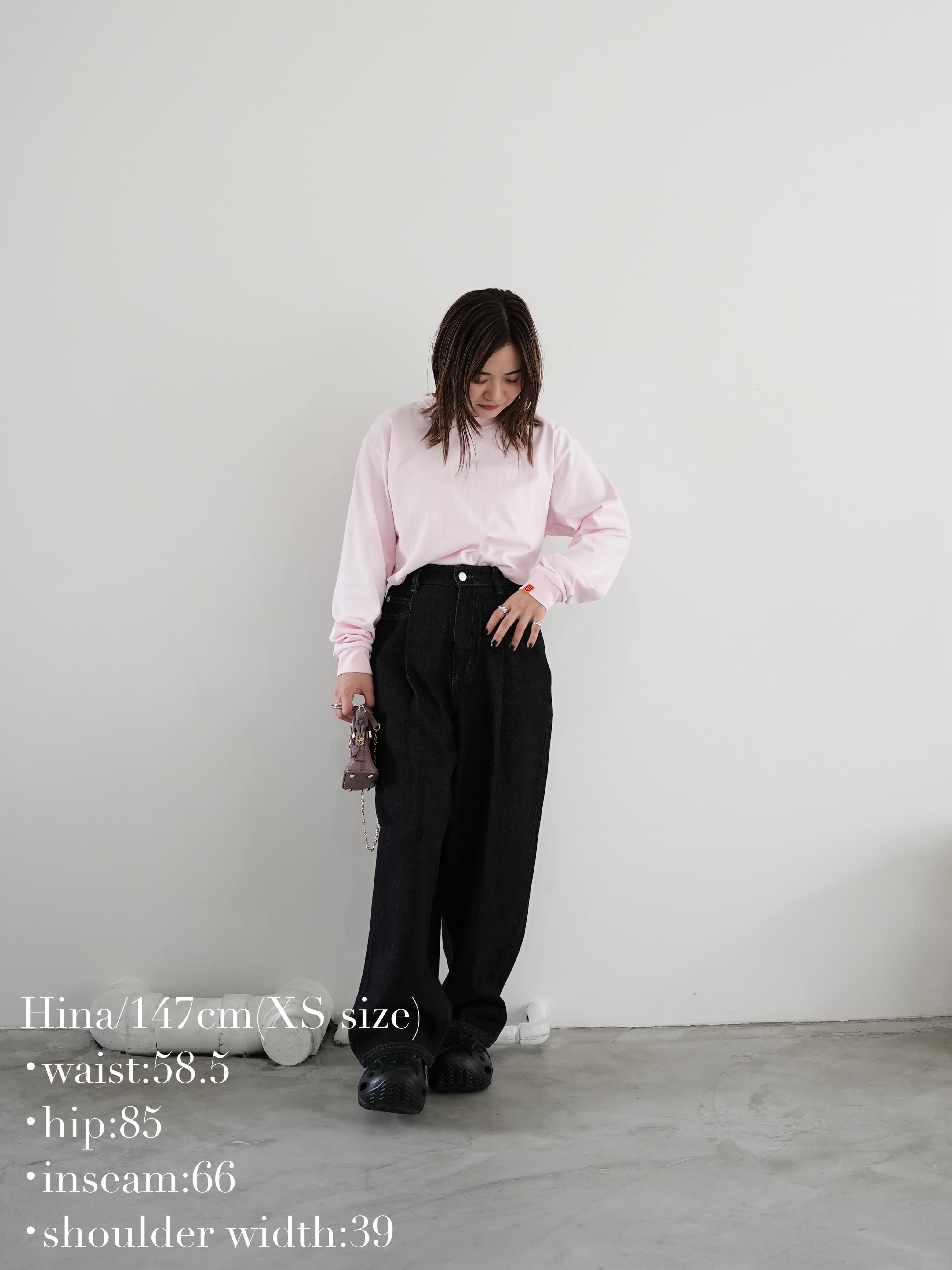 XSサイズはメンズS相当、FreeサイズはメンズM相当のロンTから型を抜いてUNIVERSAL OVERALLとのコラボらしいサイズ感に仕上げました