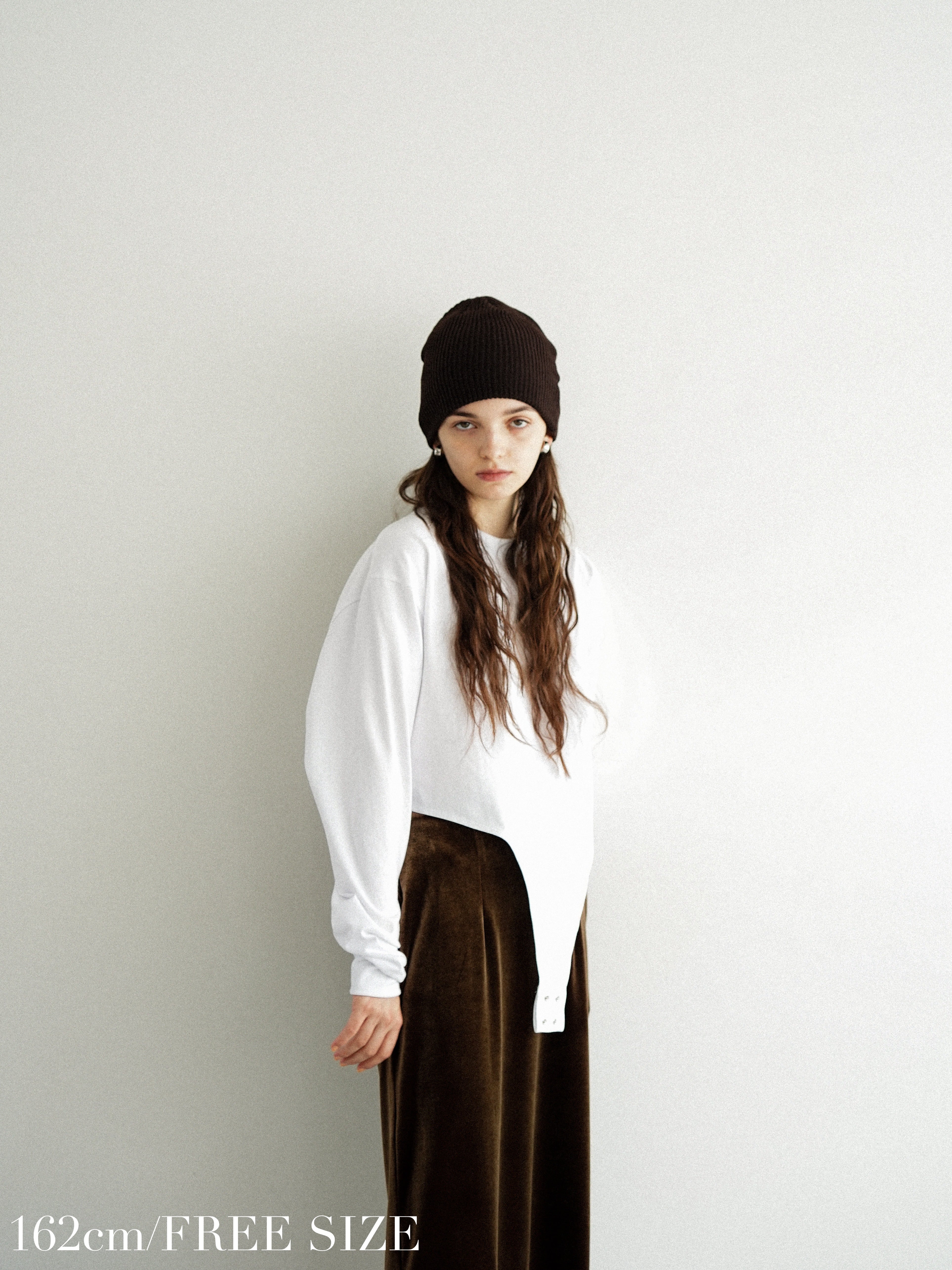 ・white:カジュアルな定番ロンTの象徴ともいえるカラー。ボディスーツ型&シャーリングという女性らしい要素とのギャップを一番楽しめるのがこのホワイト。素材の立体感やデザインのこだわりが一層引き立つ。