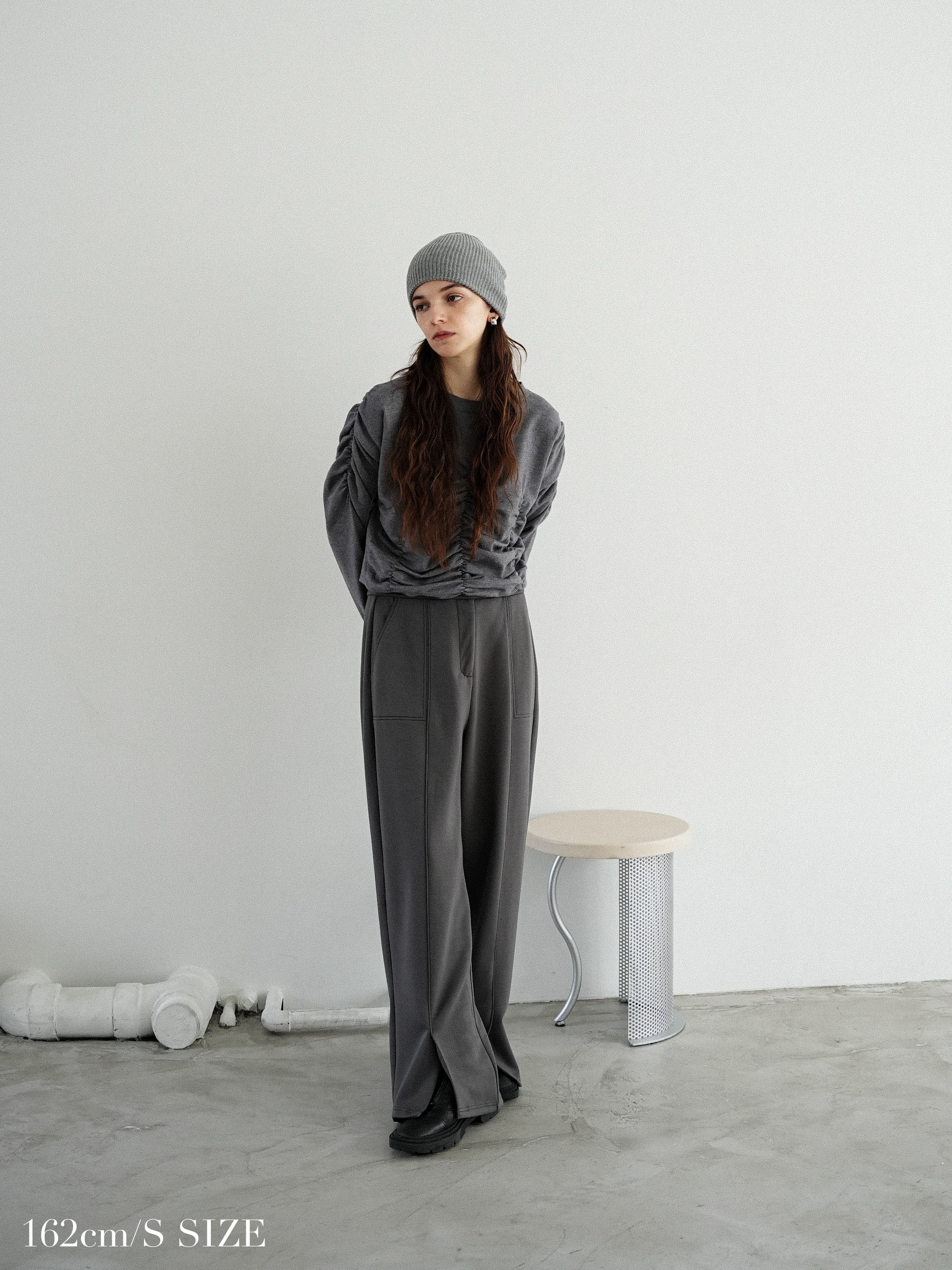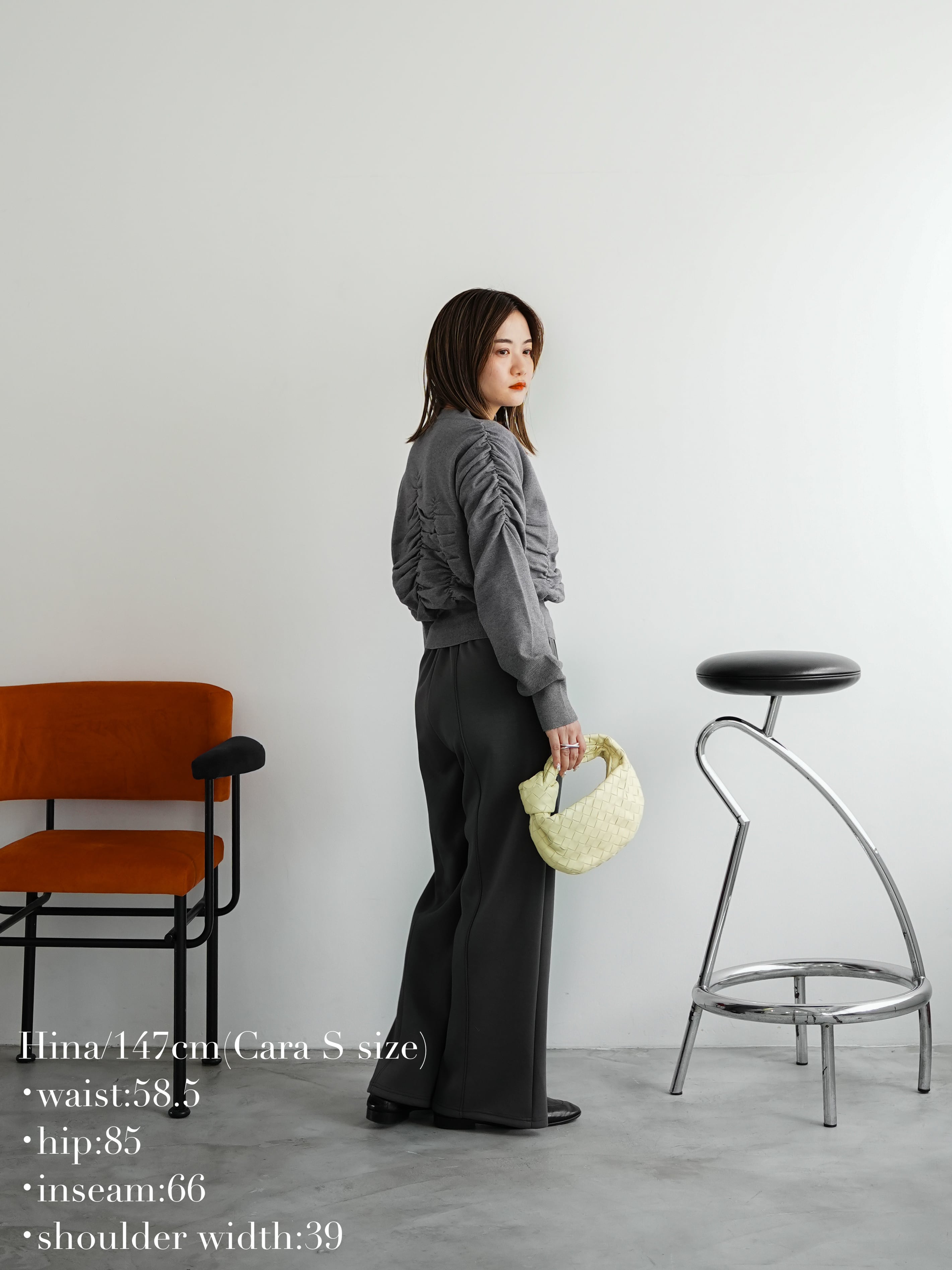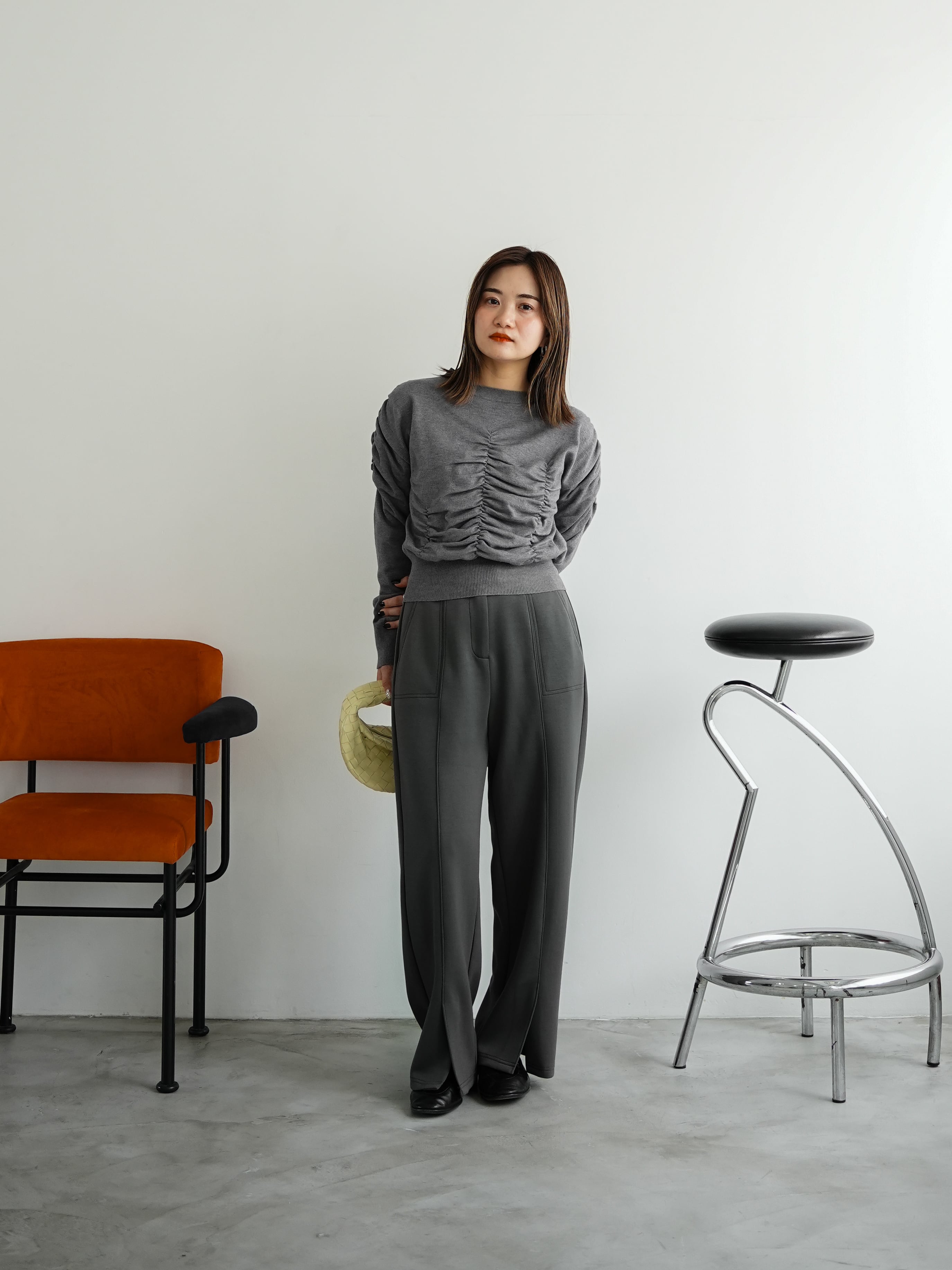 •charcoal:グレーよりも深く、ブラックほど重たくない。その絶妙な濃度が大人のニュアンスを漂わせるチャコールカラー。どんなトップスとも自然に馴染み、シンプルながらも都会的な印象に導いてくれます。カラーアイテムや柄物とも相性抜群で、引き算コーデのまとめ役にも最適。
