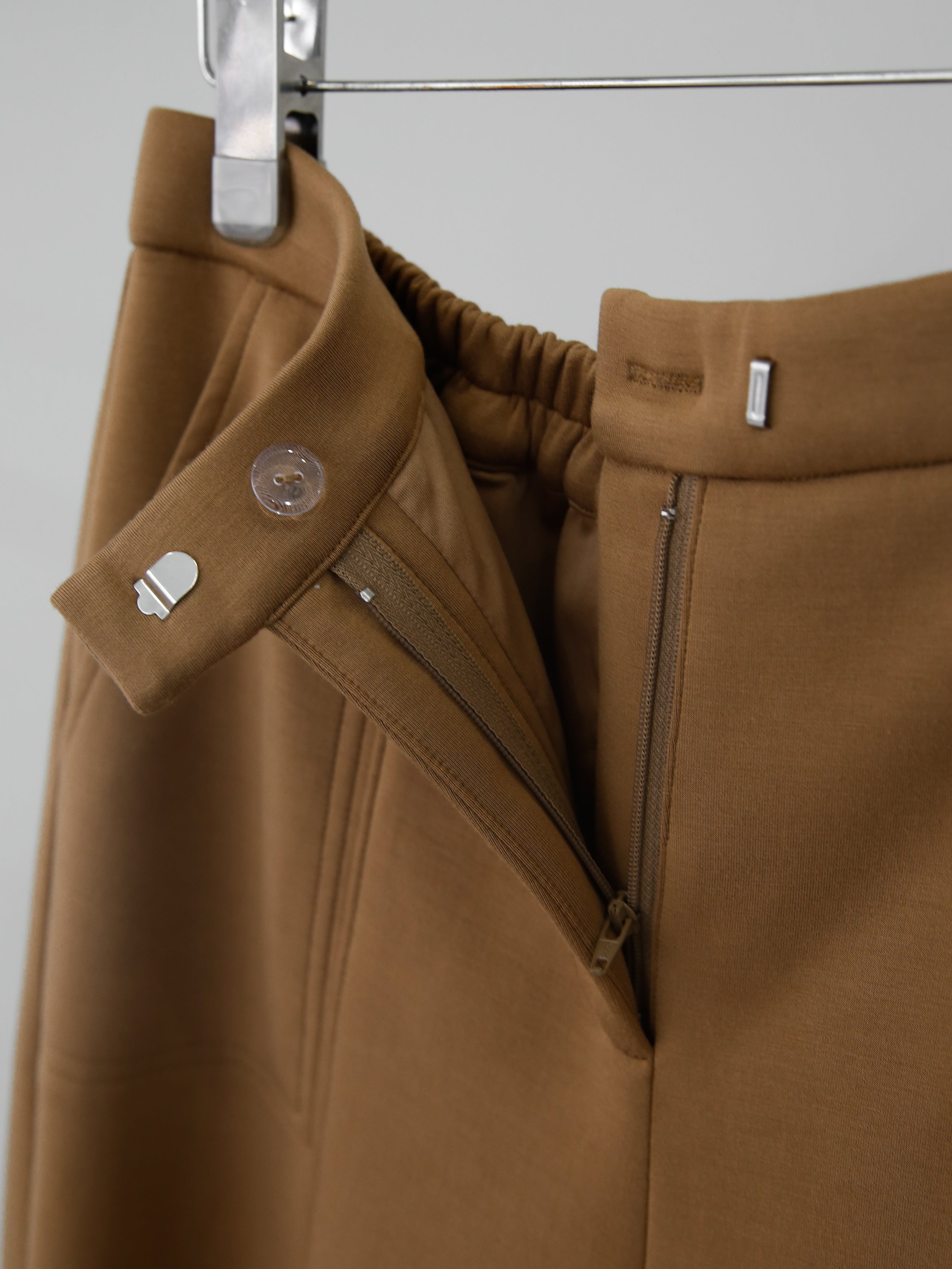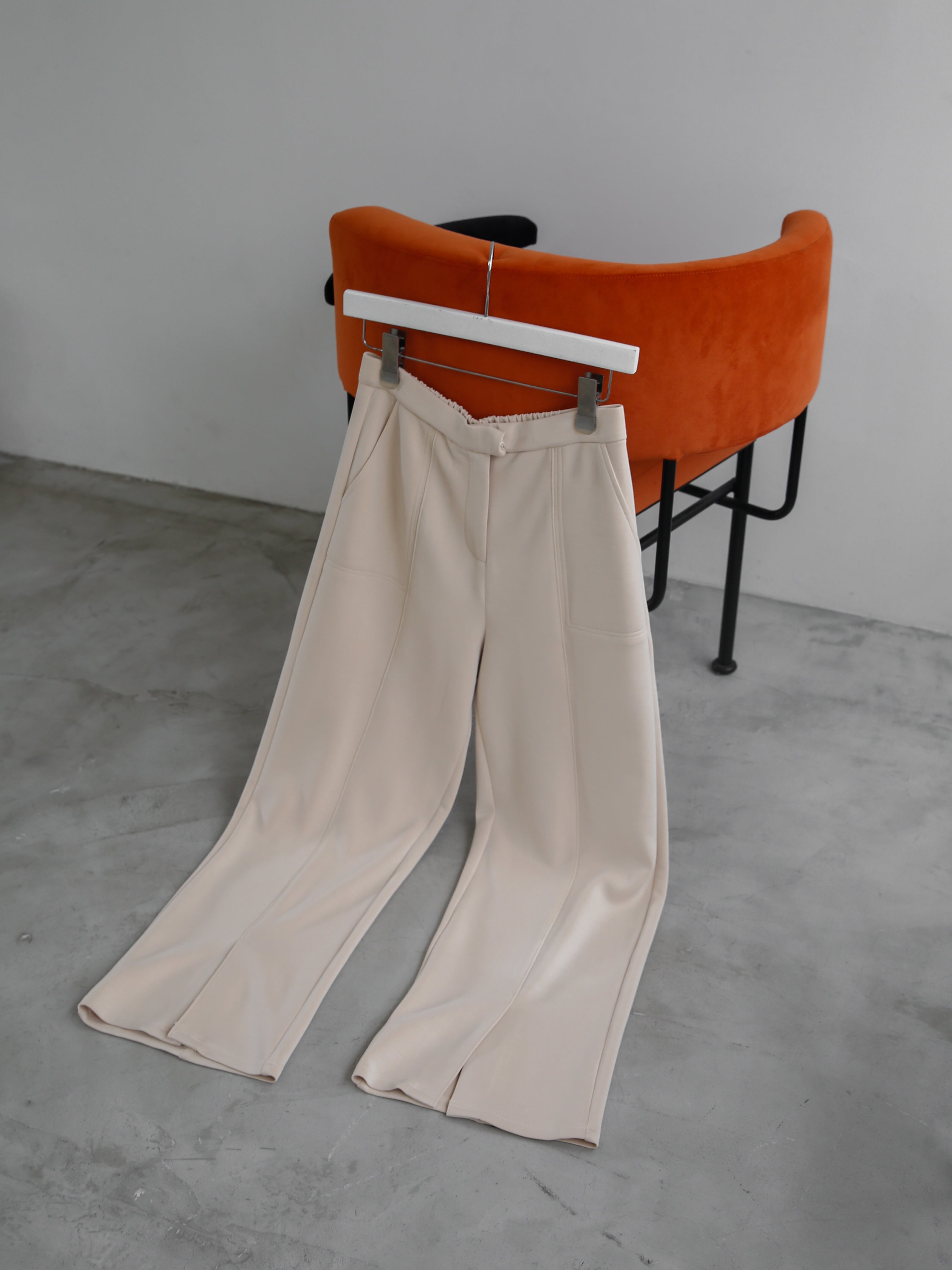 ウエストのバック部分のみゴム仕様にしているので、リラクシーな穿き心地と仕事などONのシーンにも着られる見栄えを両立。