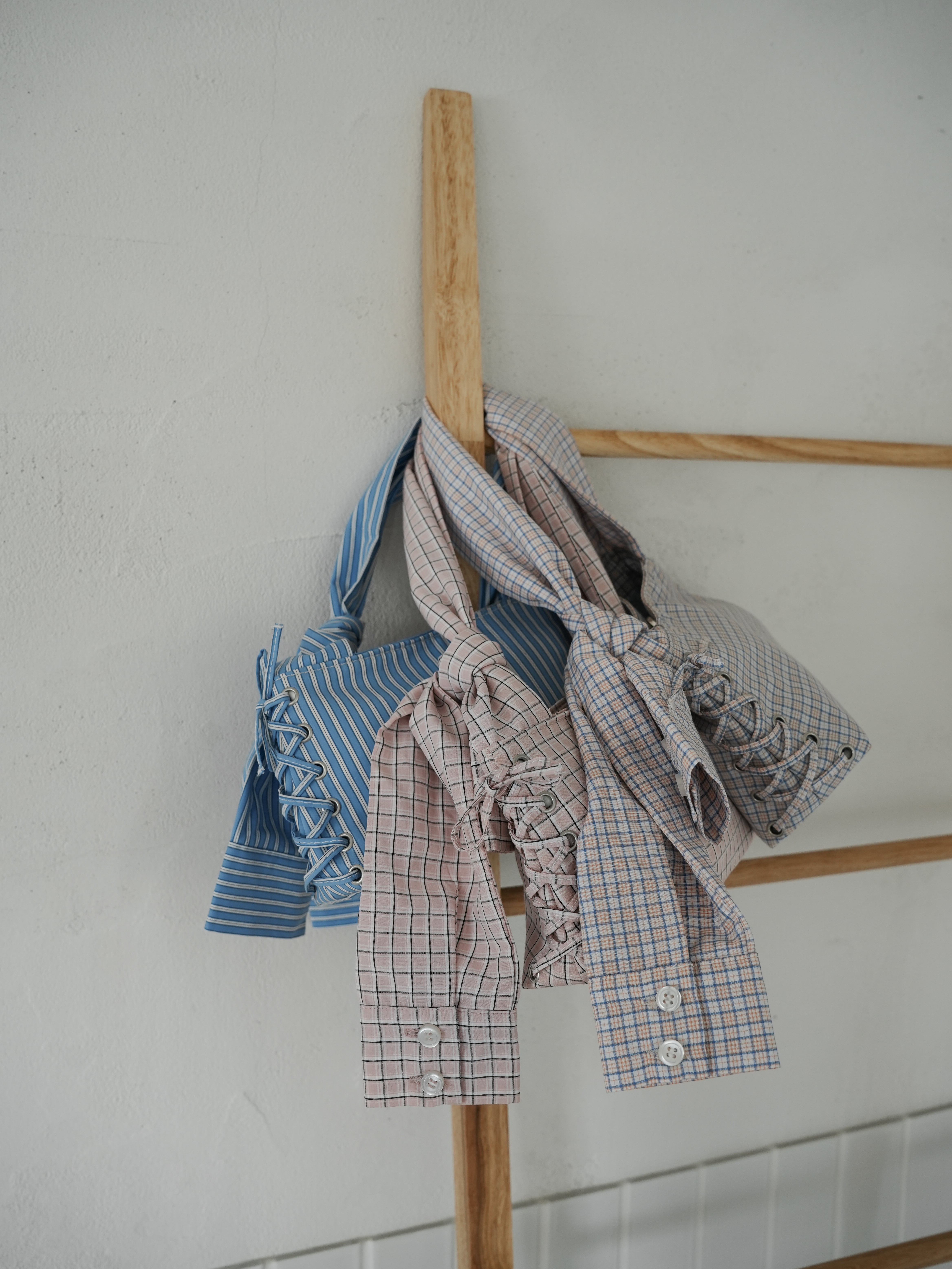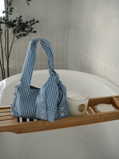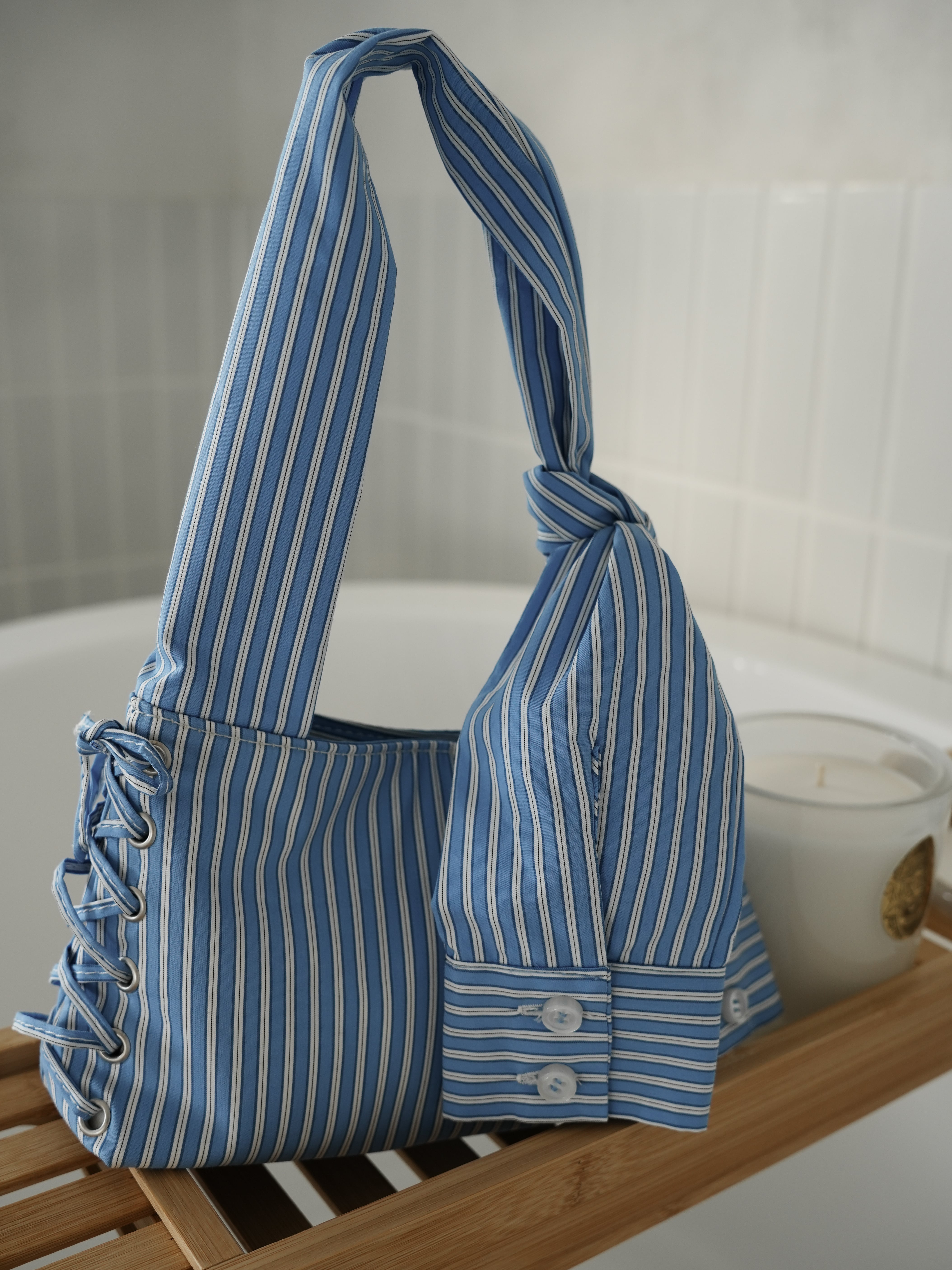 ・blue:シャツと言えばのブルーストライプがバッグになっちゃった!というシチュエーションも含めてきゅんとするこちらのブルー。あえてブルーストライプのシャツやブラウスと重ねて持つのも可愛いです