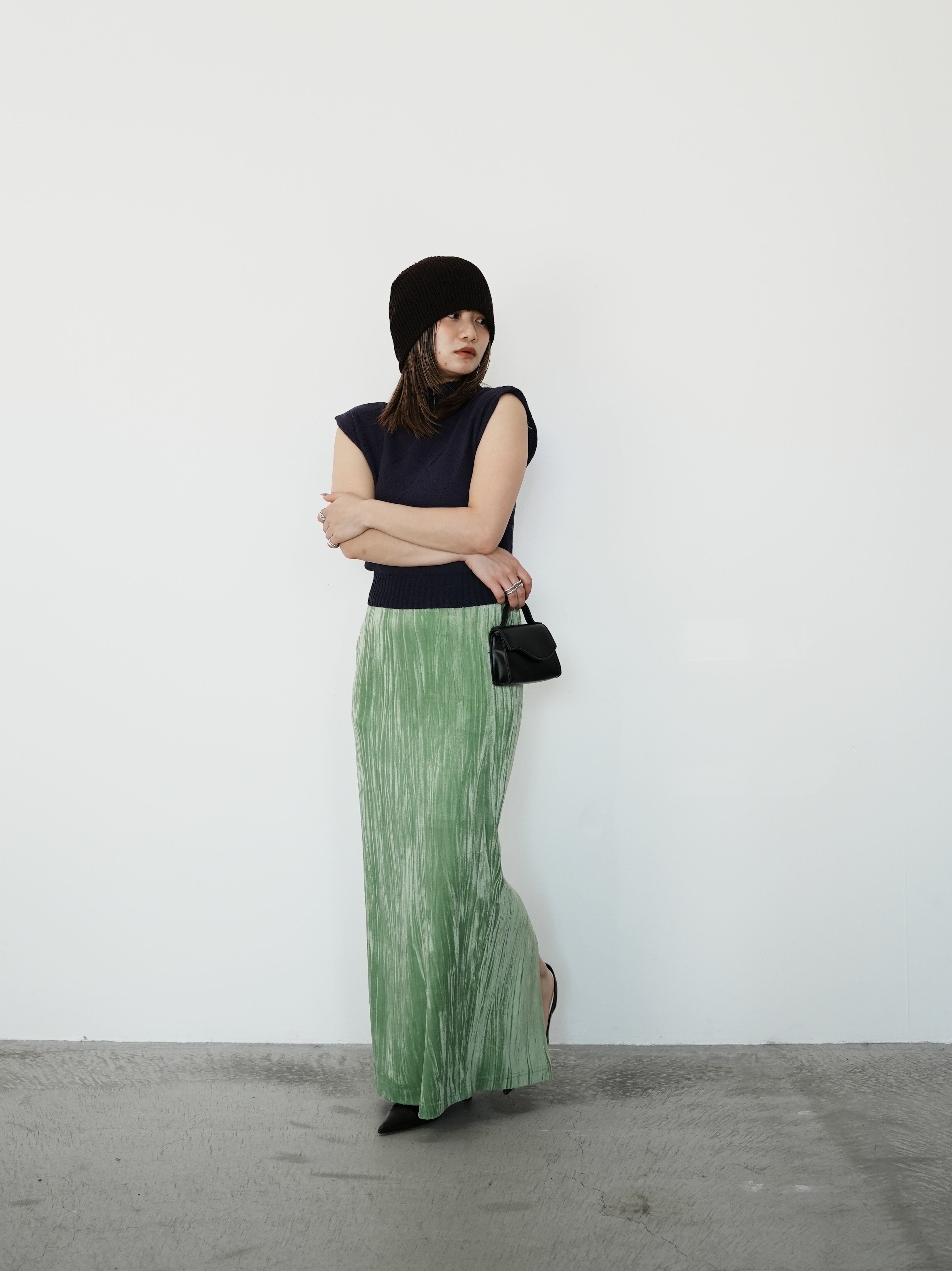 ・mulberry:”桑の実”をイメージした黒のような深みのあるパープルは、どんな色と合わせてもしっくり&洒落顔に。ベーシックカラーコーデの差し色には勿論、だまされたと思って様々なカラーボトムスと合わせてほしい。