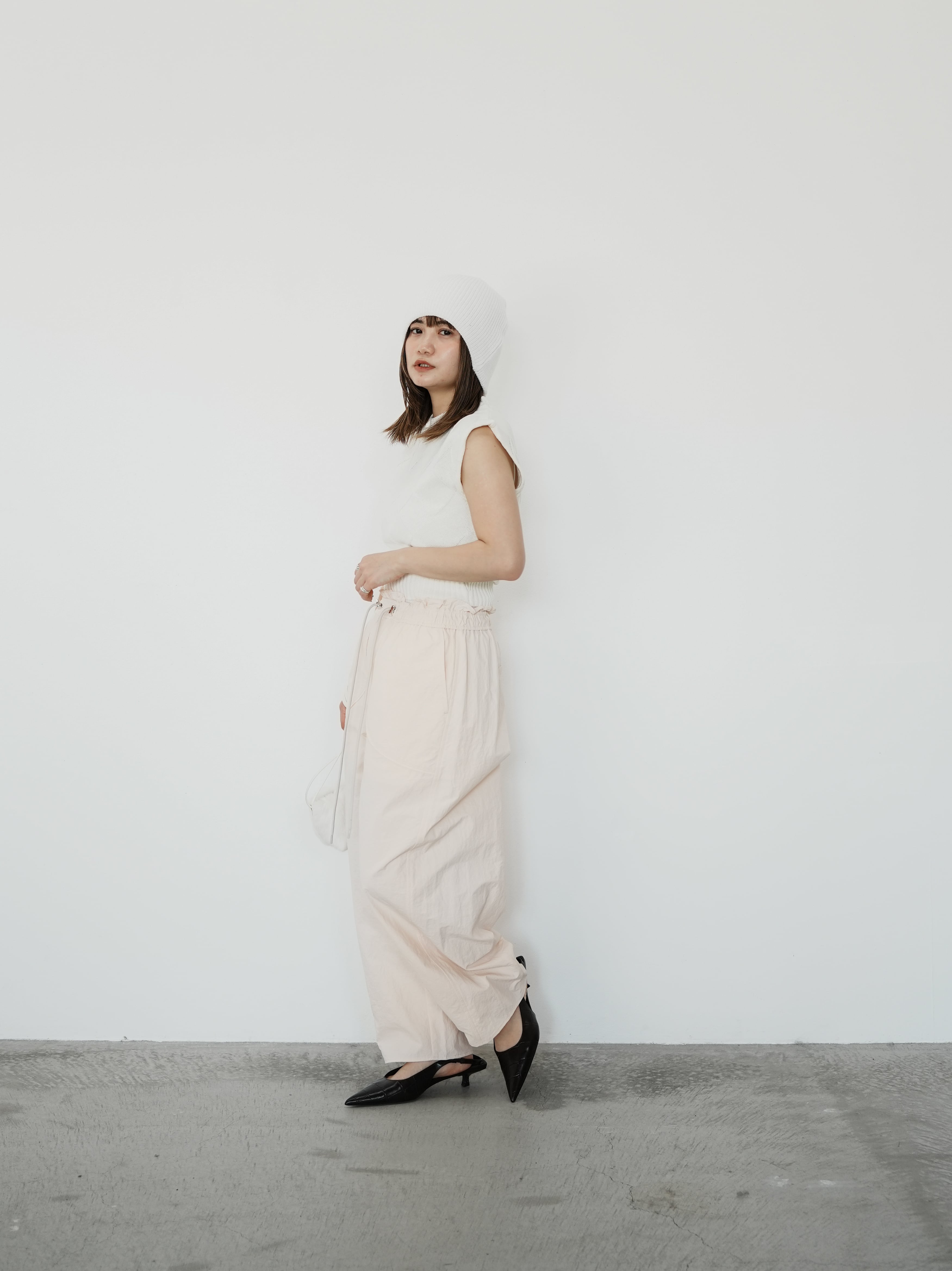 ・white:パキっと潔いホワイトがスタイリングをクリーンに。まさに白T感覚で着回せる上に、白T合わせだとカジュアルすぎてしまうようなコーデもクラスアップしてくれます。