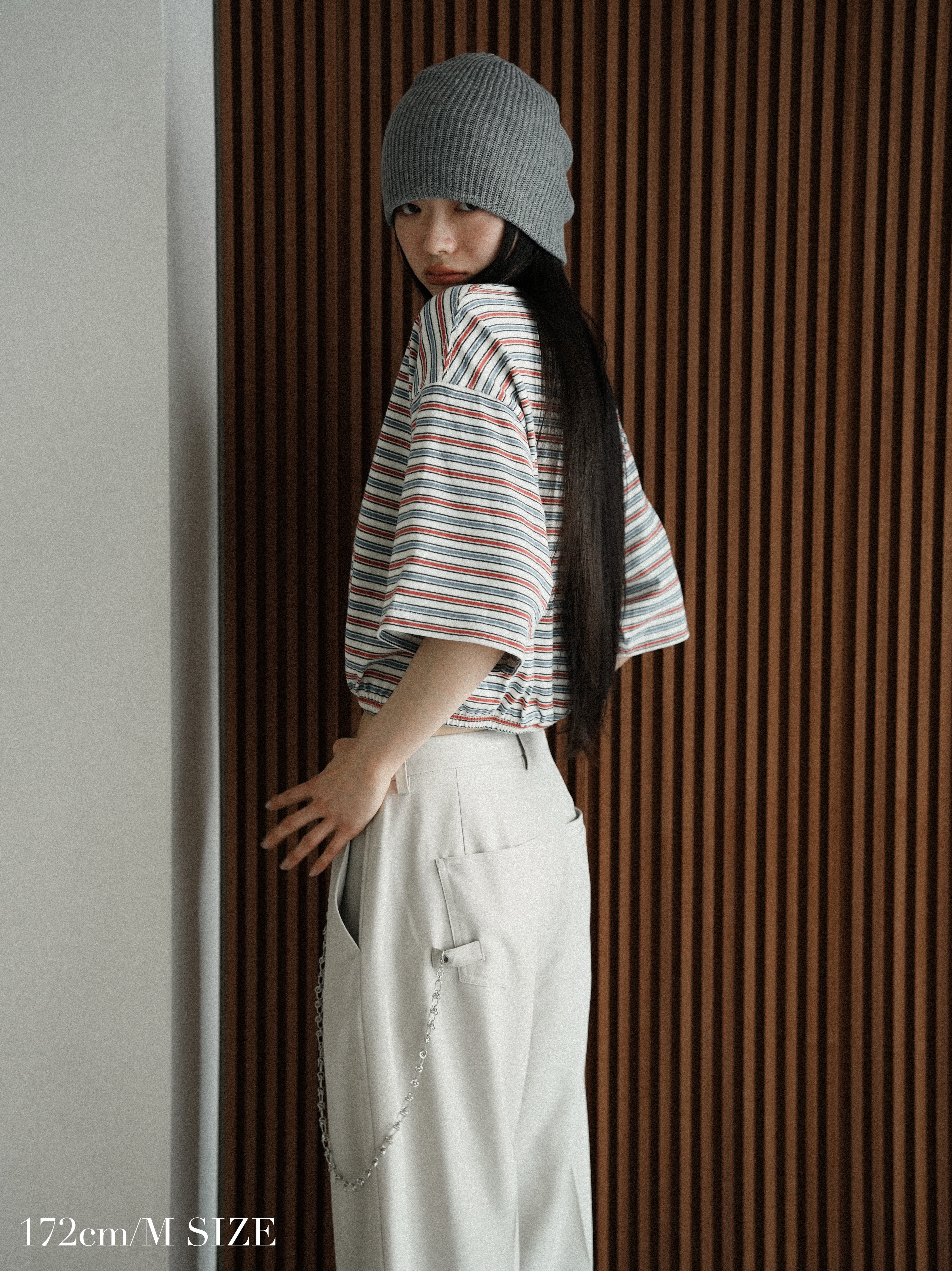 ゆとりのある身巾や袖巾と、クロップド丈のギャップが可愛いです