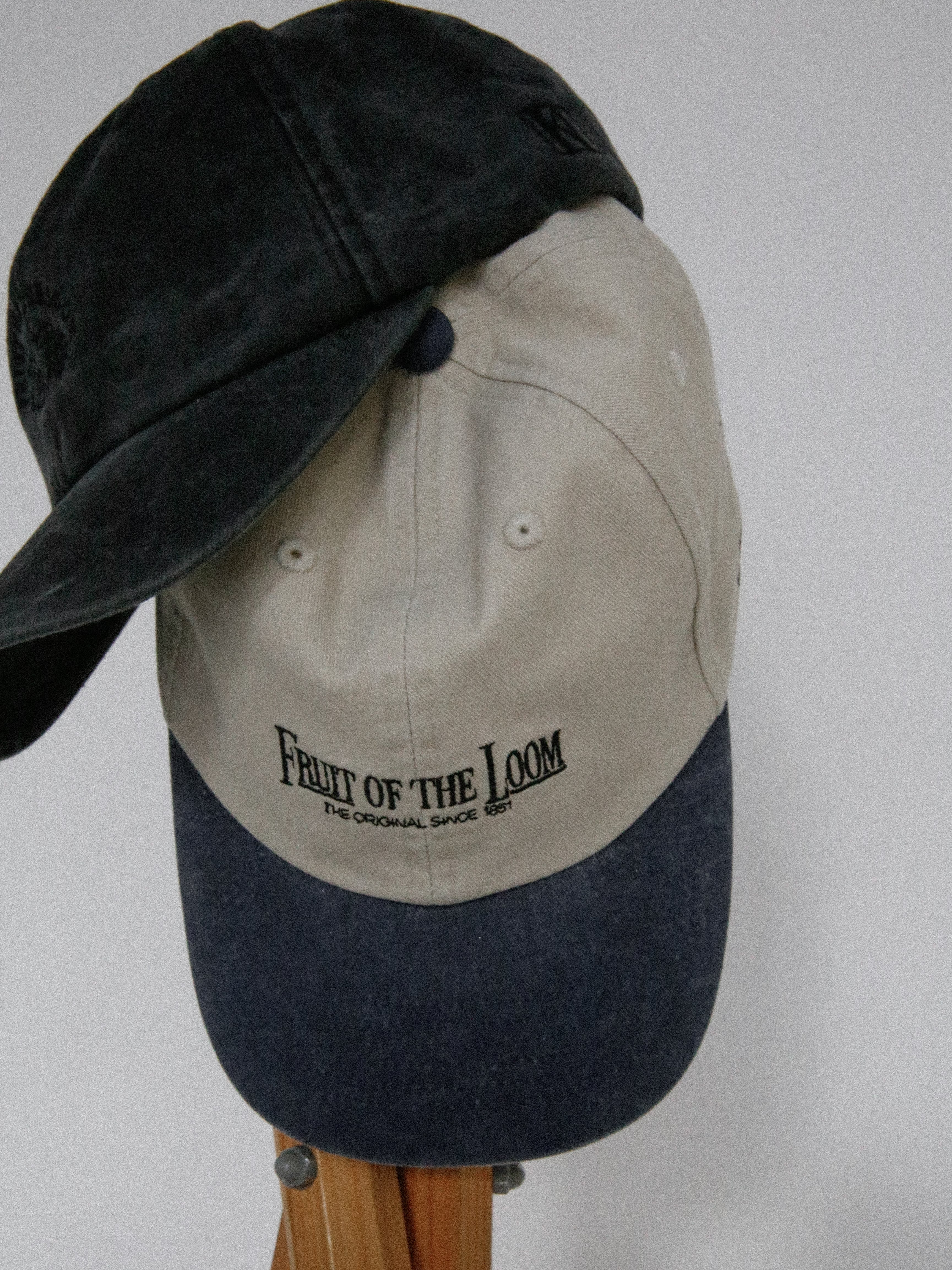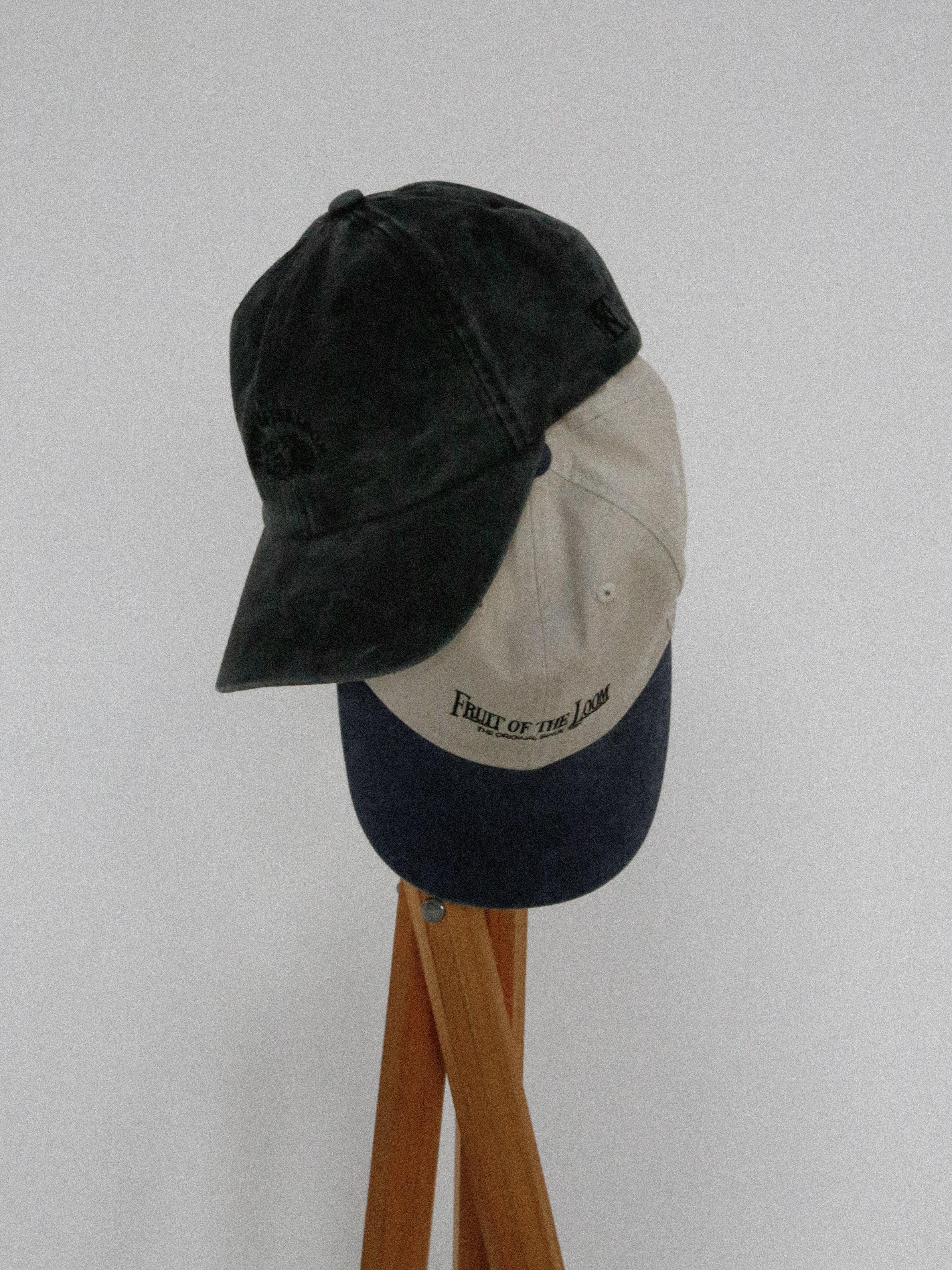 ・ivory×navy:キャップラバーさんには、ヒトクセ配色のこちらをおすすめしたい。配色と言ってもピグメント加工によりパキっとせず馴染んでいるのでこなれ感がありかぶりやすいのも魅力。配色を効かせた分、刺繍はブラックでシックに