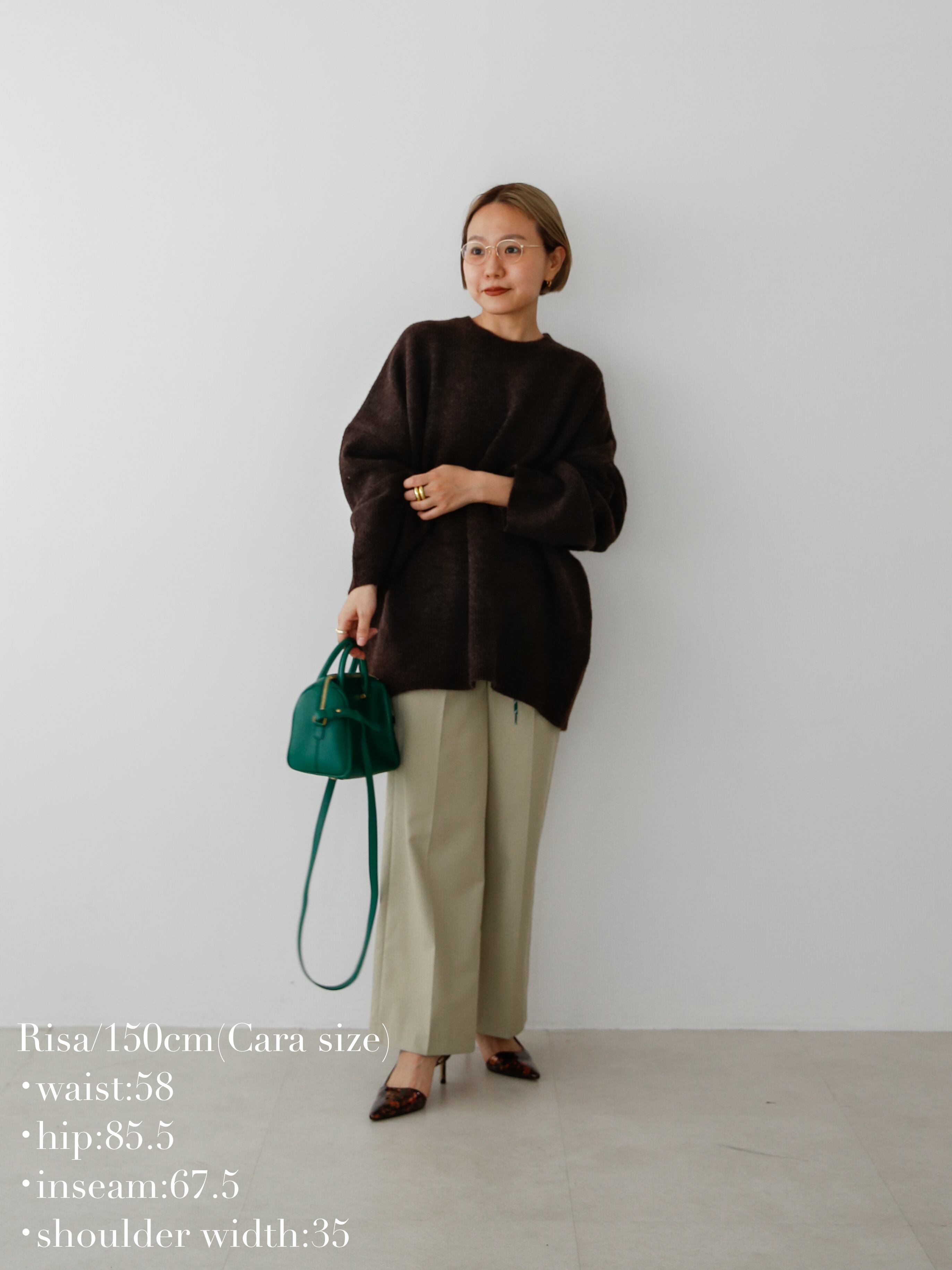 リブはあえてキュッと絞らず、指先までこのたっぷりシルエットを楽しめるのもポイント、ロールアップしたり腕まくりしたりして手元にポイントを作るのも◎