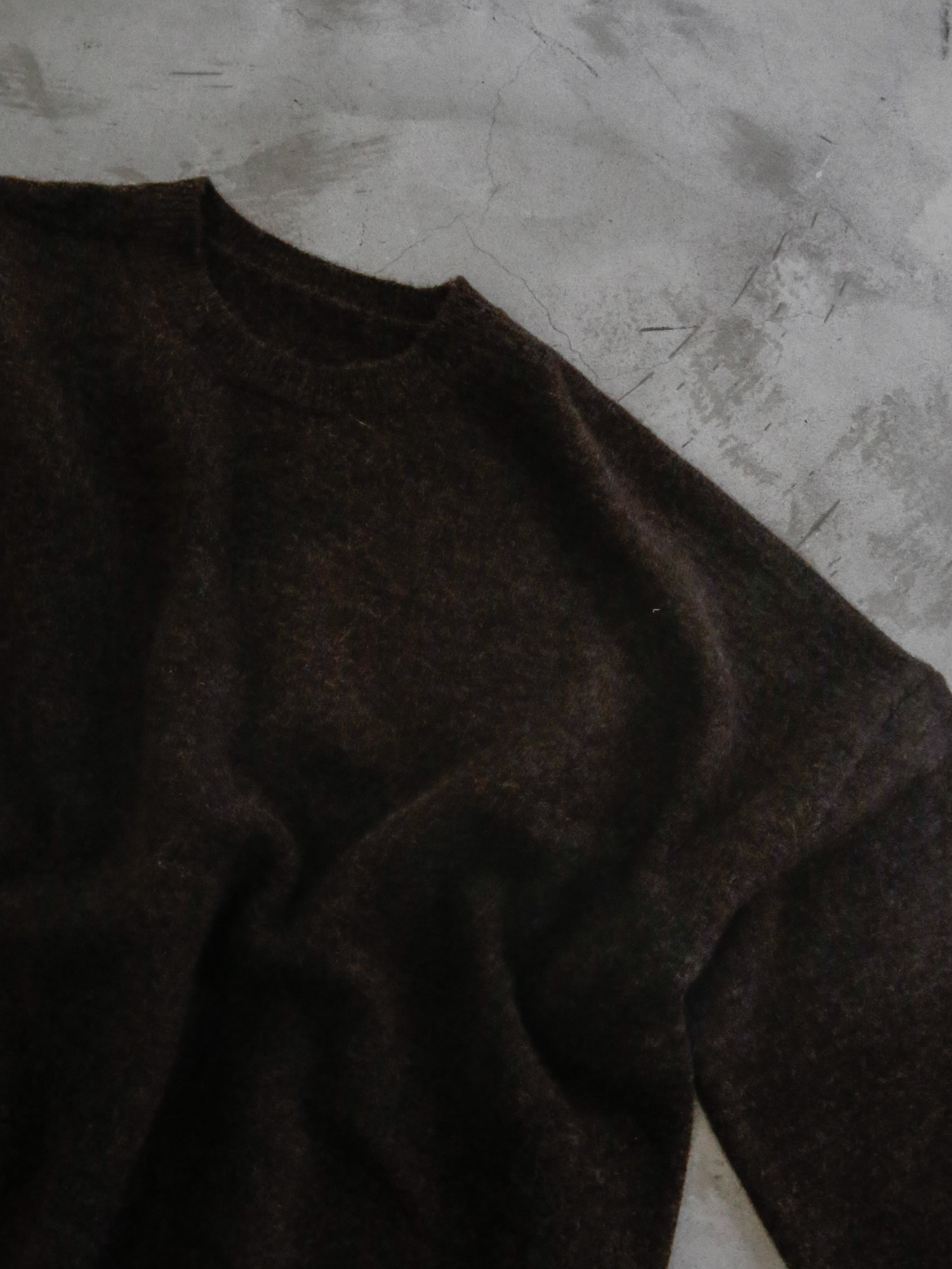 ・coffee:黒に近いほど深みのあるブラウン。濃いめのトーンに、わずかに明るめの糸が織り交ぜられた杢感があり、表情豊かに仕上げました。のっぺりせず、光の角度で陰影が生まれるのも魅力。どんなスタイリングにも馴染みながら、キリッと締めてくれる万能カラーです。