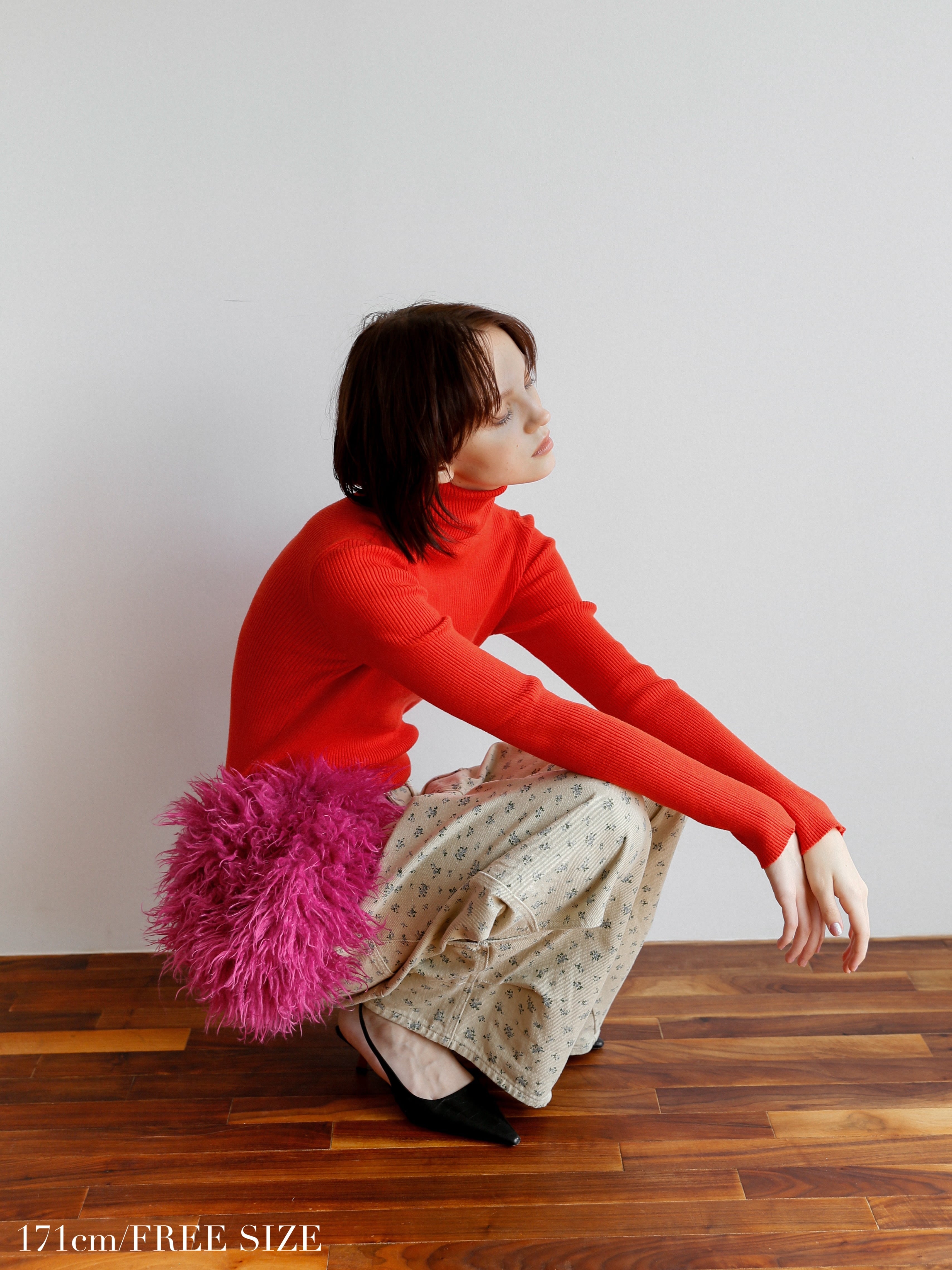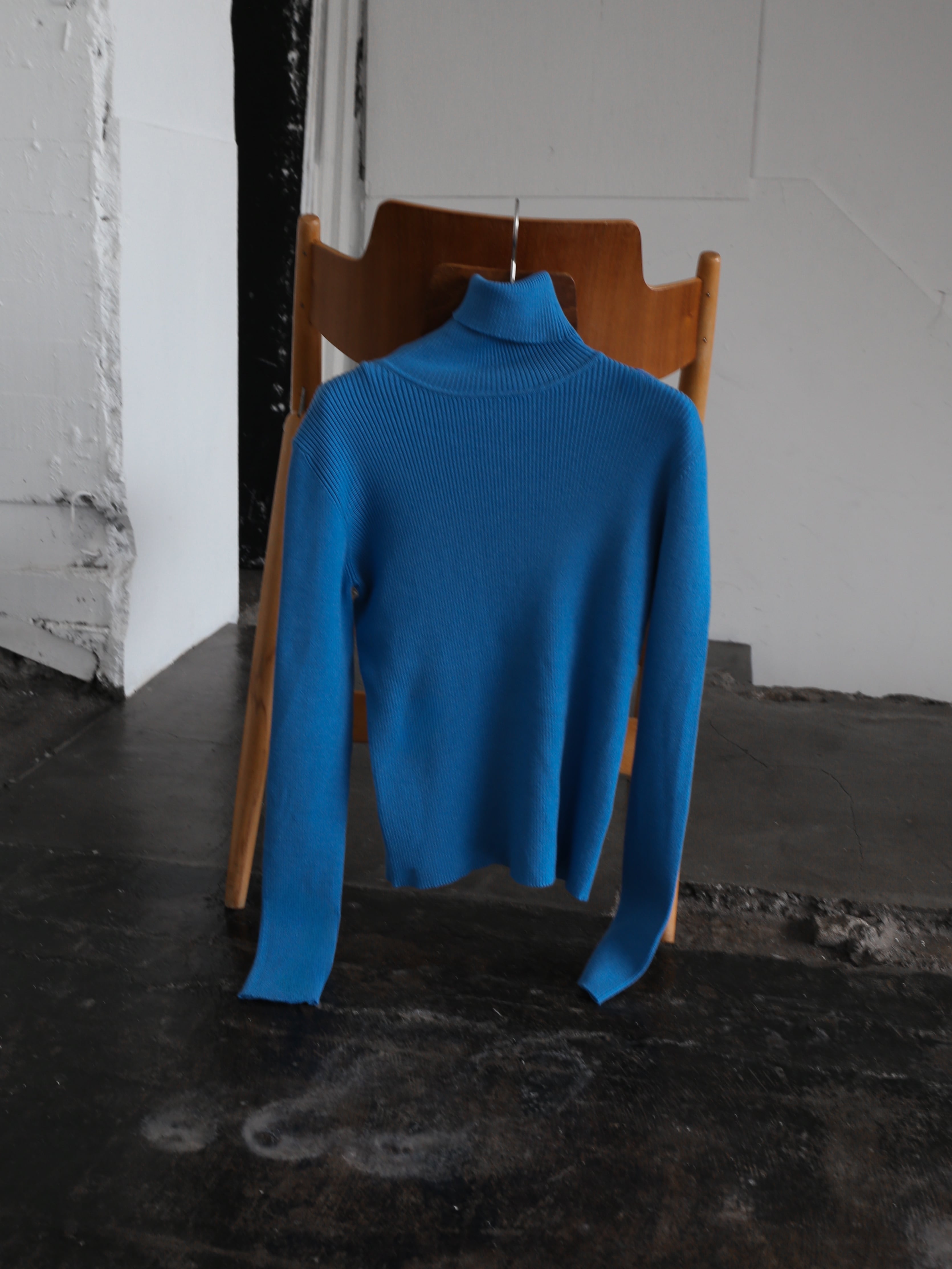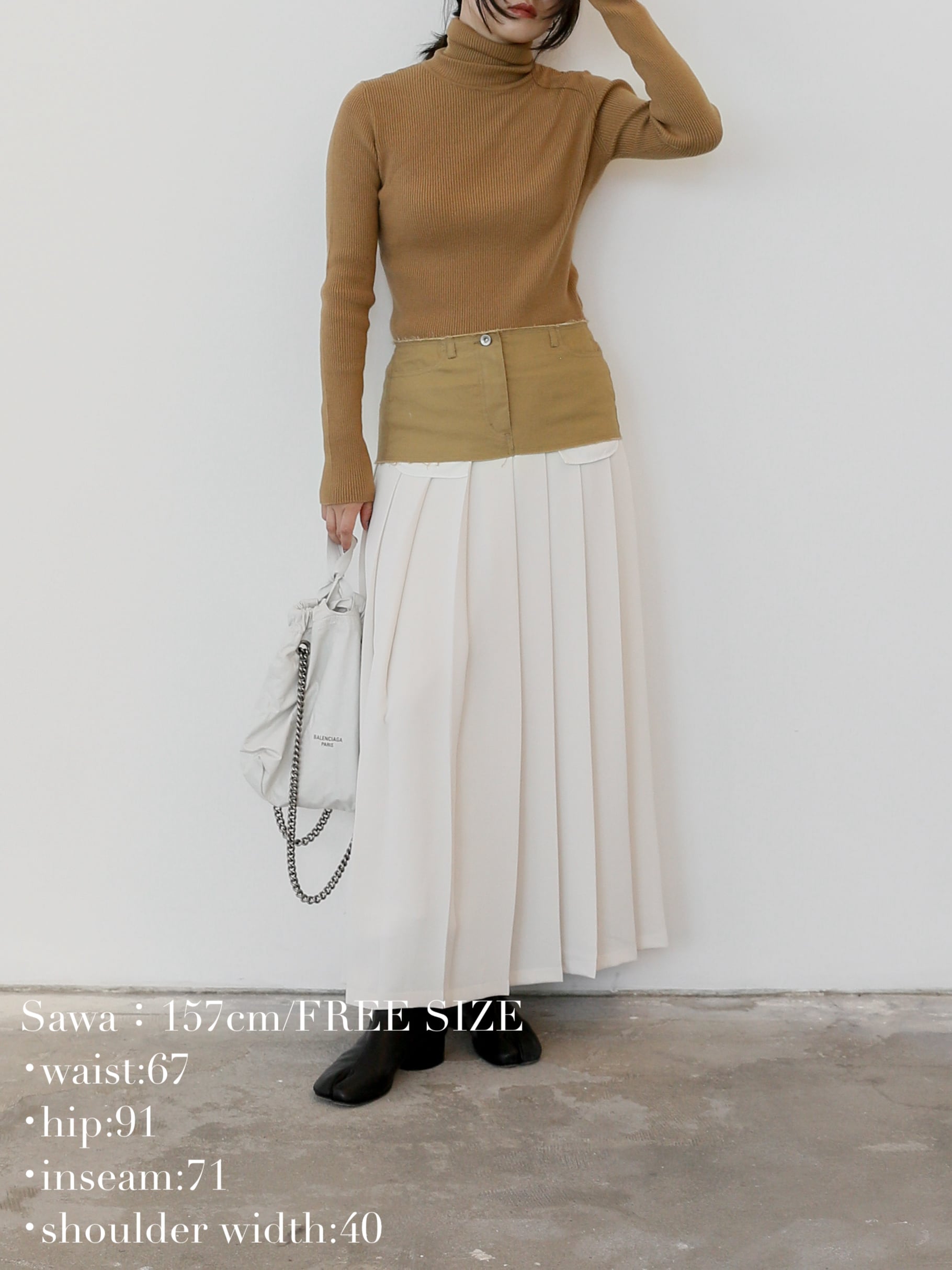 このリブタートルニットの上からシャツをレイヤードすれば、海外スナップで見かけたような感度の高い着こなしが完成