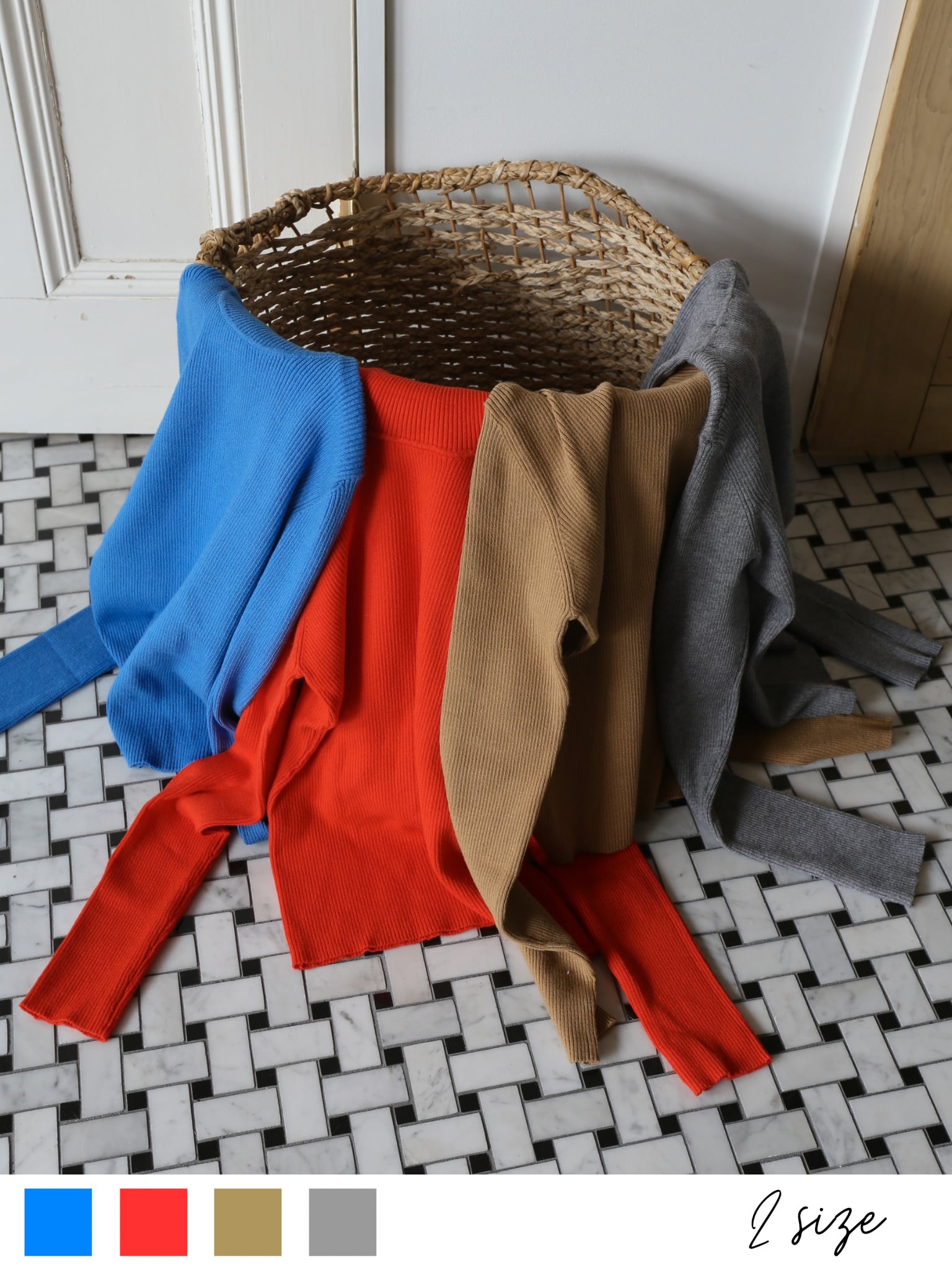 着心地の良さと豊富なカラーバリエーションで毎年大人気のカラーリブタートルニット
