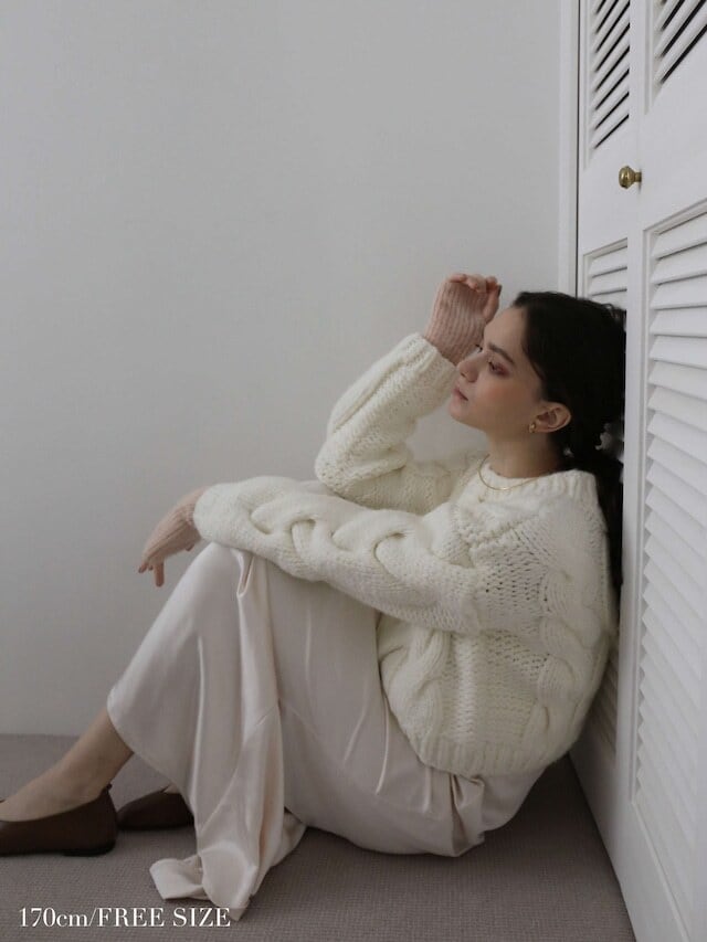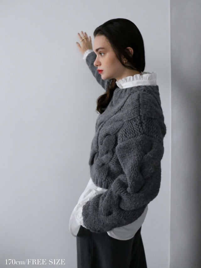 大きく編まれたケーブルで主役級の存在感を放つ一着です