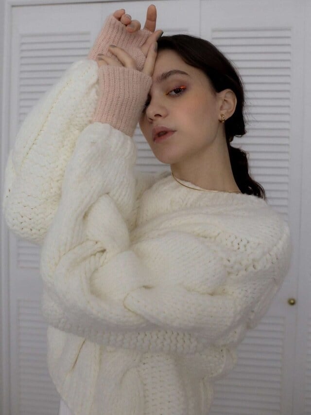 編み柄と肉厚ニットの可愛さに頼って、デザイン自体はシンプルに