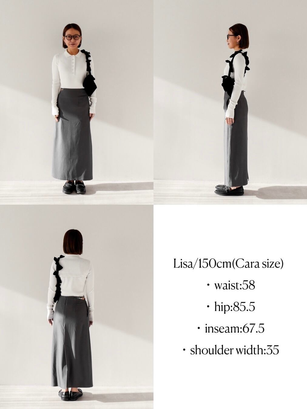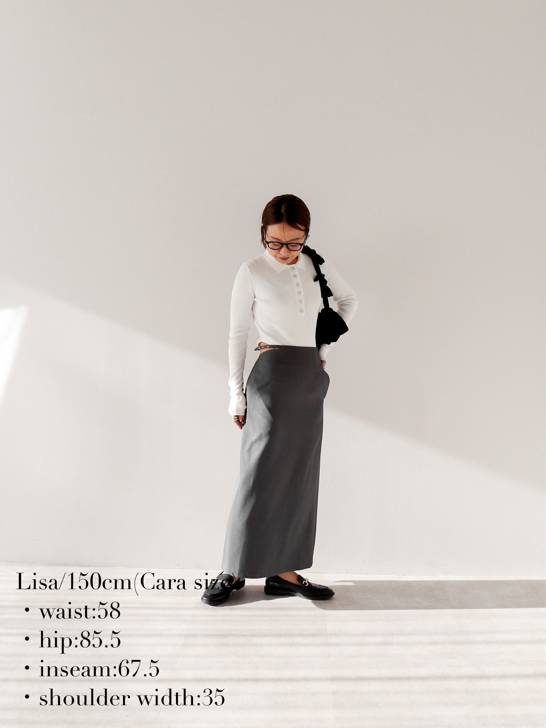 リブの凹凸はしっかりしているので、身体に寄り添うシルエットながらも肉感を拾う心配がありません