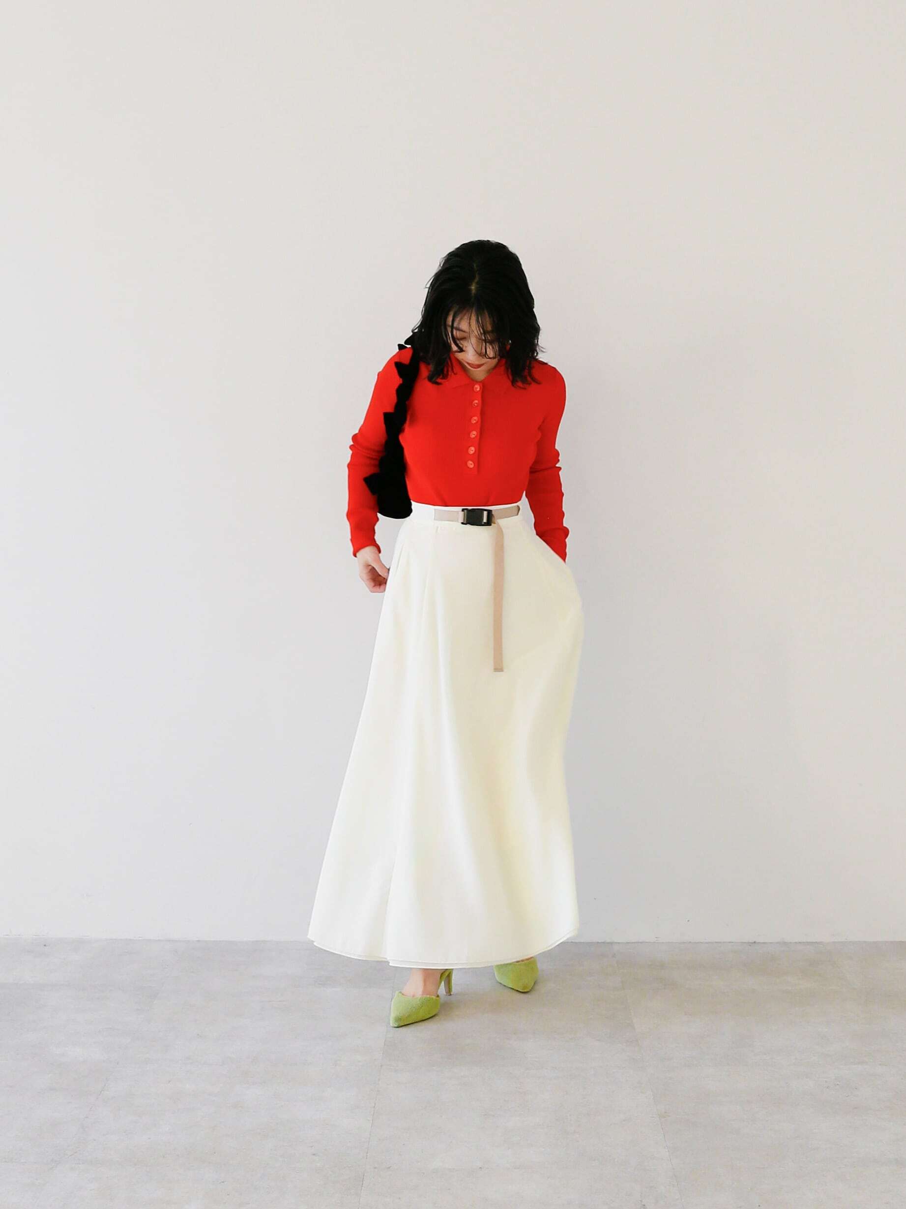 ・white:ivoryではなく潔いwhiteが白シャツのように重宝しそう。お顔周りを明るく見せてくれます。