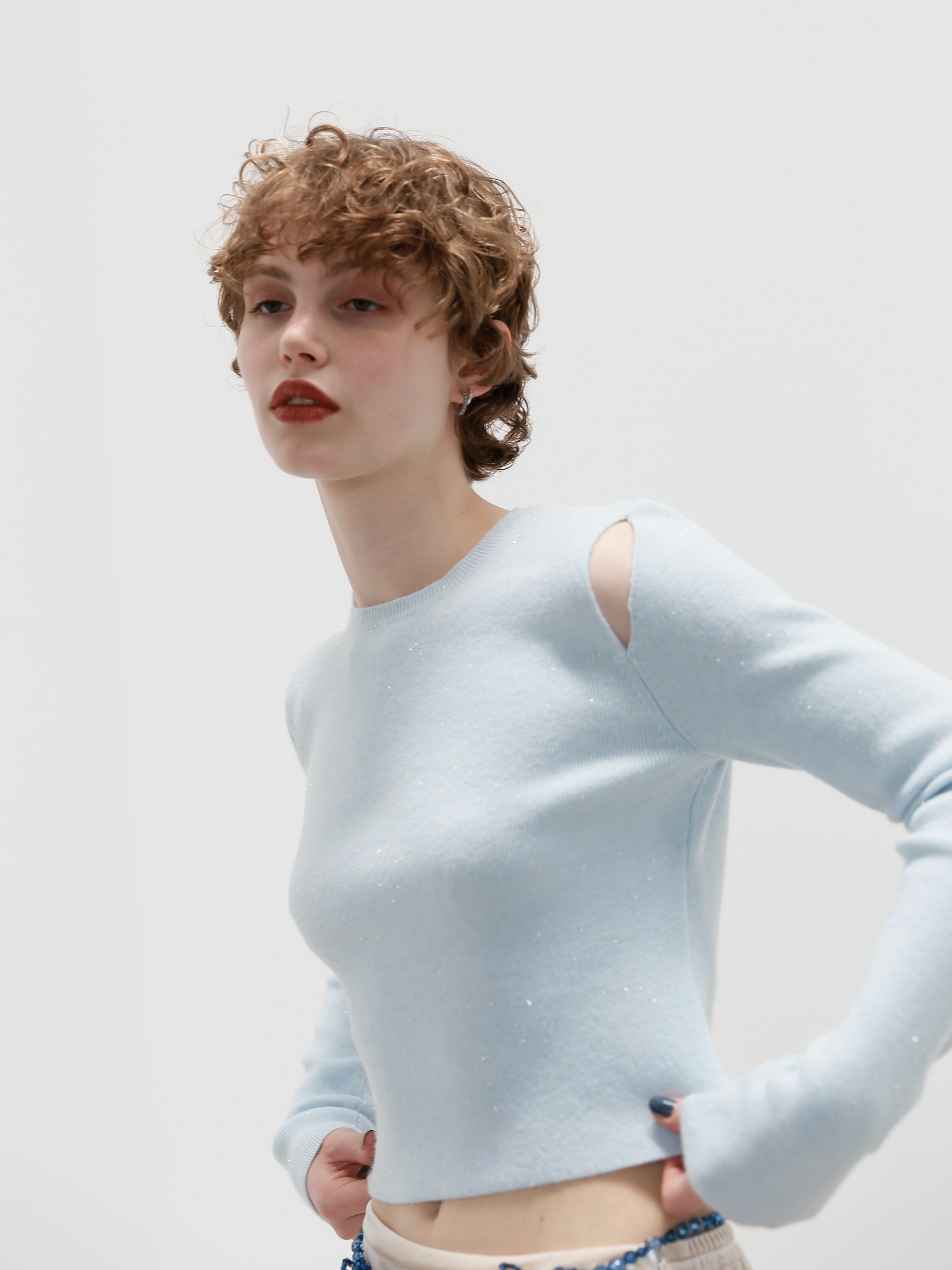 ・blue:冬の澄んだ空気に映える、アイシーなブルー。白みをたっぷり含んだこのブルーは、シルバーラメを忍ばせることで透明感と華やかさを両立。春夏のターコイズやスカイブルーとは異なる、冬だからこそ楽しみたい“雪どけブルー”のような色味。シンプルなデニム合わせで洗練されたカジュアルに、モノトーンの引き締めアイテムとしても活躍します。