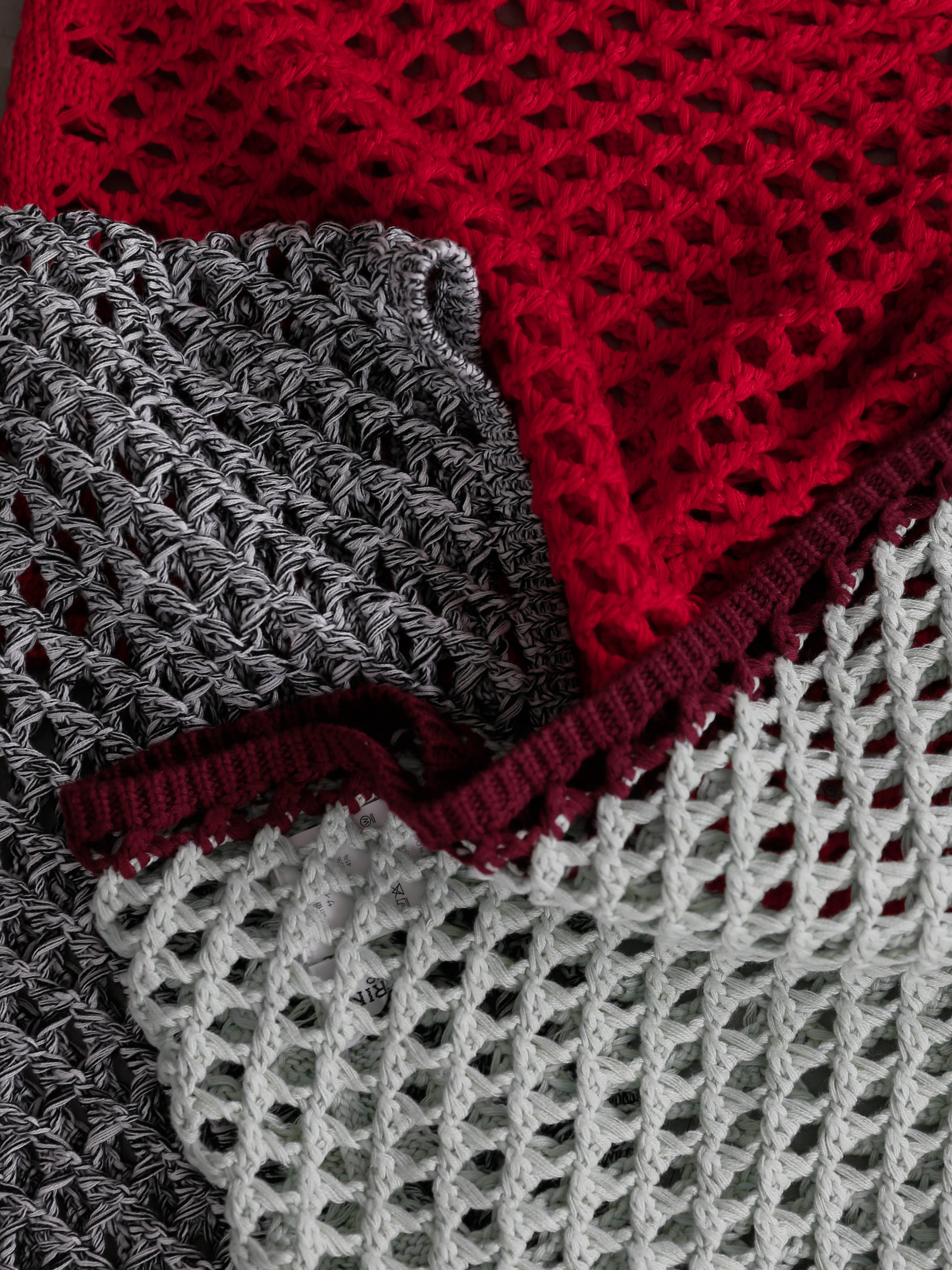 ・red:3色の糸で編み上げた深みのあるレッド。パッと目を引く色味ながら、光沢感や奥行きがあるため、派手すぎず大人に似合う絶妙カラー。赤が苦手な方にもおすすめです。