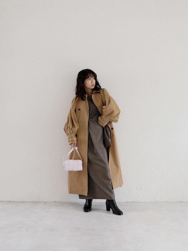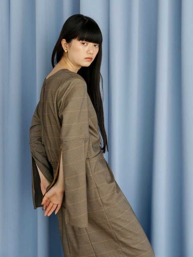 ・check-ivory:アイボリー地にブラウンとラベンダーのチェックがKatrin TOKYOらしい一色。着るだけで気分を高めてくれる一着になること間違いなしです。