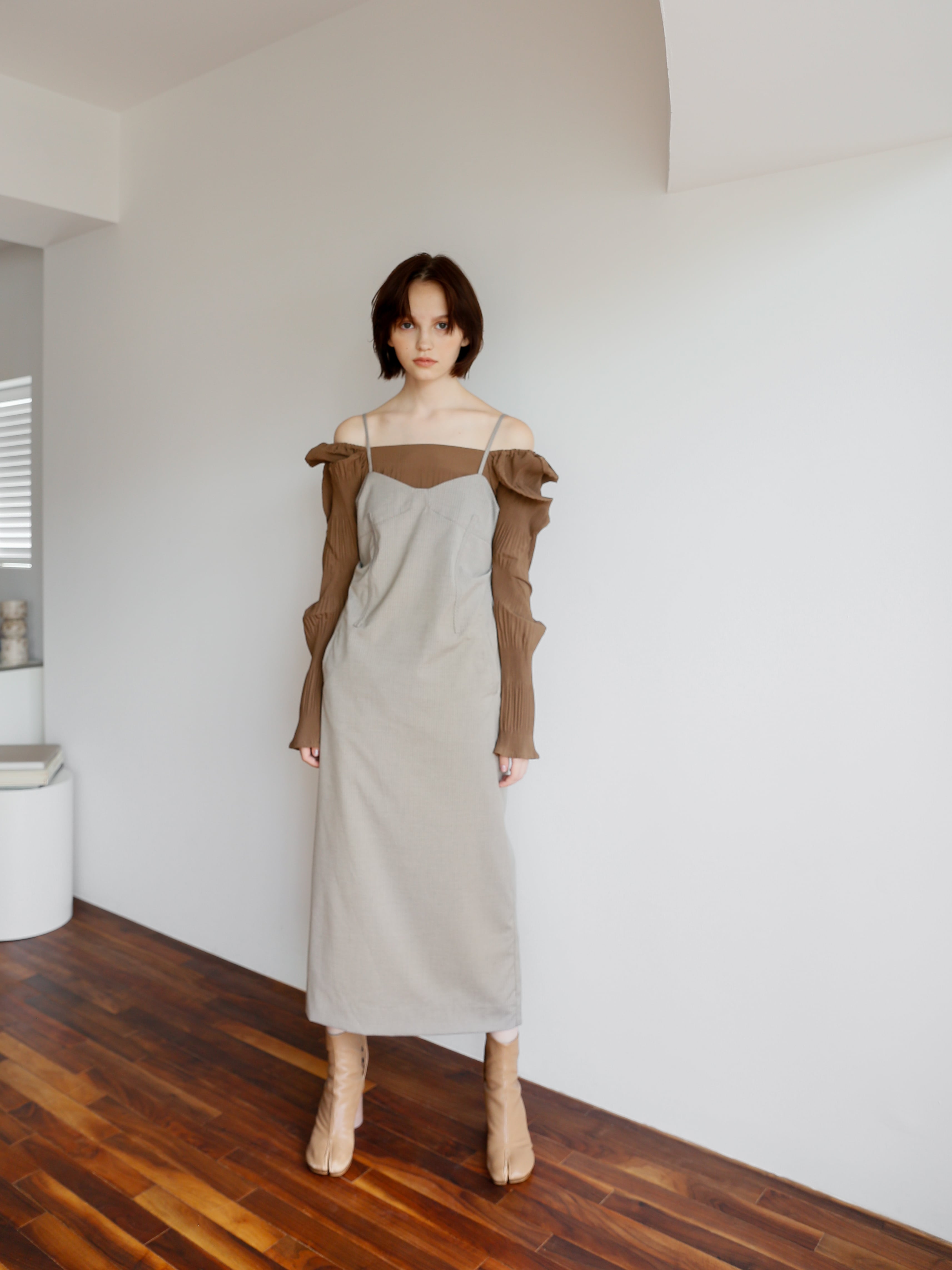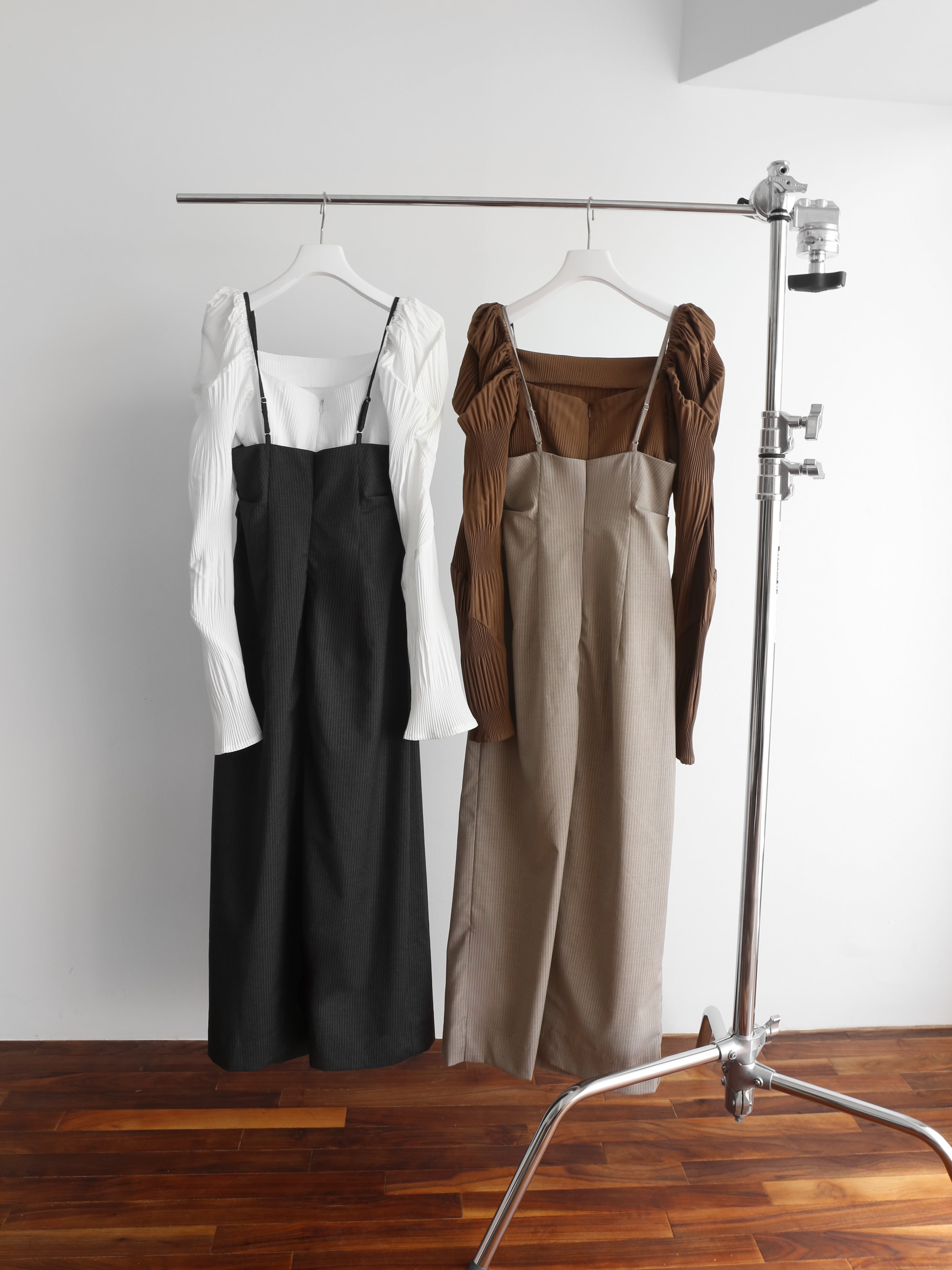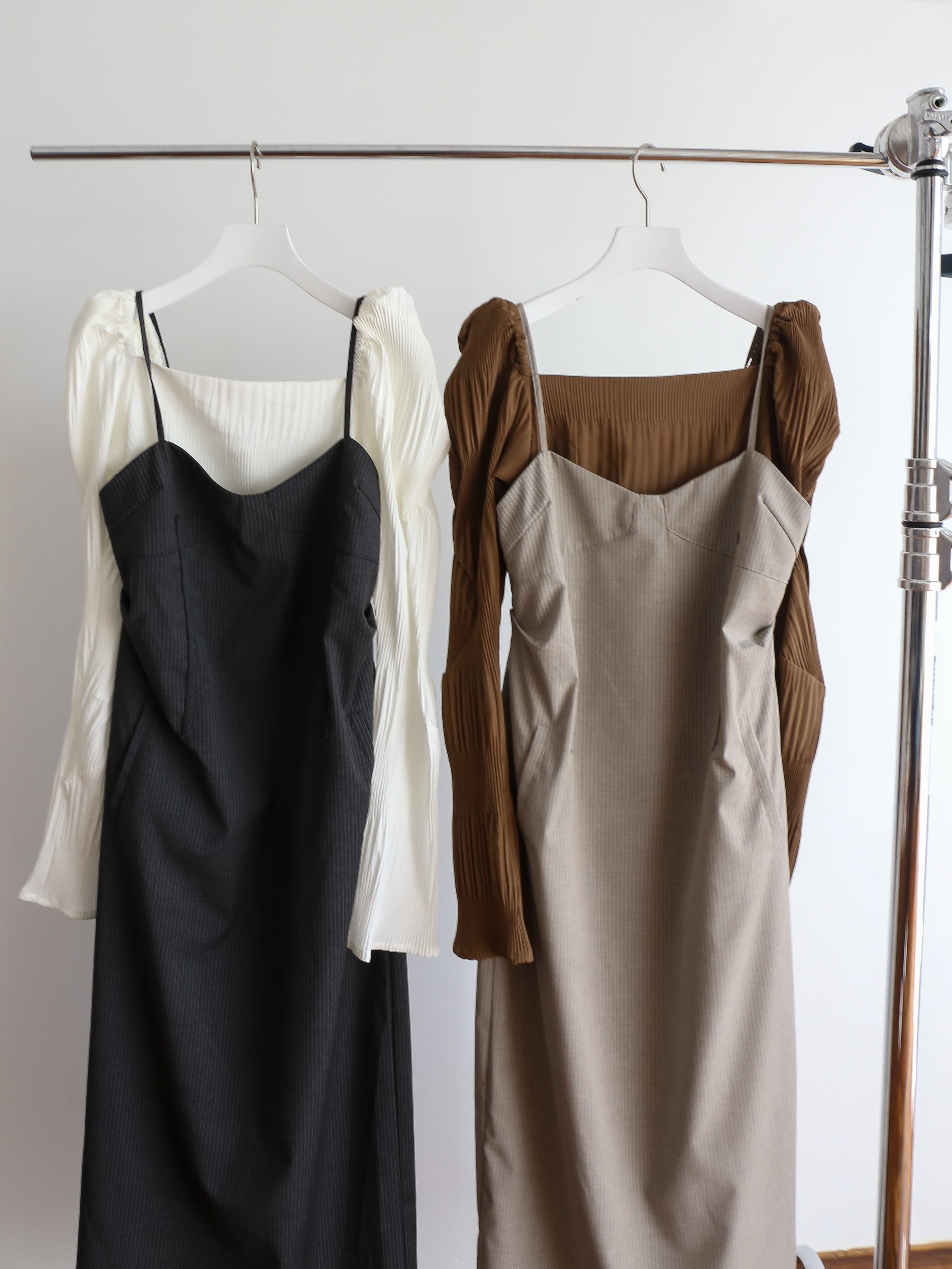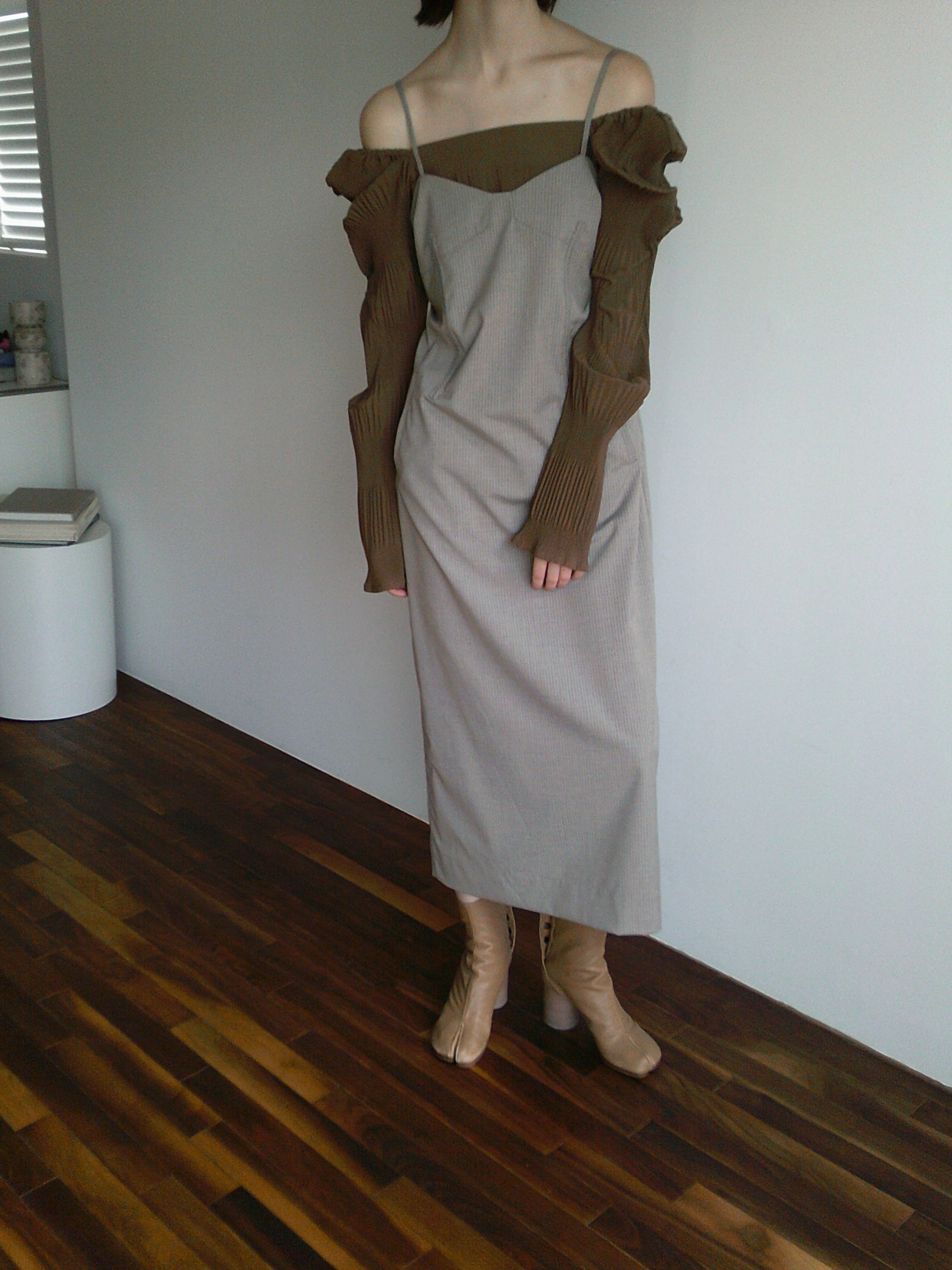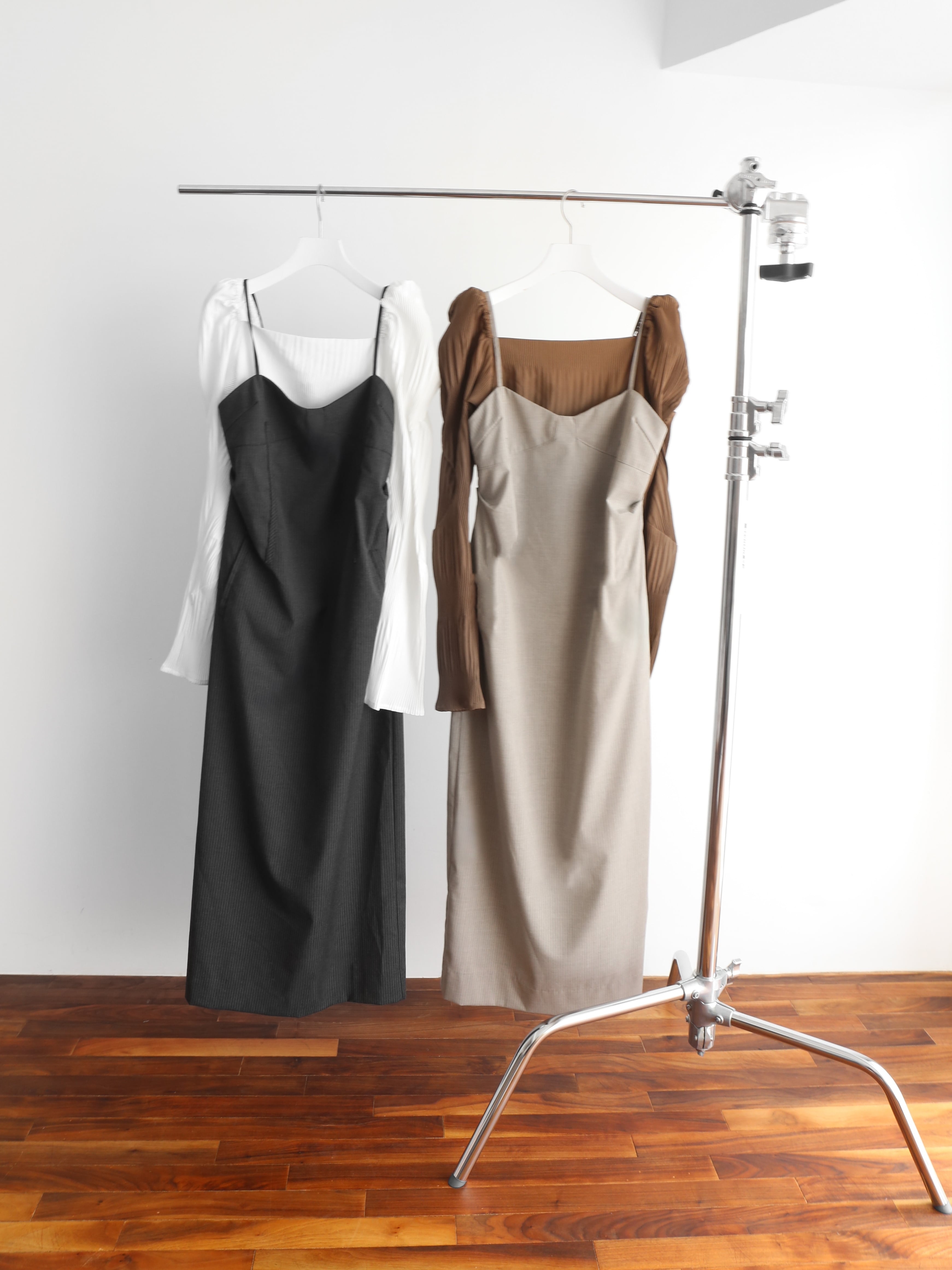キャミワンピースとトップスのレイヤード風ワンピース