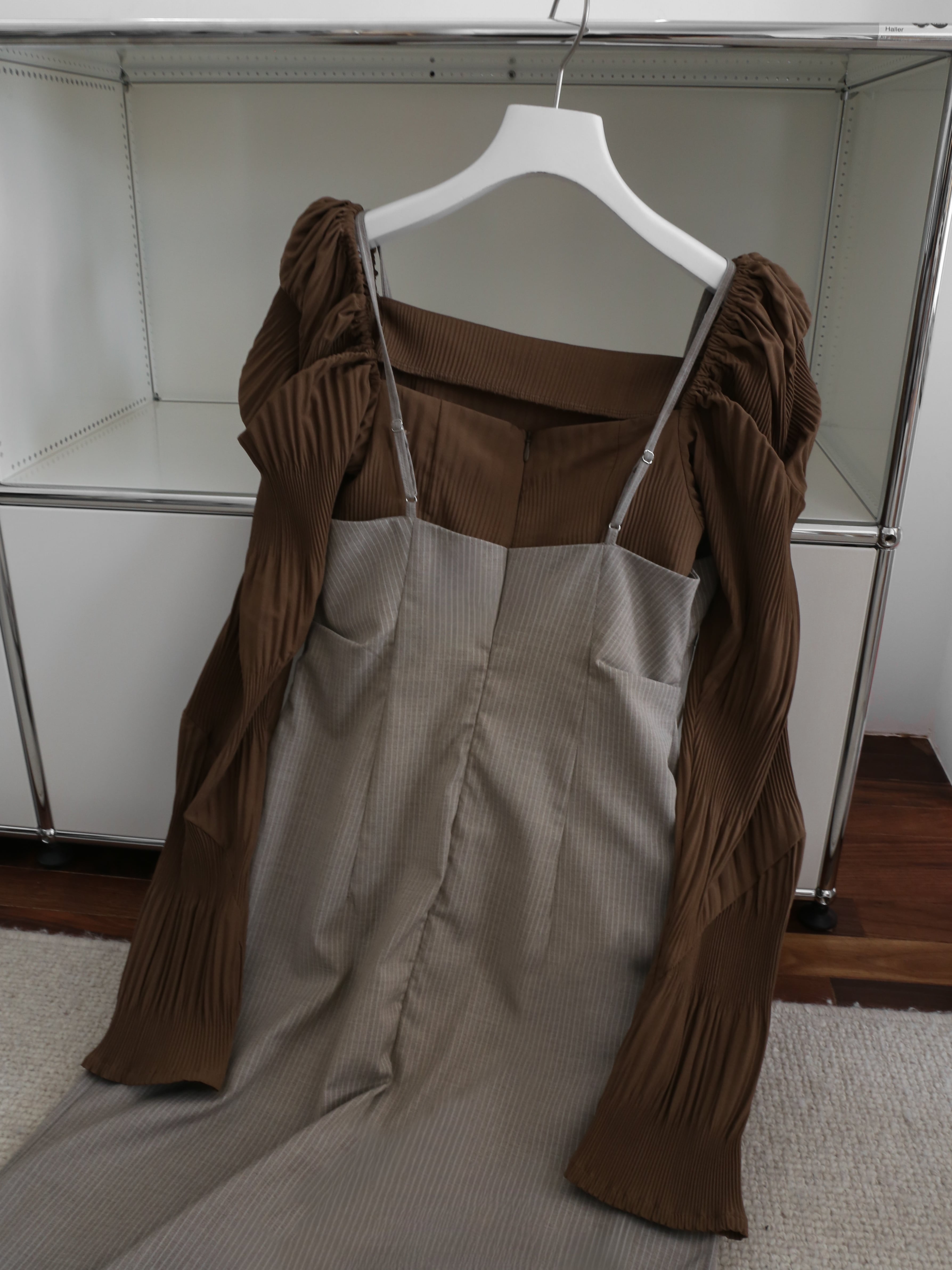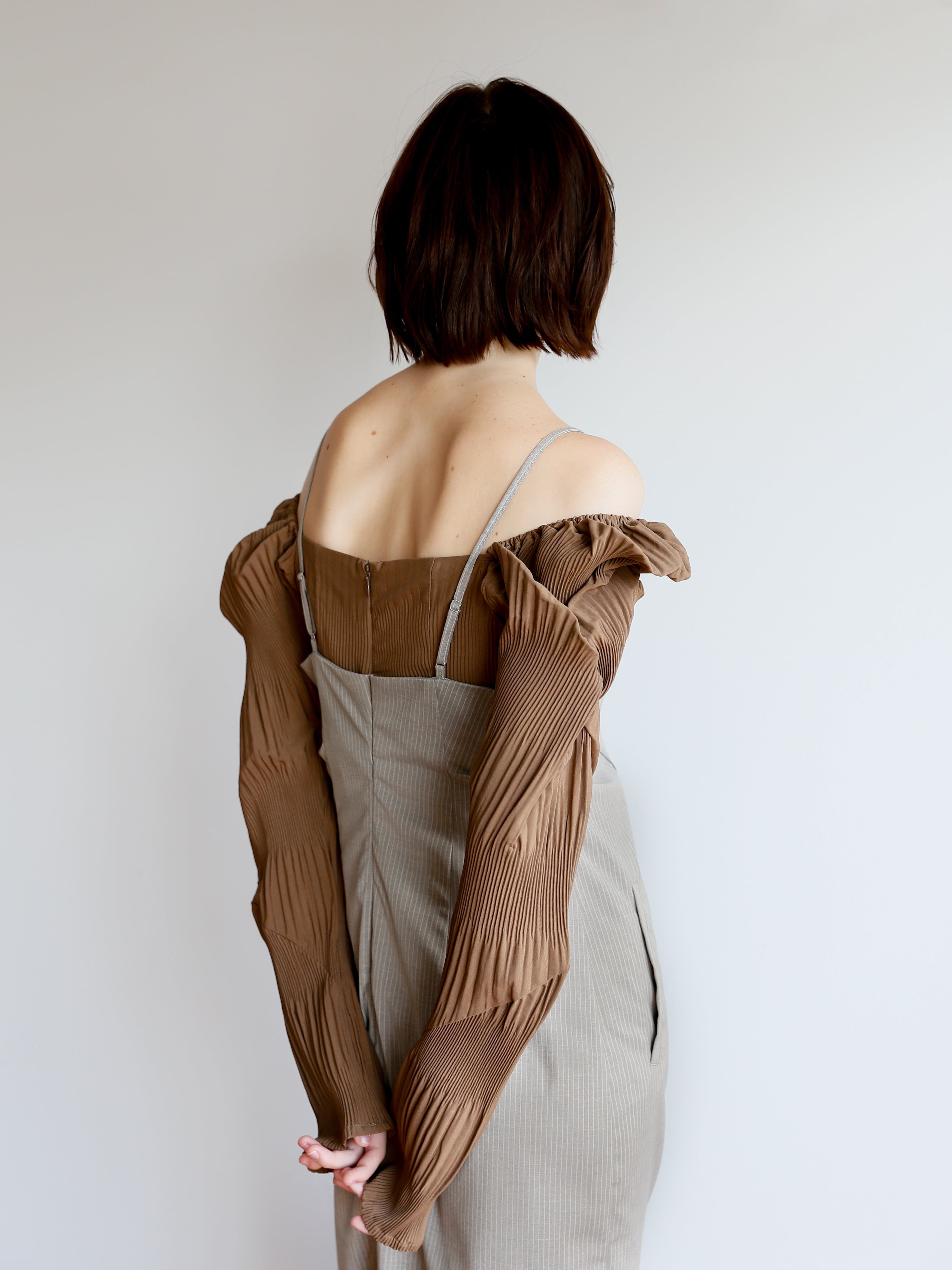 腕部分のデザインはもともと平な生地にプリーツ加工を施しているため