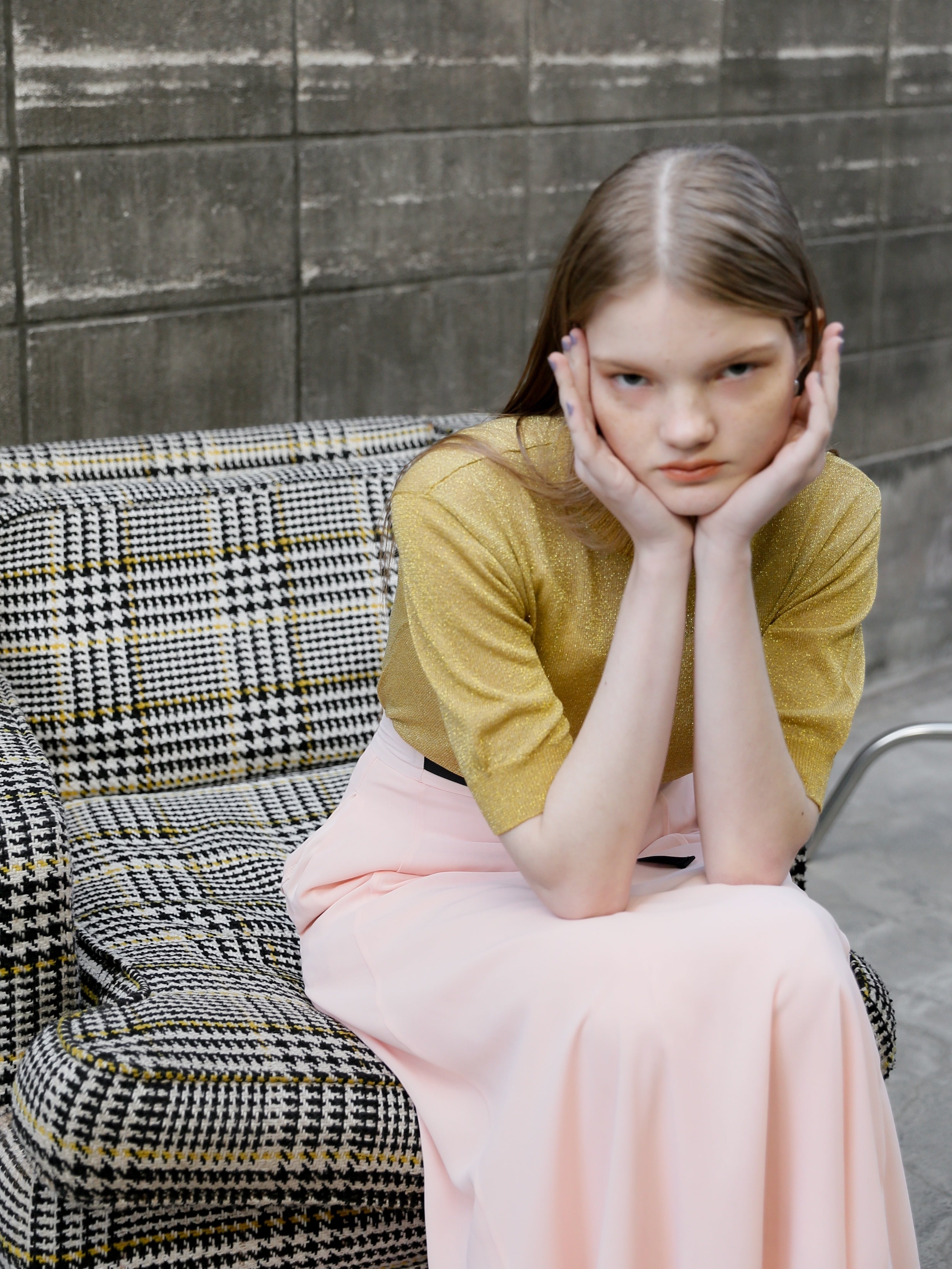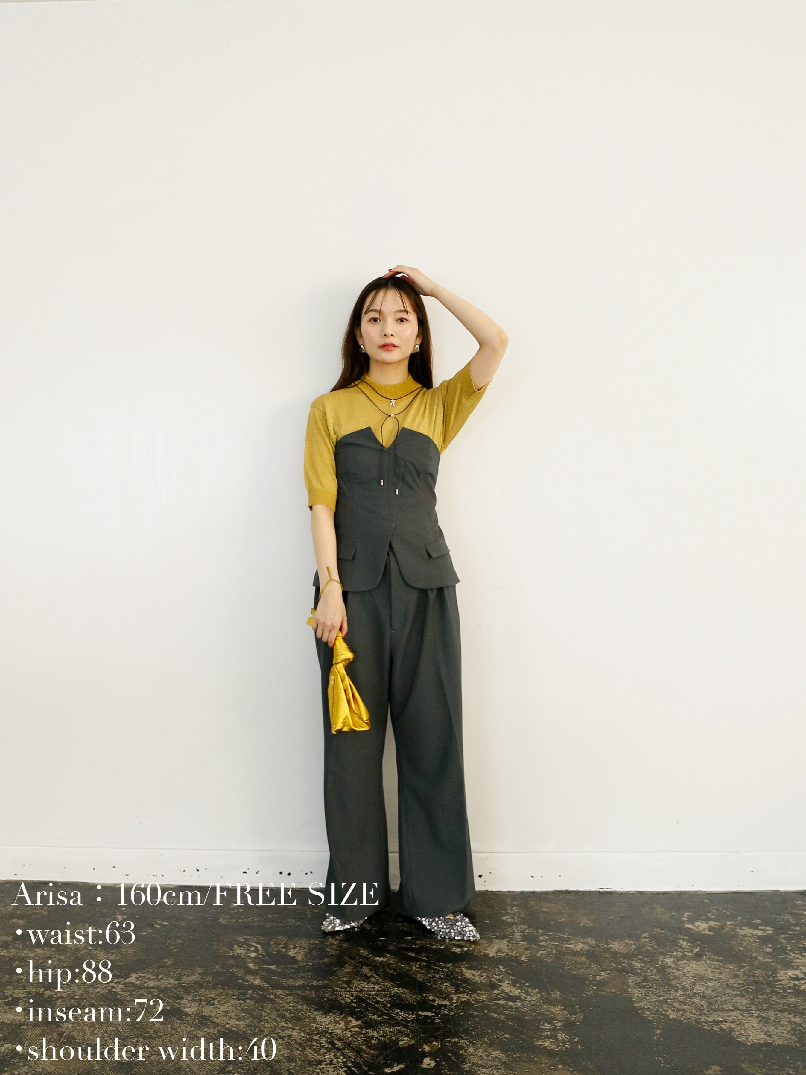 ・gold:goldは綺麗目なシャンパンゴールドではなく、THEゴールドの色みになるよう、使用する糸にこだわったカラー。グレーのスラックスと合わせればモードなスタイリングが楽しめそう。