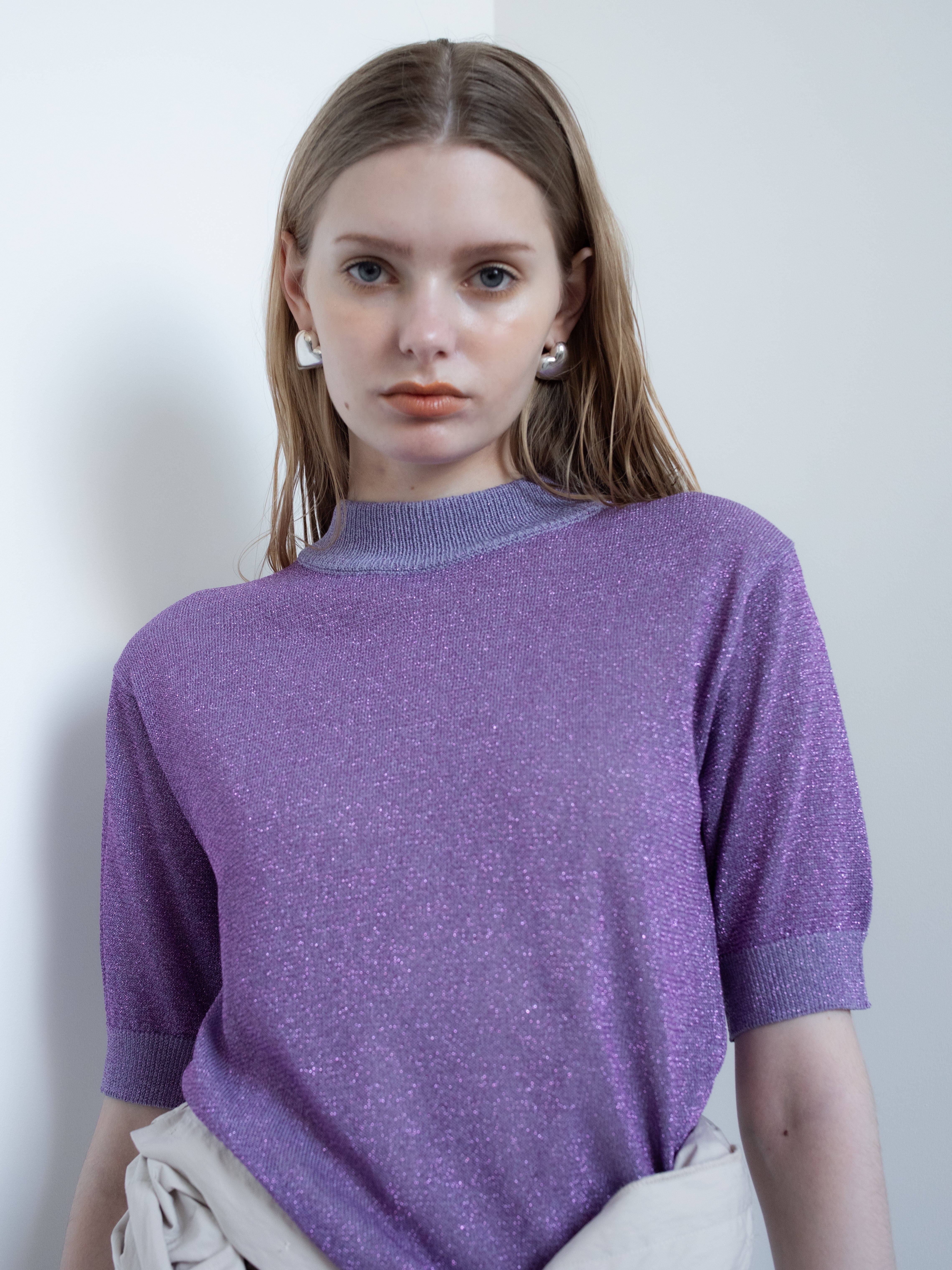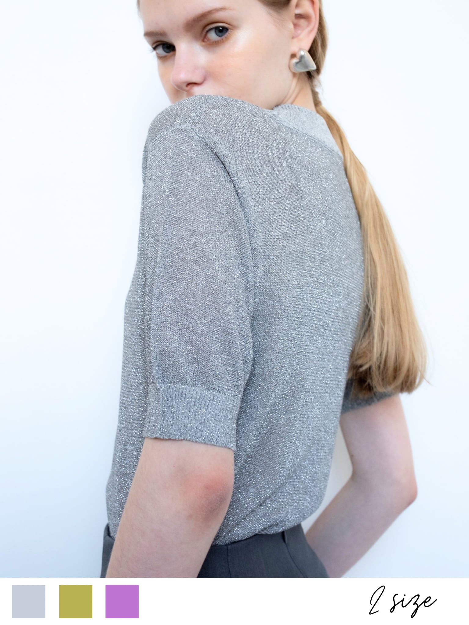 シアーなサマーニットにプラスしたのは、同じくトレンドのラメ