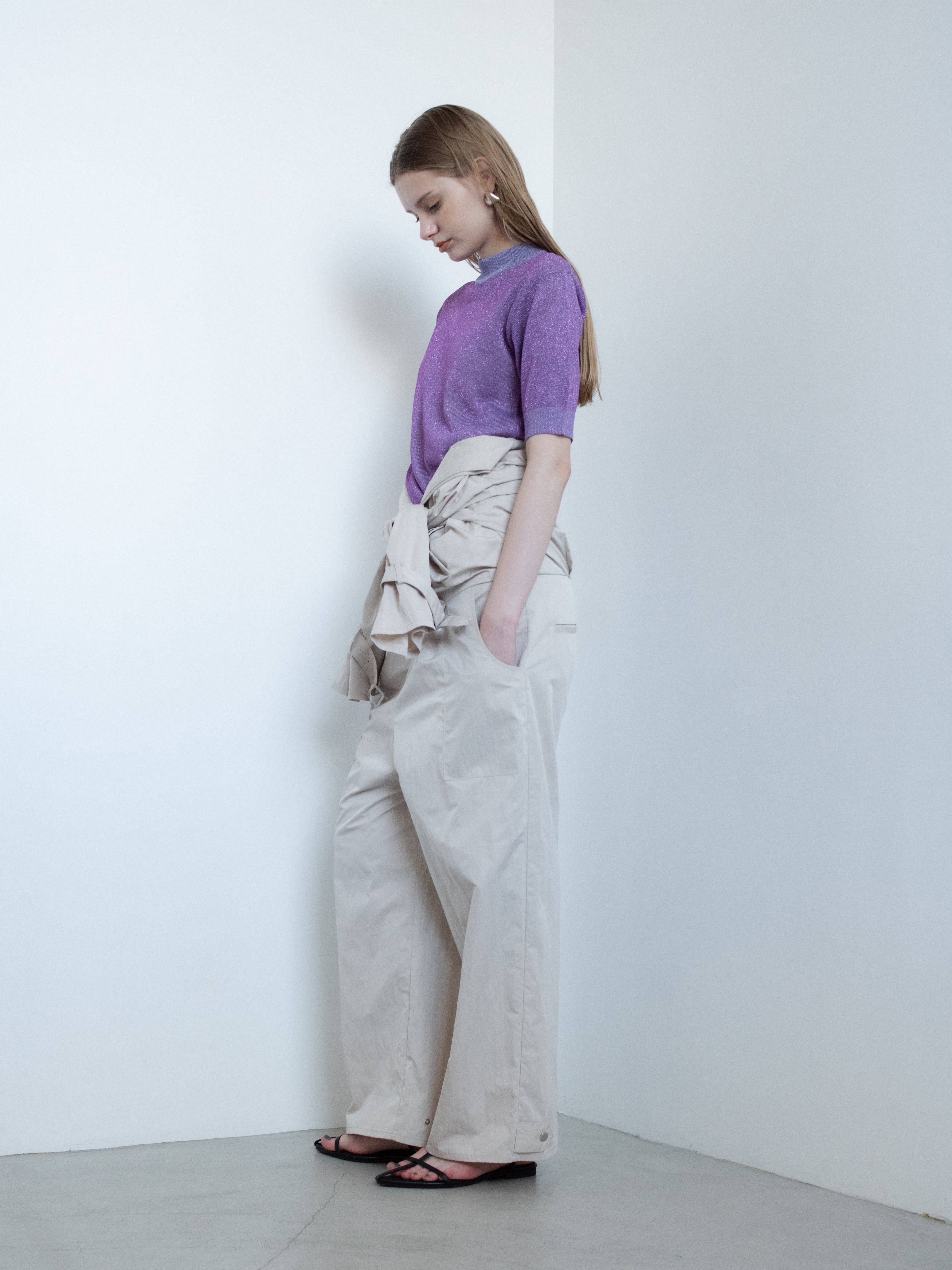 首元や袖口、裾のリブは2重に仕上げることで、内側にラメが混じらず