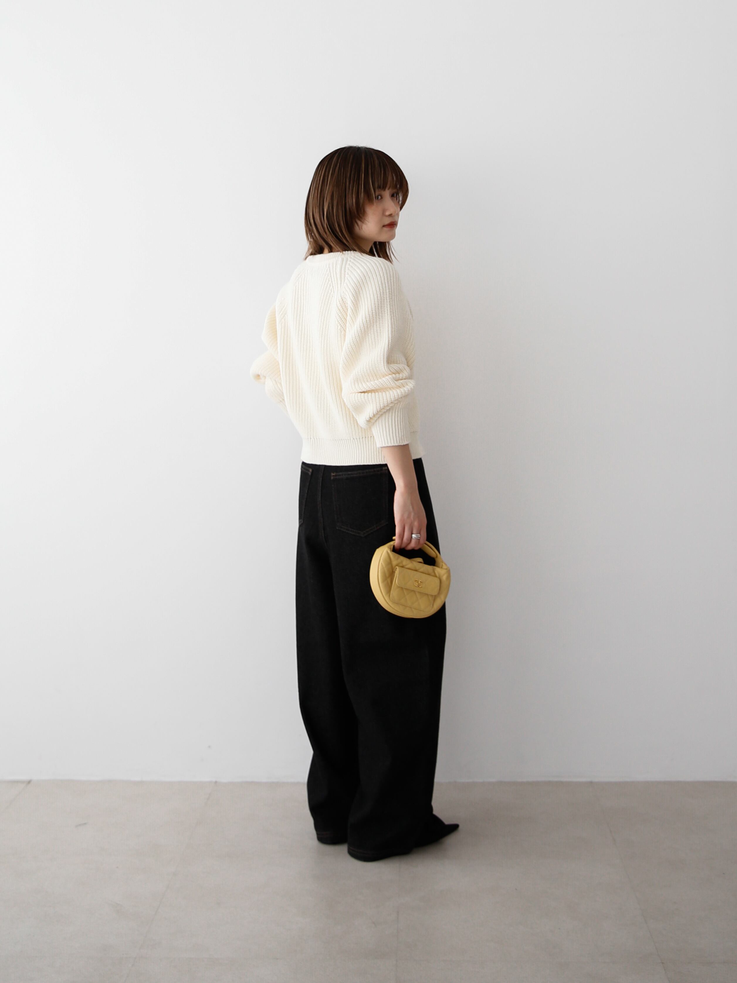 ・ivory:ミルクを溶かしたような柔らかなアイボリー。真っ白すぎないニュアンスがありながらも、合わせやすさは抜群。カラーアイテムとの相性もよく、スタイリングの幅を広げてくれる。