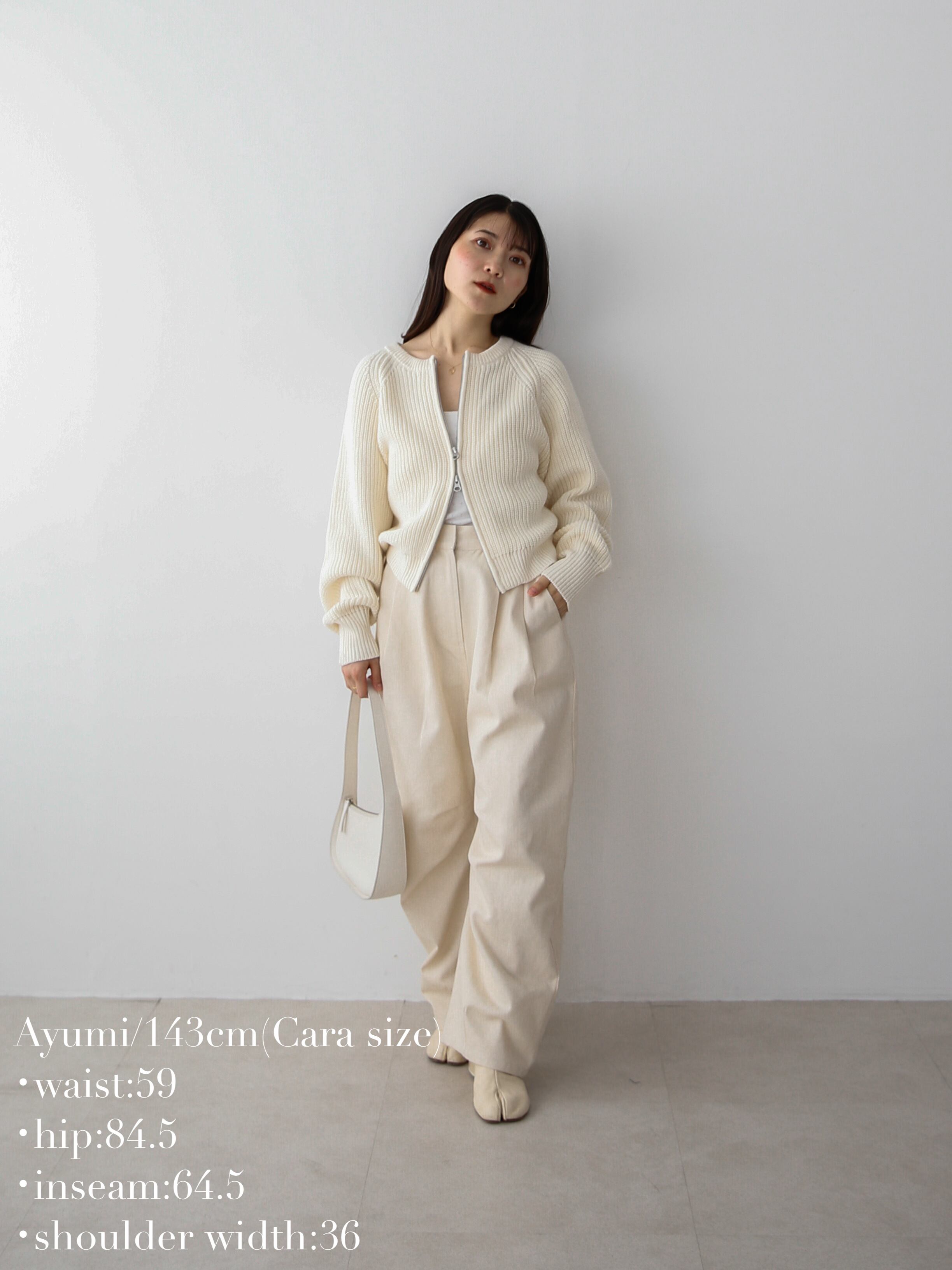 秋の気配を纏う、ジップアップニットカーデ