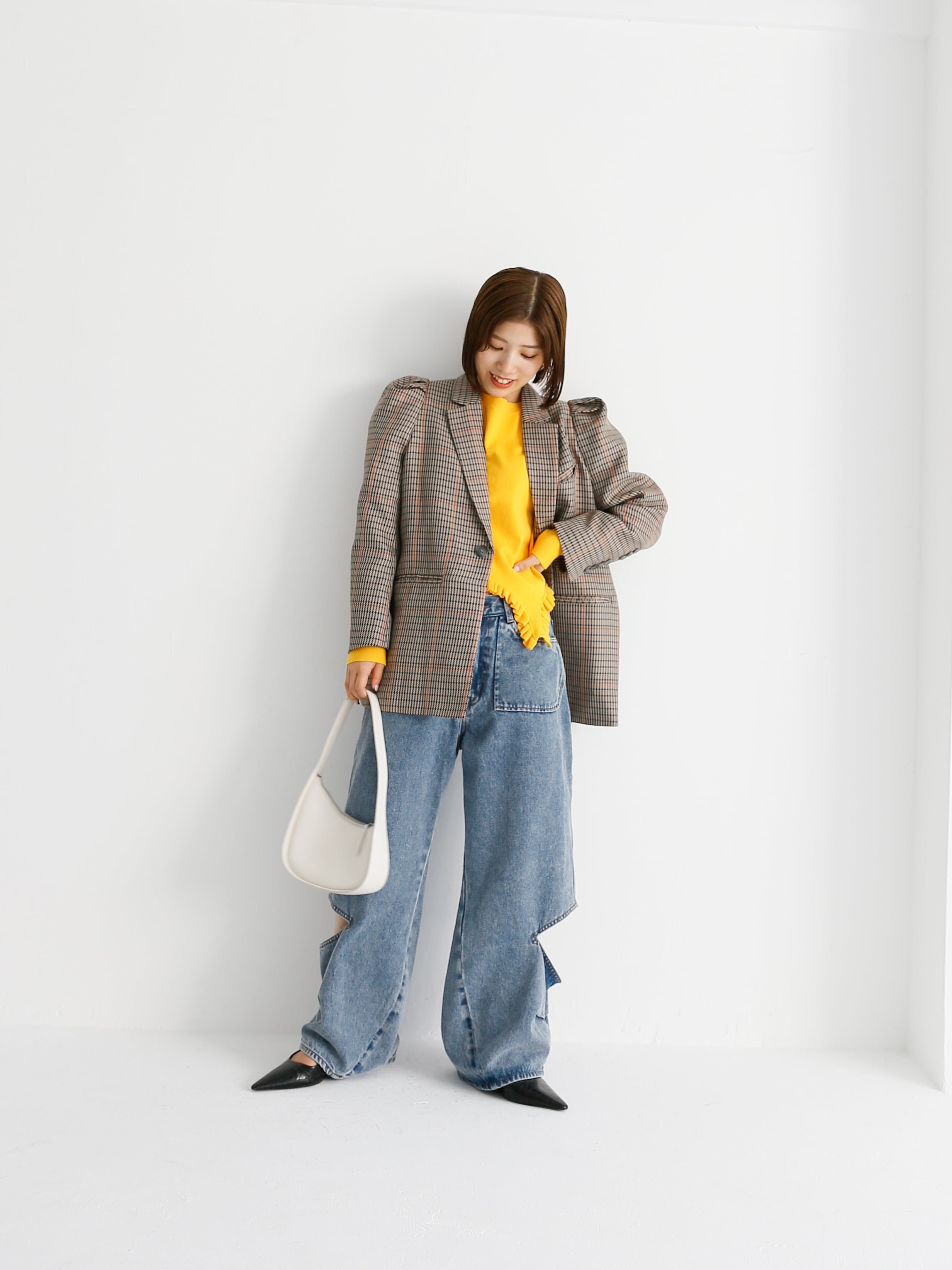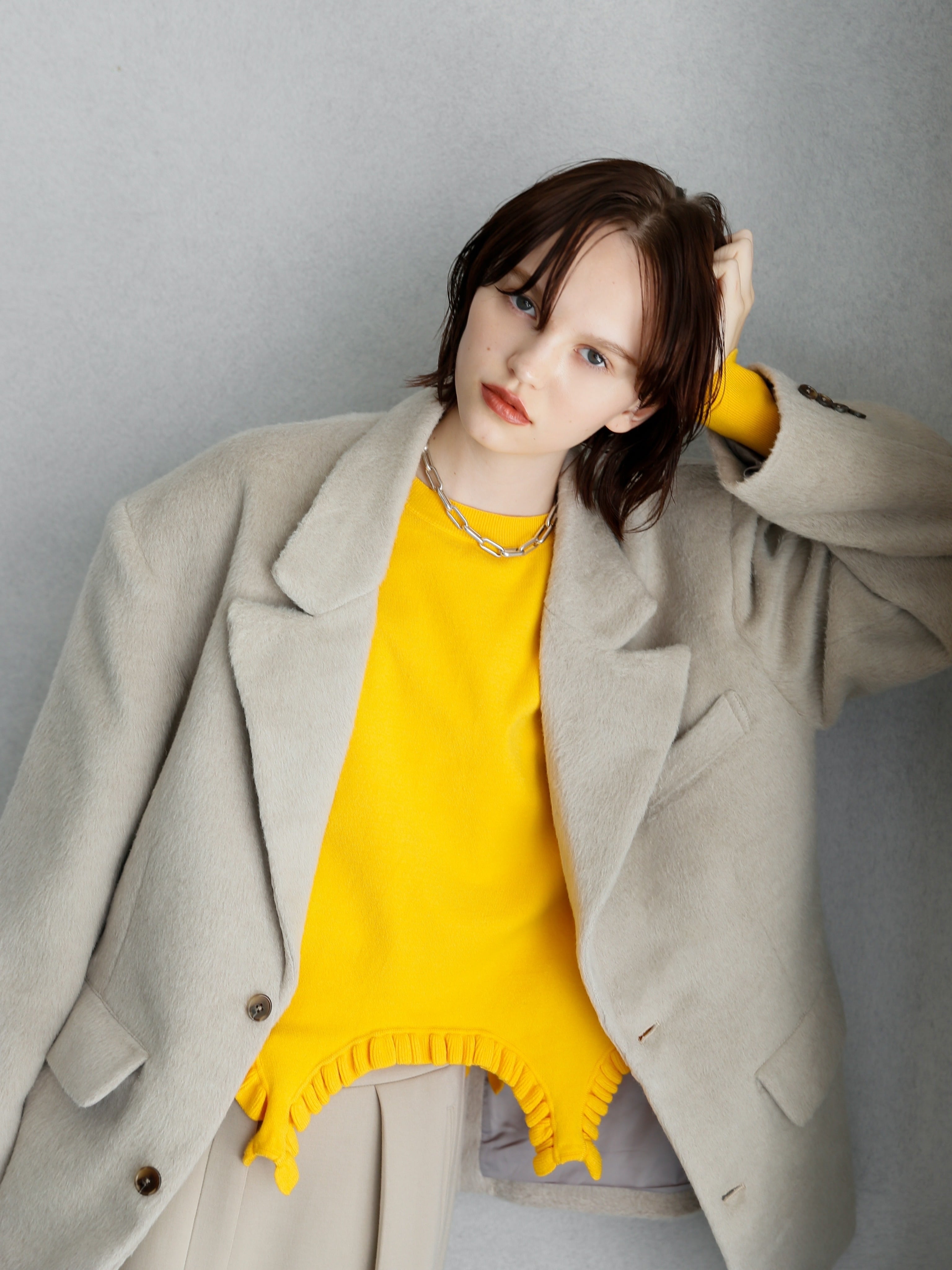 yellow:肌に馴染みやすい秋っぽいイエローカラーは、スタイリングの主役になること間違いなし。ダークトーンのアウターからチラ見せしても◎