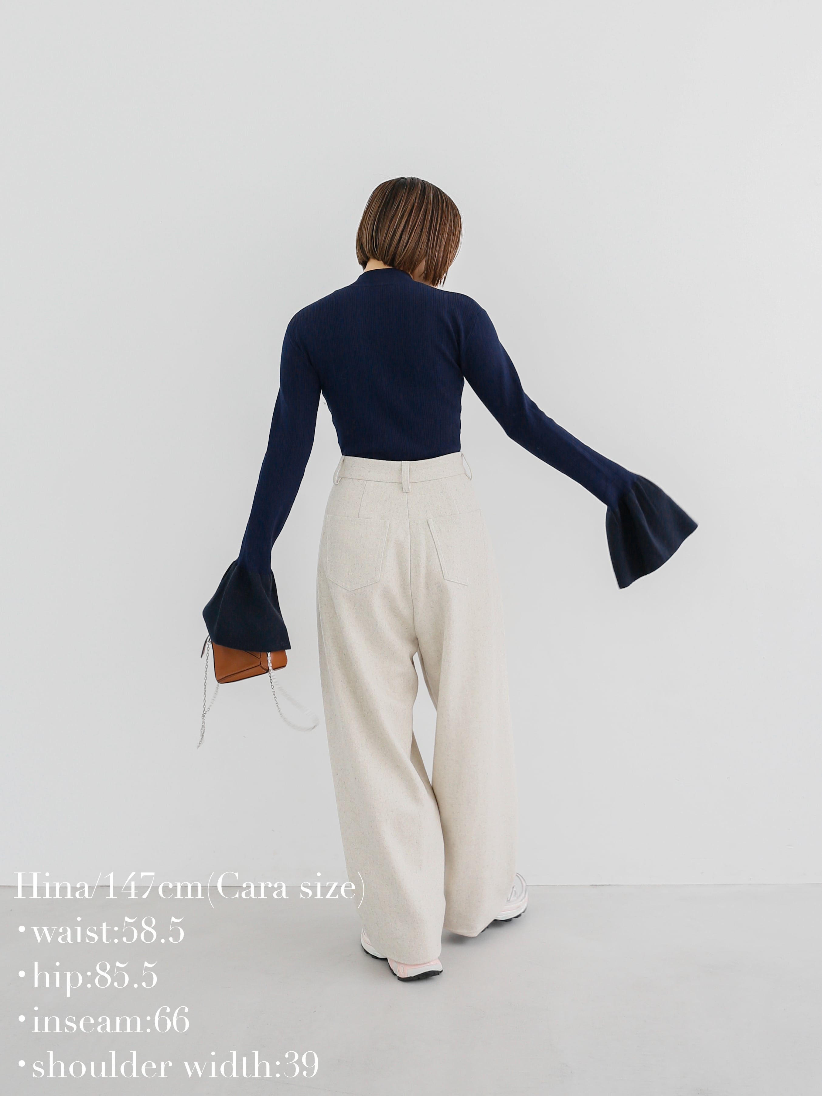 モチモチと肌触りの良いニットは厚手すぎず、秋の立ち上がりにぴったりな着心地です