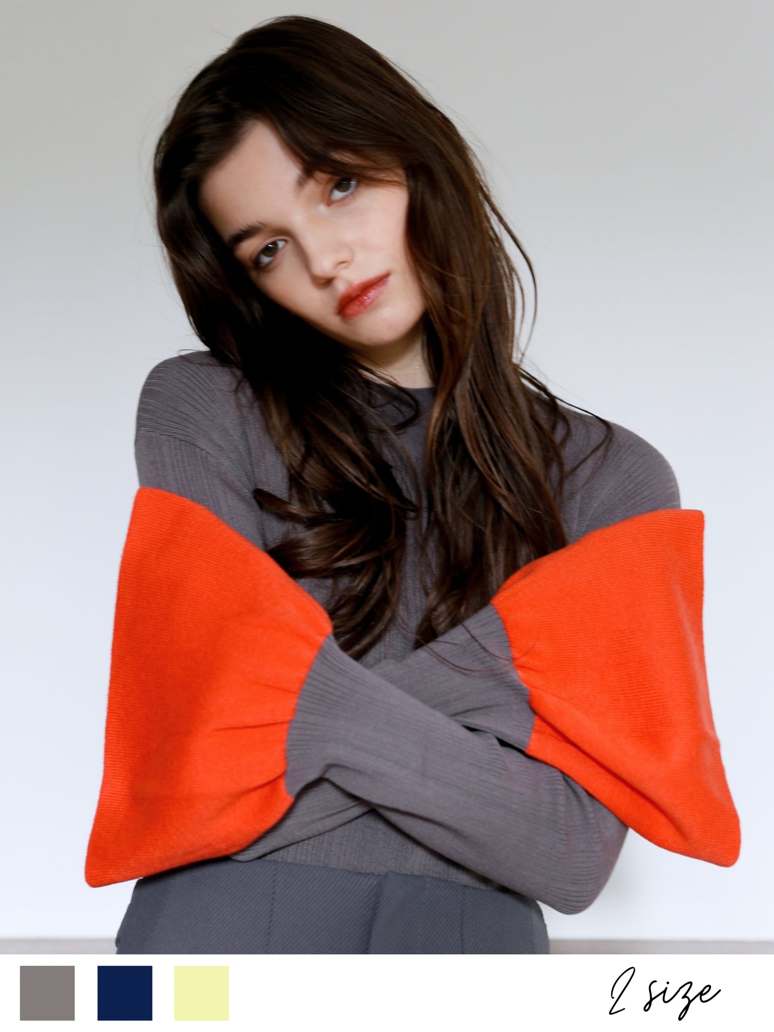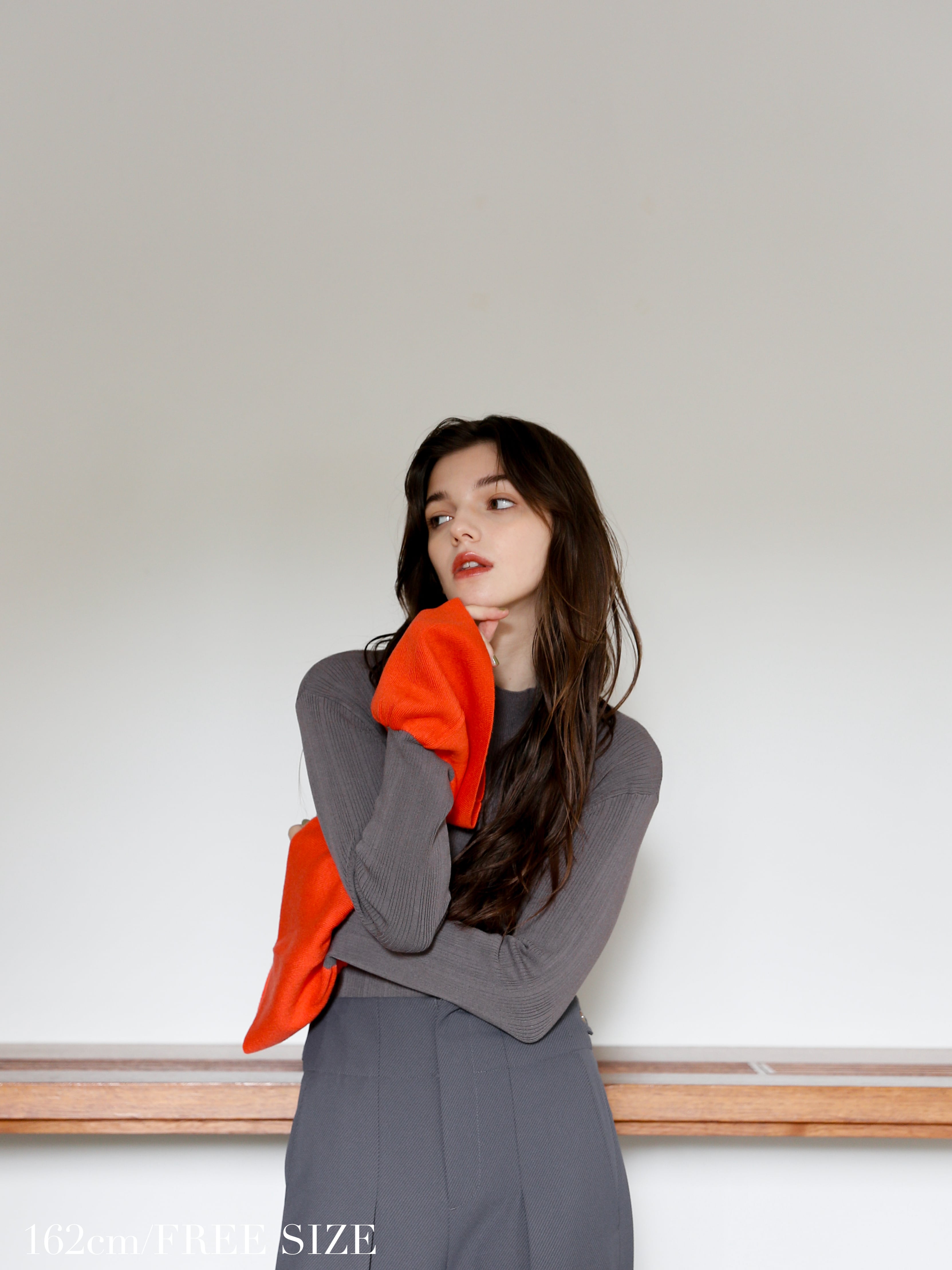 ・gray:1番バイカラー感がわかりやすいのがこちら。大人グレーに袖先は目を惹くオレンジレッド。ジャケットやコートの袖から見せるとコーデがより一層オシャレに。