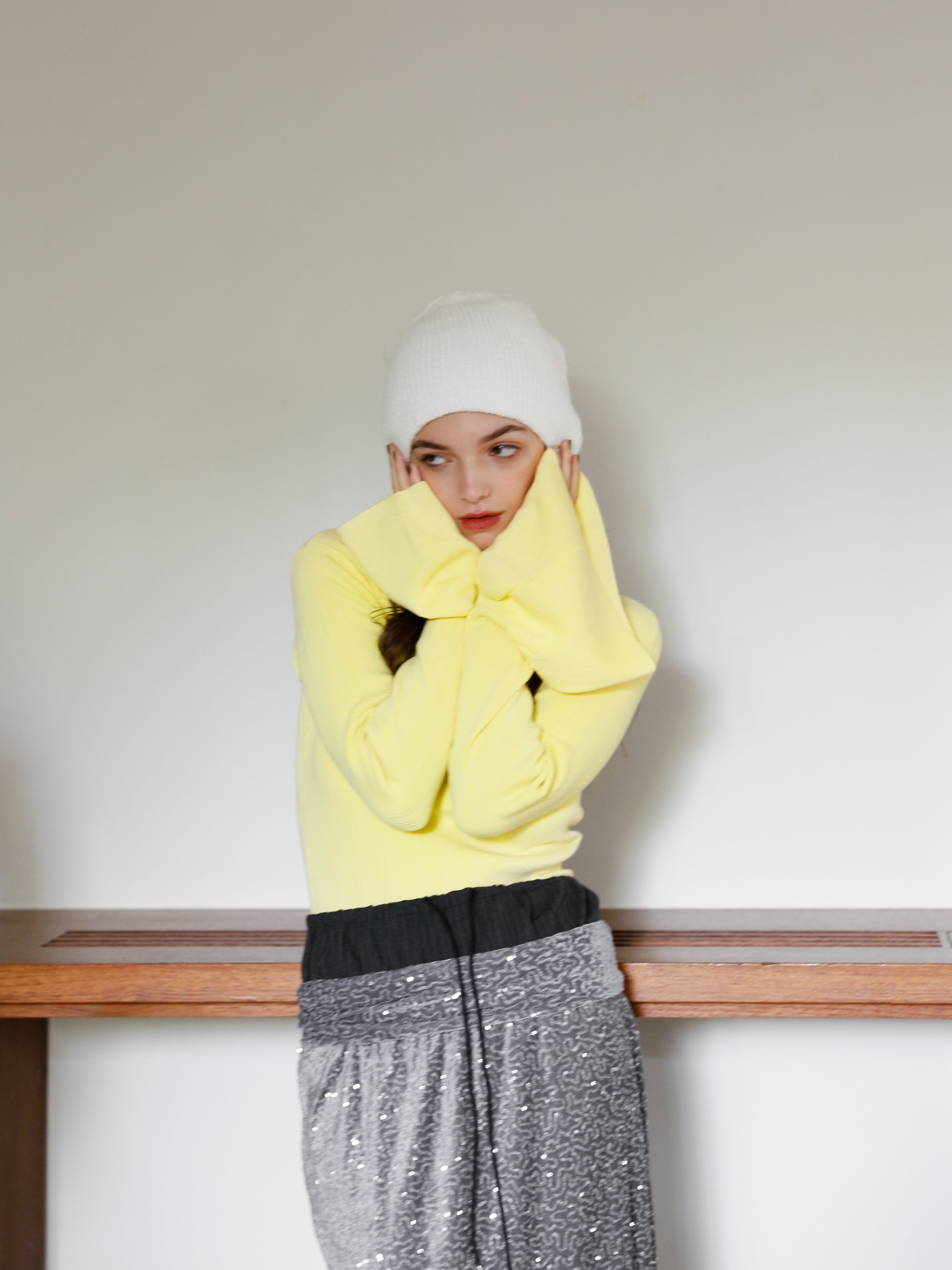 ・lemon:あえて冬にビタミンカラーを取り入れたいという想いから作られたKatrin らしいカラー。シルエットが綺麗めなので、lemonというクリアな色を持ってきても大人っぽく着られます。