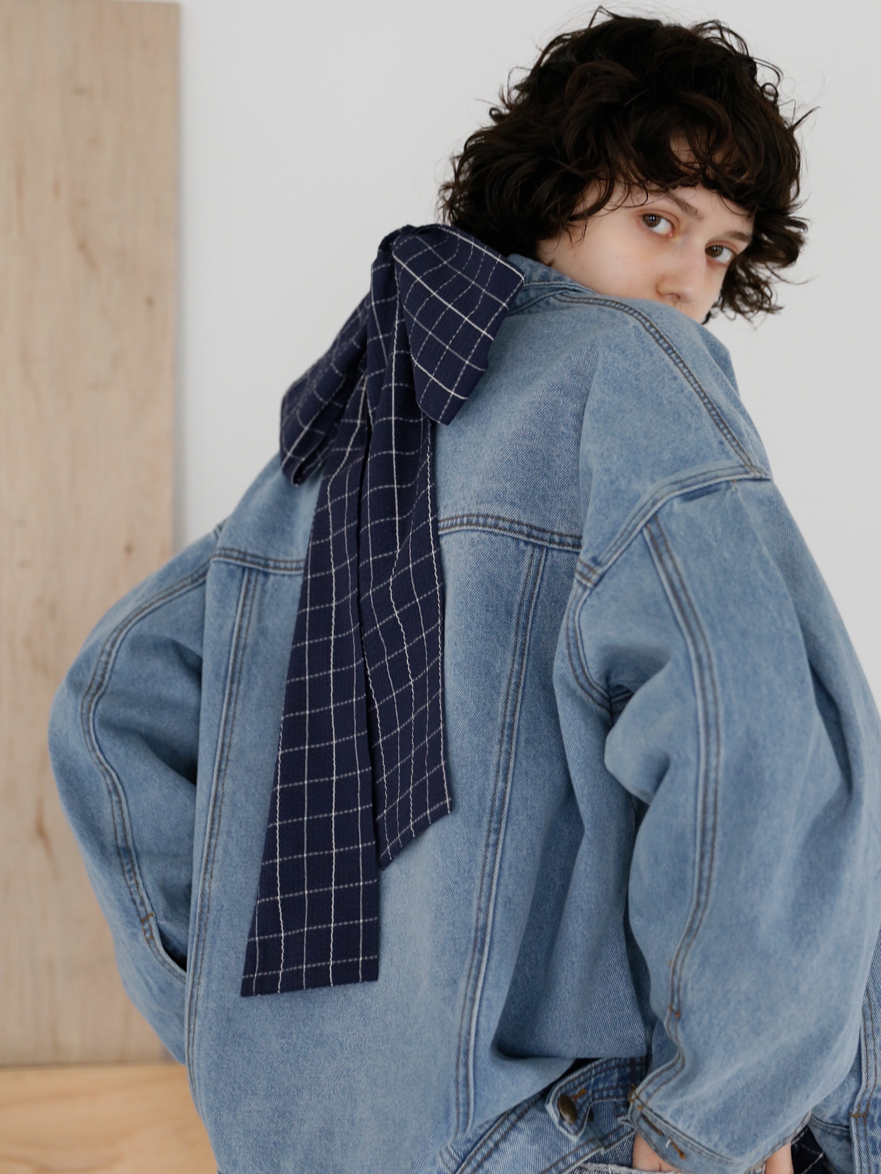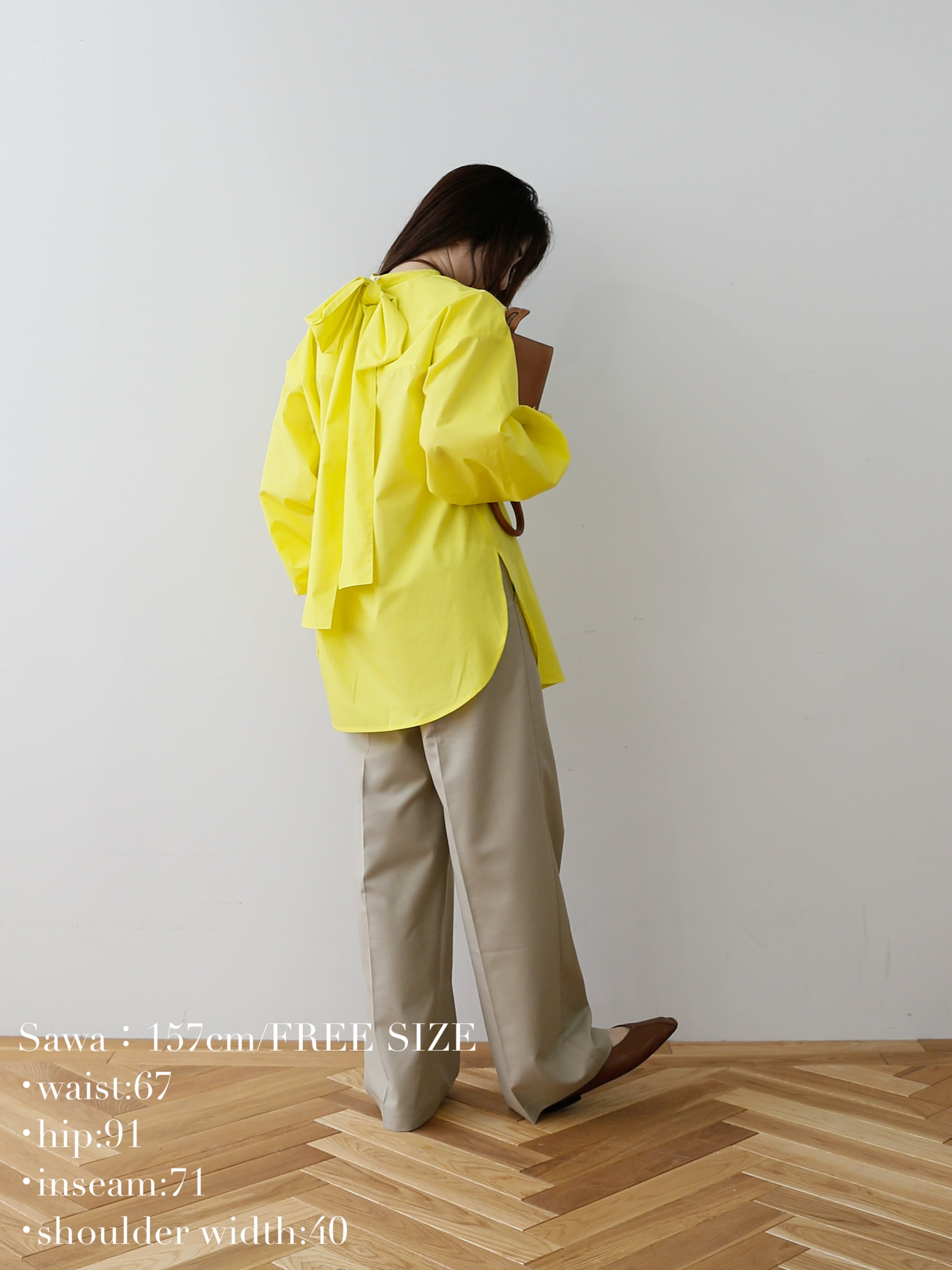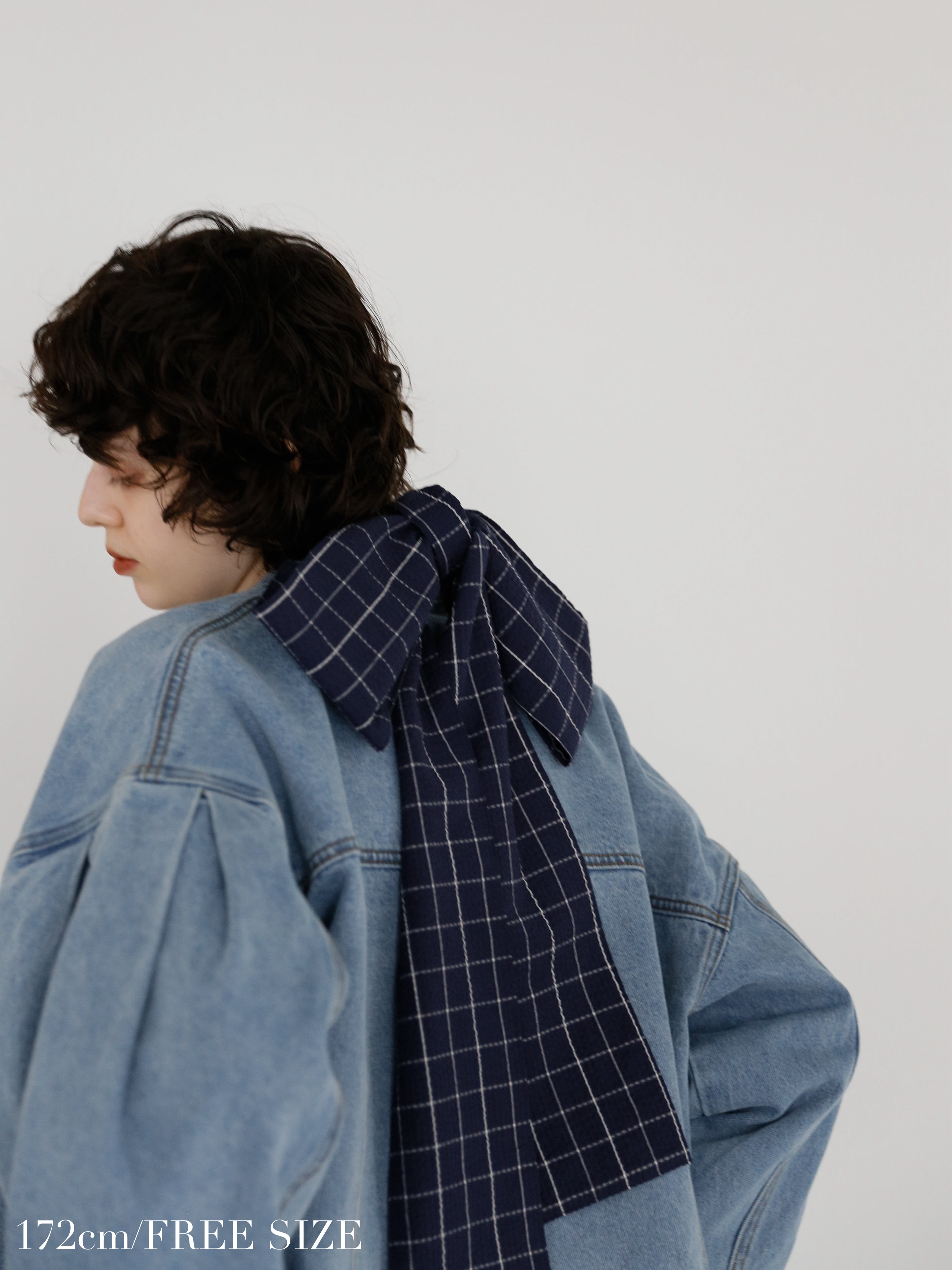 首元で結んでガーリーに着ても、垂らして縦を強調しても