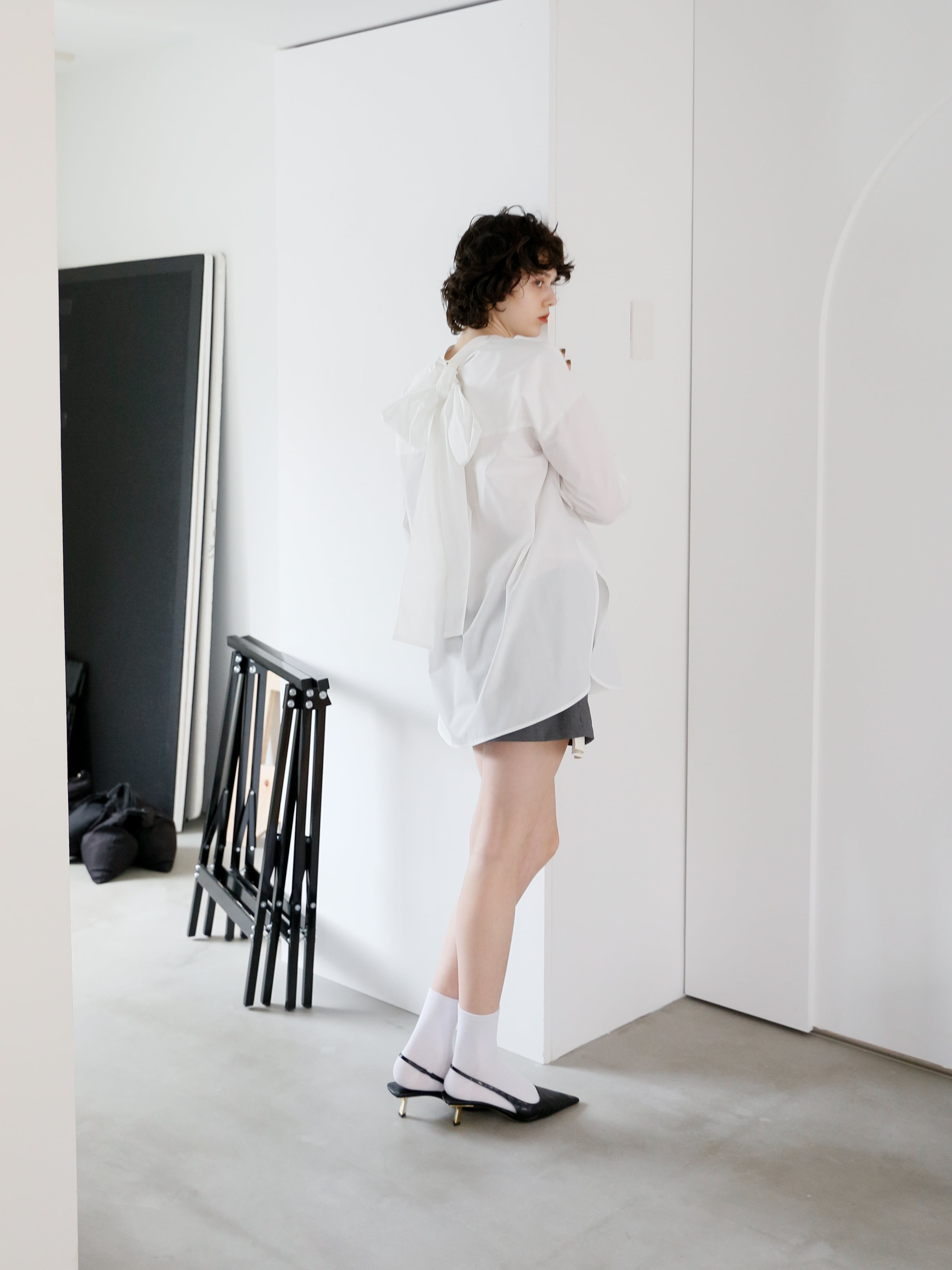 [B品]2way big ribbon blouse