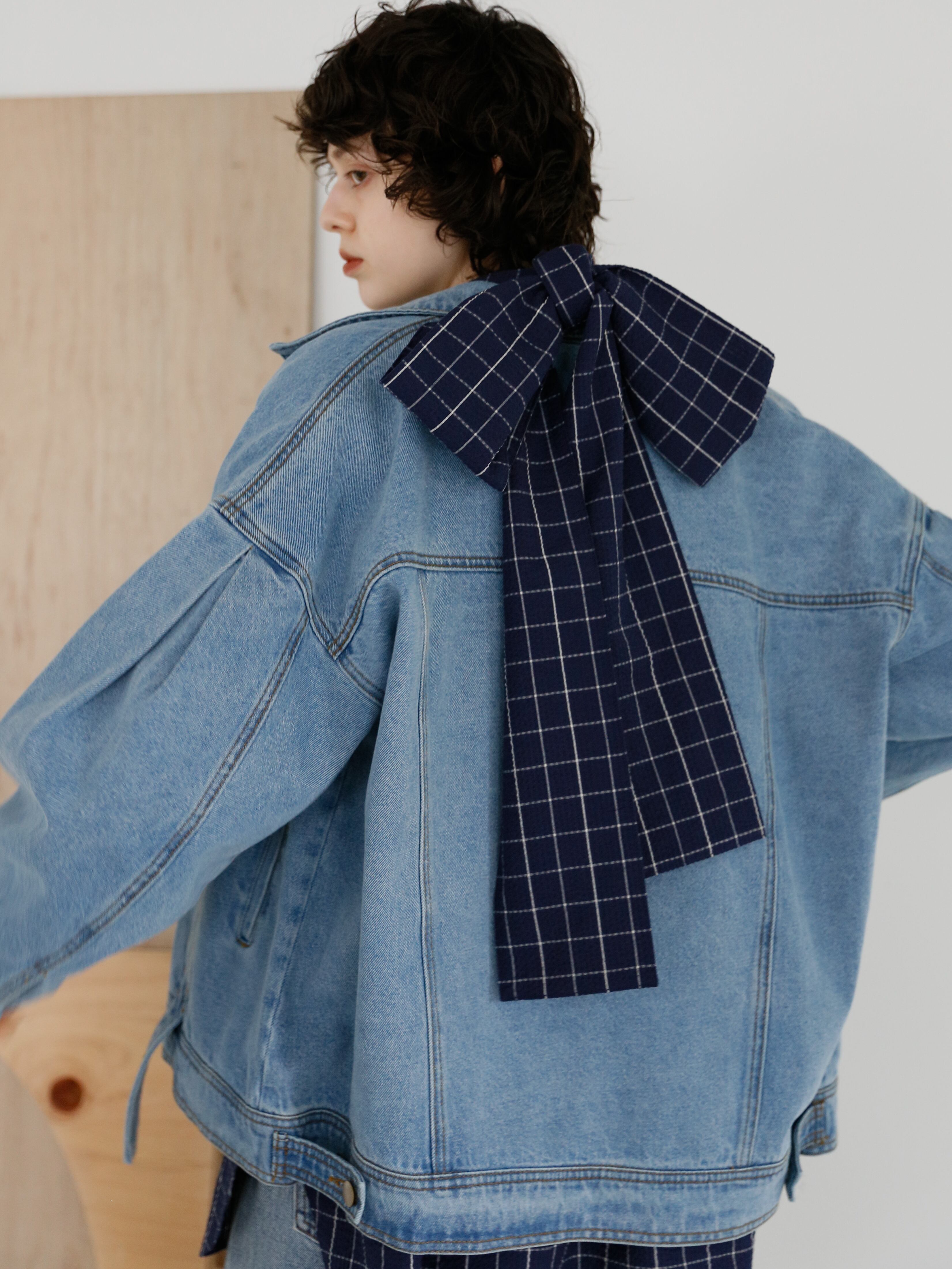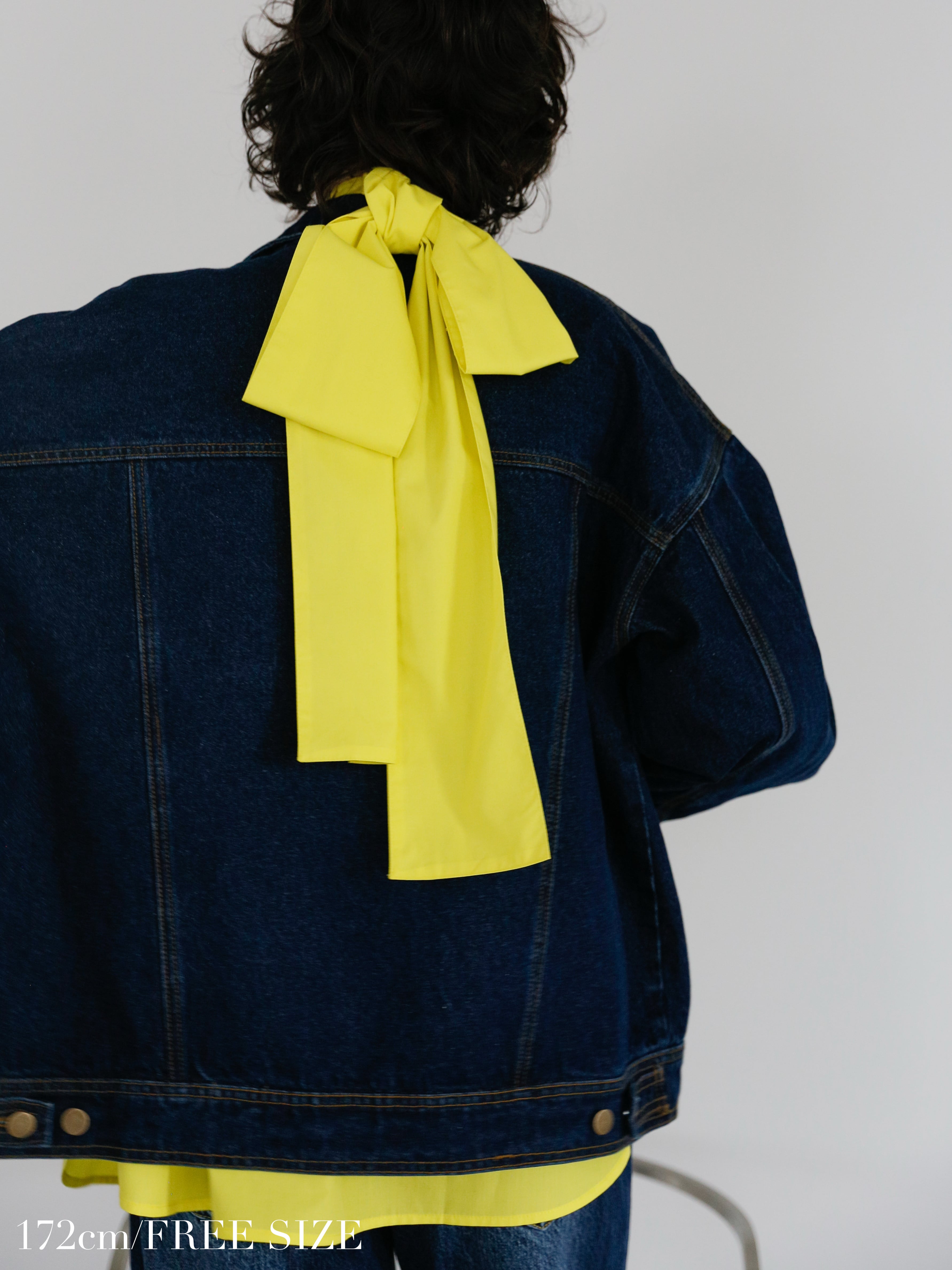 首元で結んでガーリーに着ても、垂らして縦を強調しても