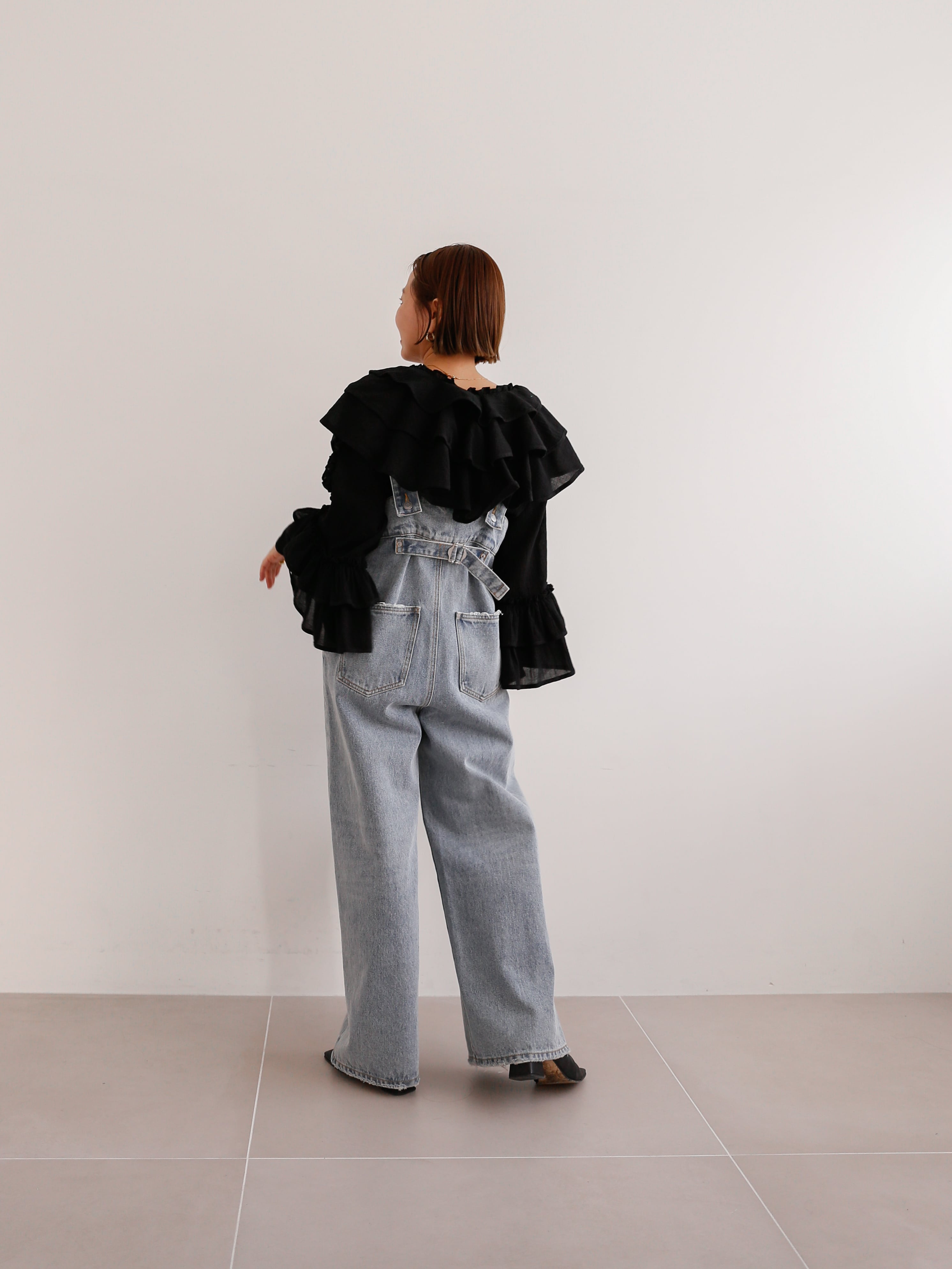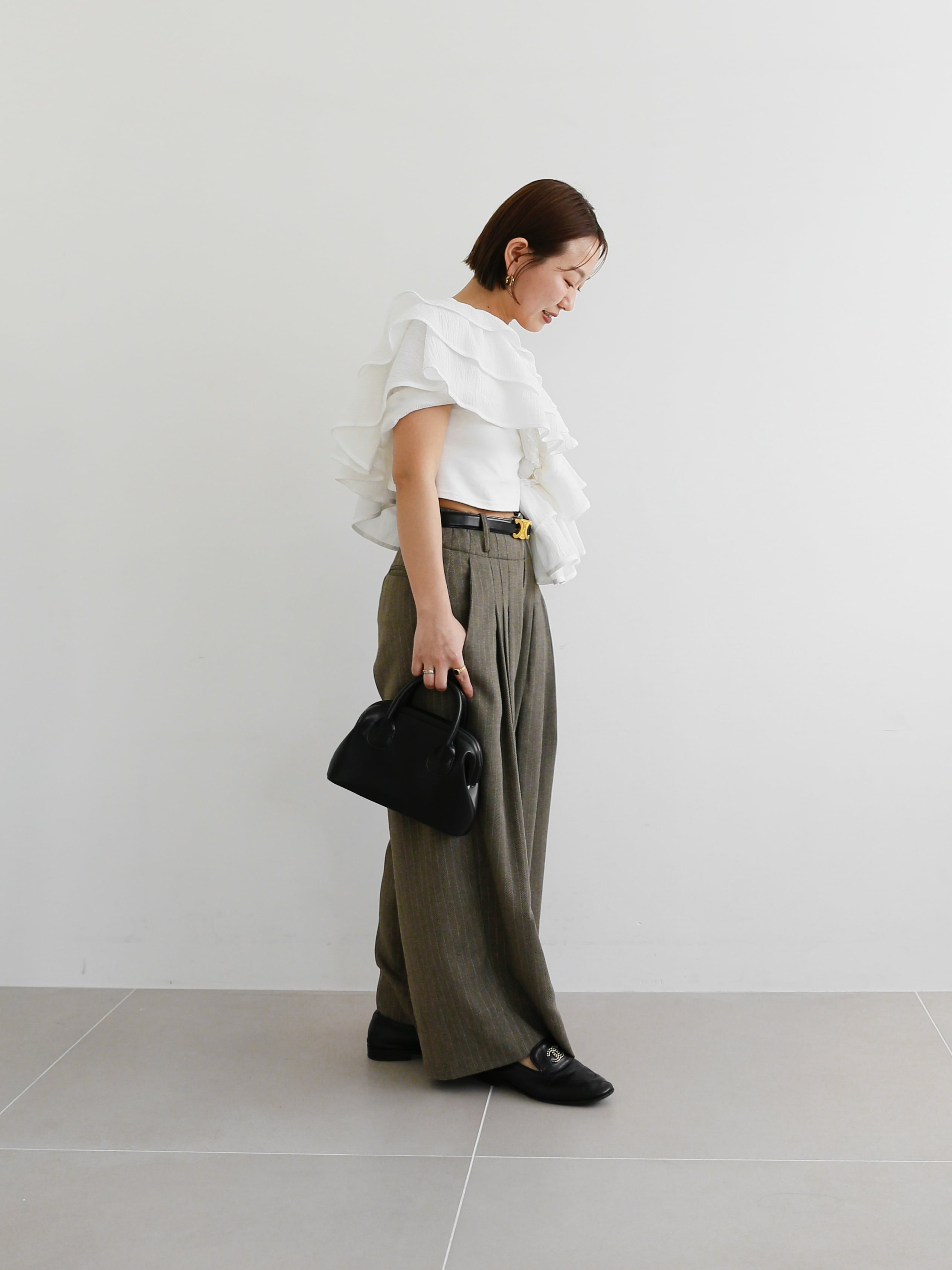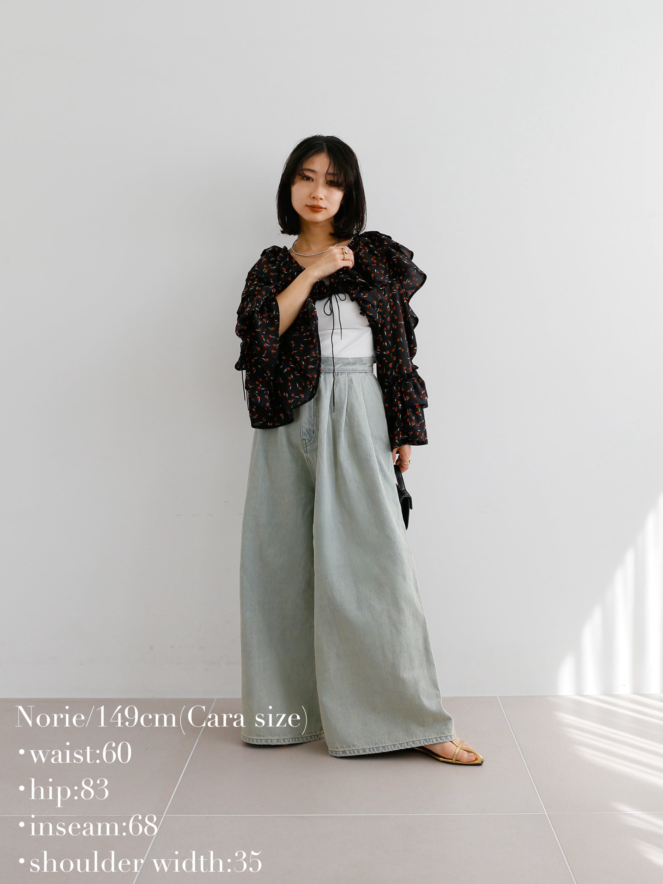クロップド丈なのでフリルがボリューミーでも着膨れする心配なく◎